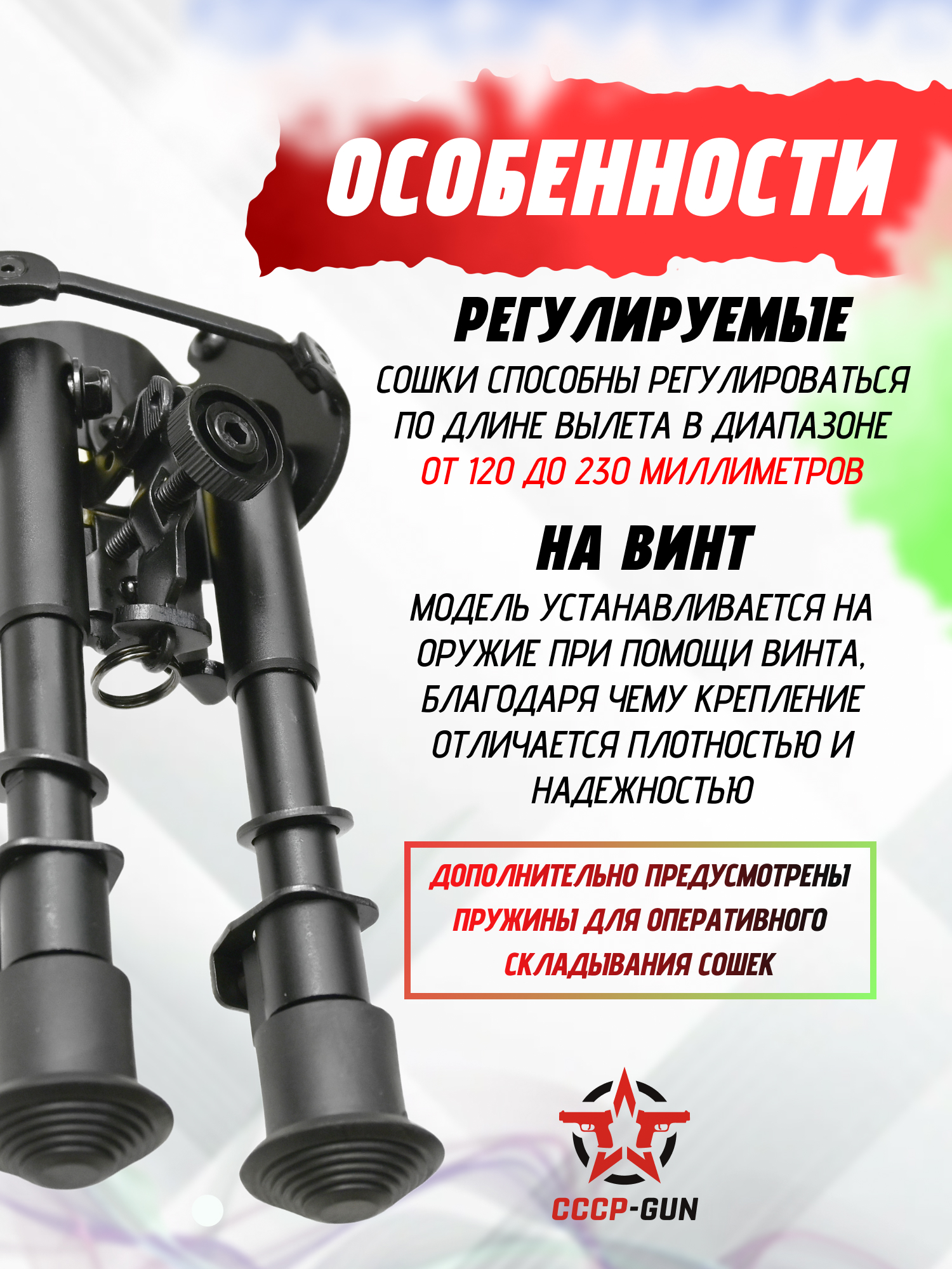 Сошки для винтовки оснащены двумя пружинами, которые фиксируют модель в сложенном состоянии. Они предотвращают их самопроизвольное раскладывание и делают транспортировку оружия в походном режиме комфортной.