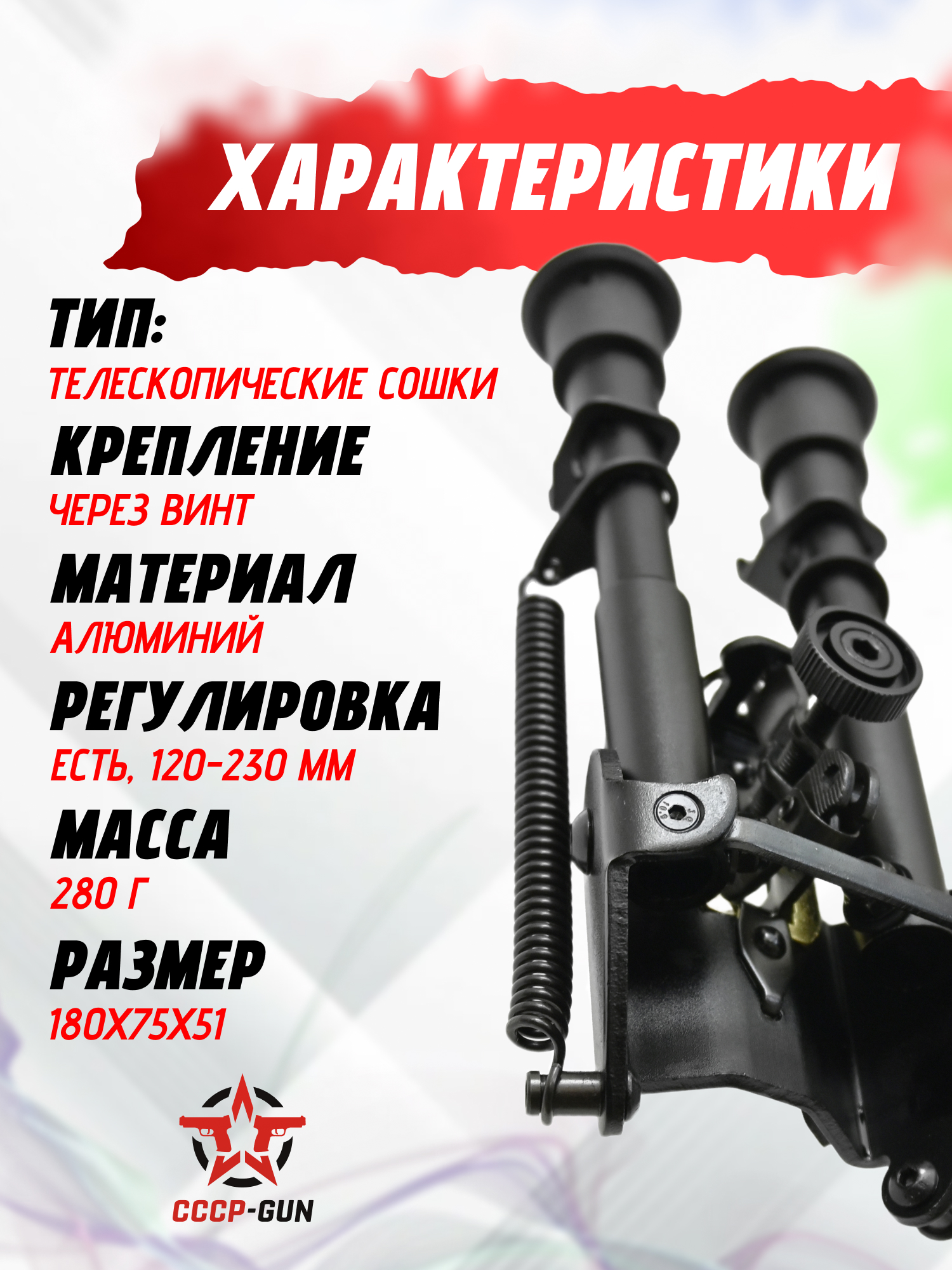 Обозреваемая модель устанавливается на оружие при помощи фиксирующего винта, крепление плотное и исключает люфты. Изделие Патриот телескопическое и его упоры регулируются по длине от 130 до 230 мм. Это даст владельцу адаптировать свою винтовку или карабин под неровности местности или предпочтения.