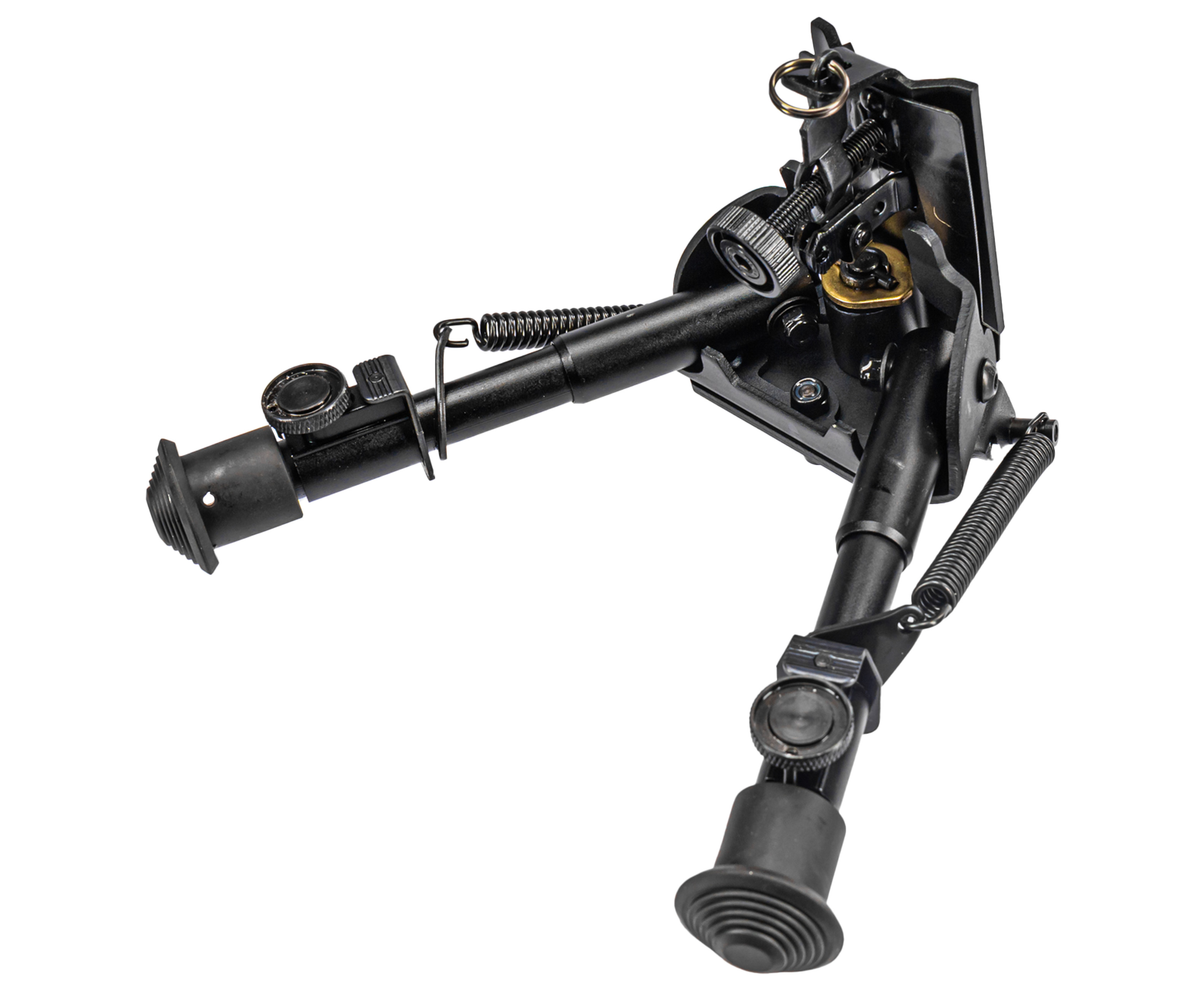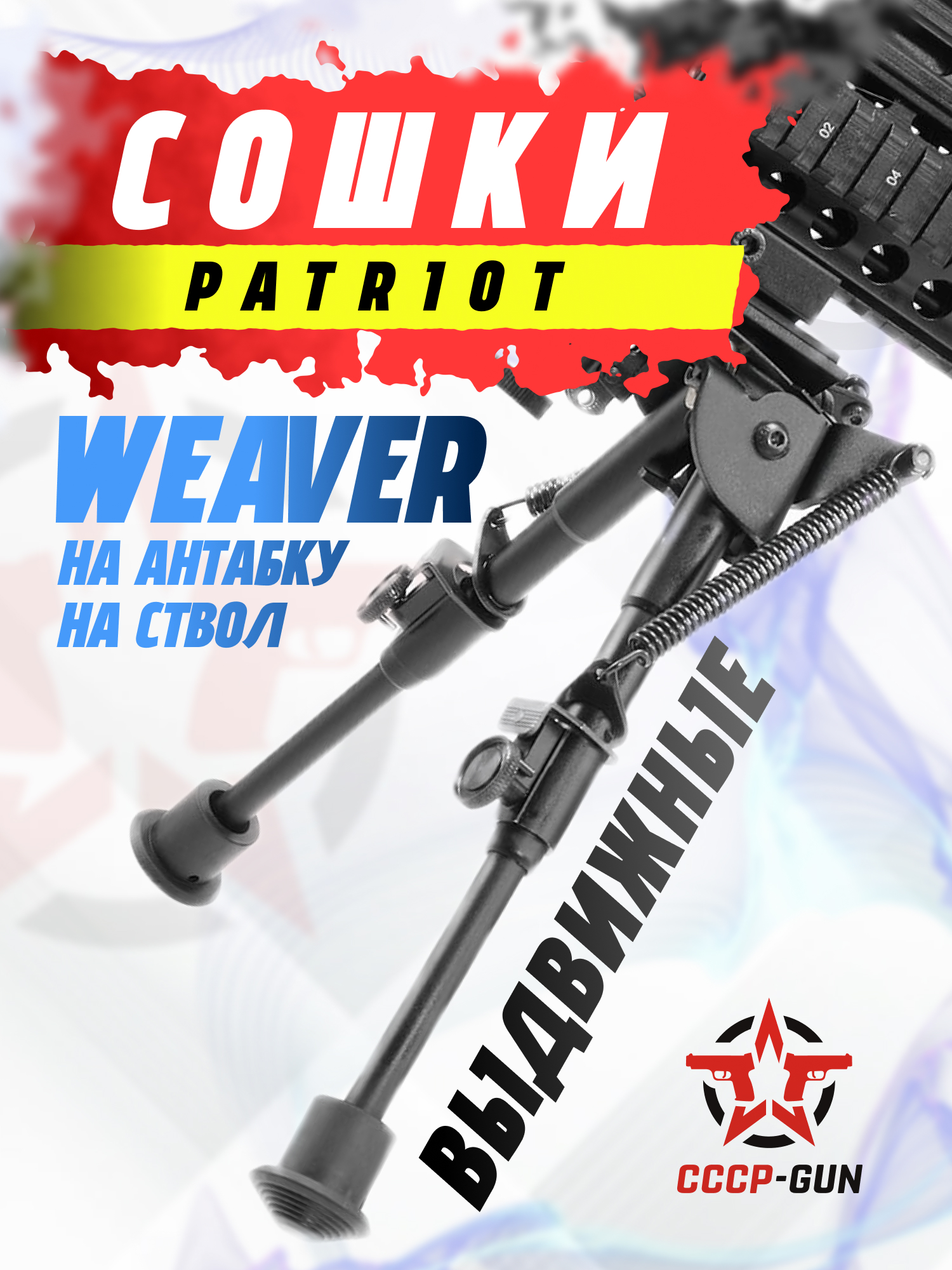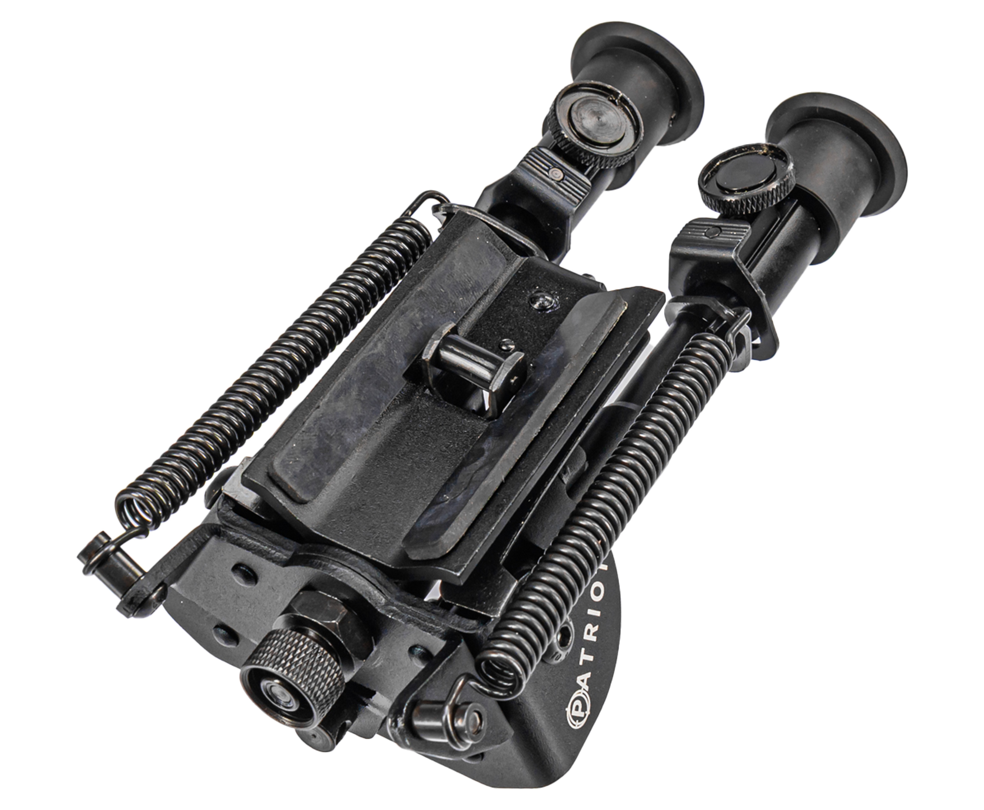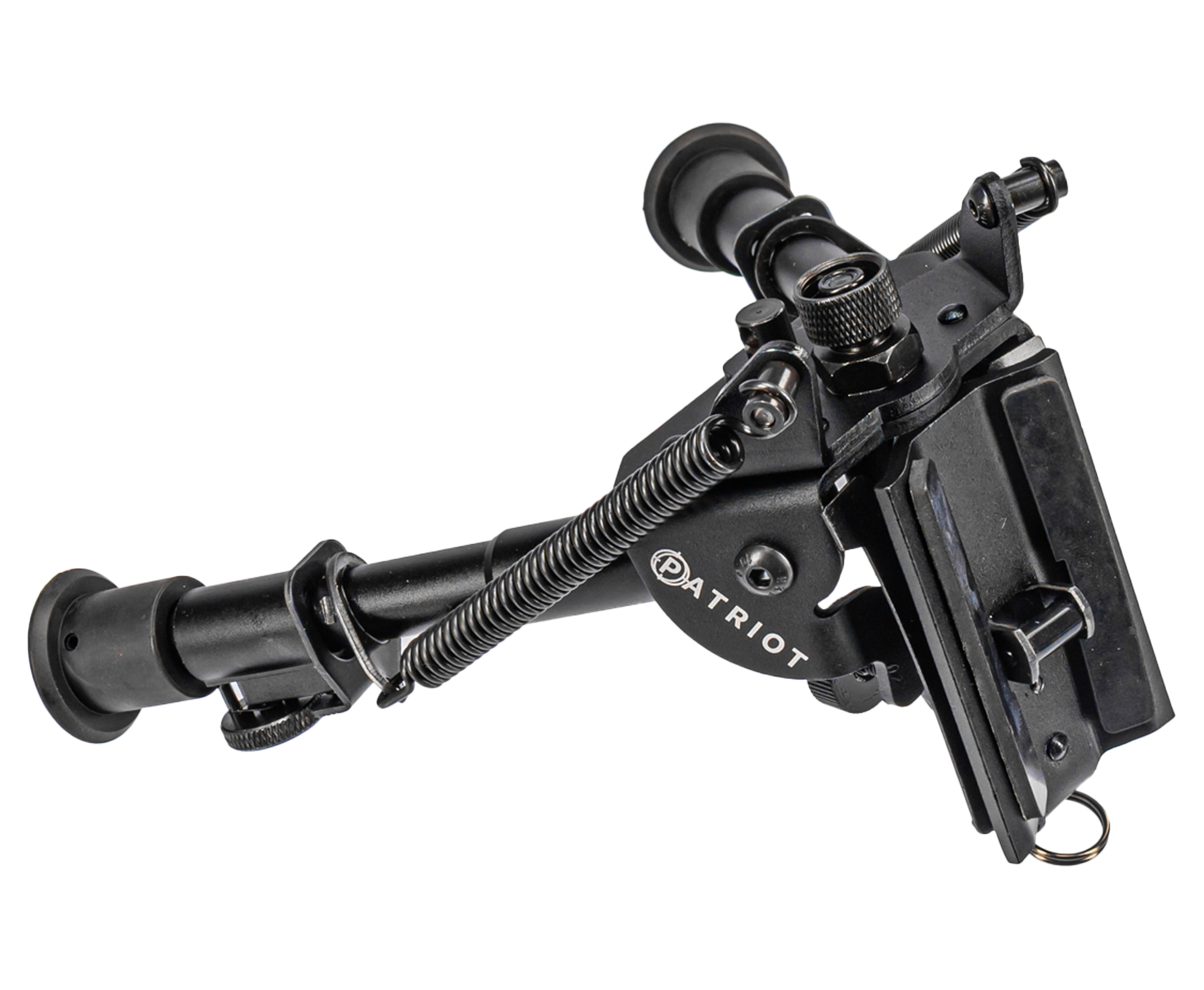 Качающаяся база экземпляра Патриот исключает смещение оружия вправо или влево. Для дополнительной устойчивости и фиксации в сложенном состоянии рассматриваемые сошки для карабина оснащены двумя пружинами.