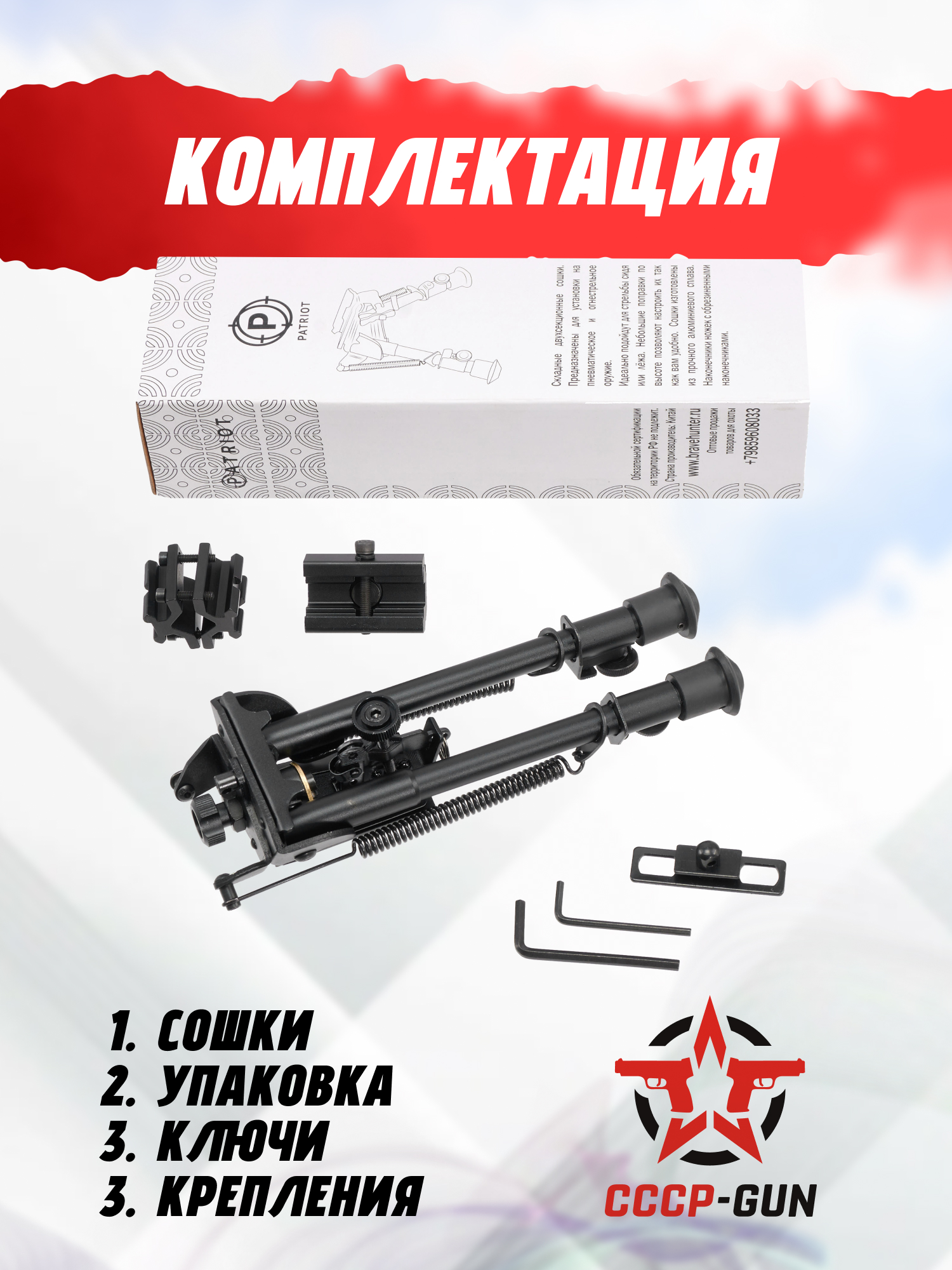 | Комплектация | Сошки, планка Вивера, кронштейн, шестигранный ключ, упаковка |