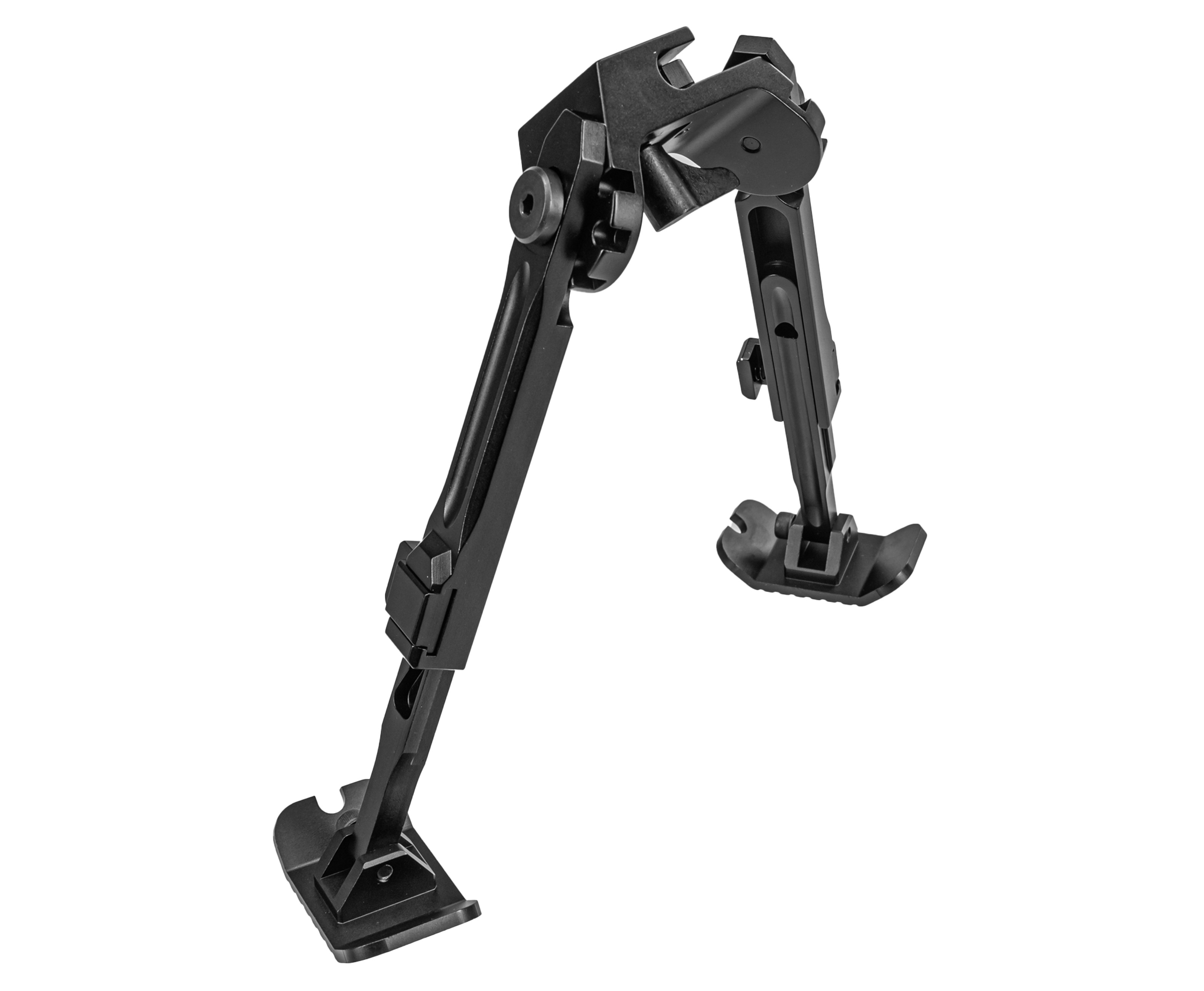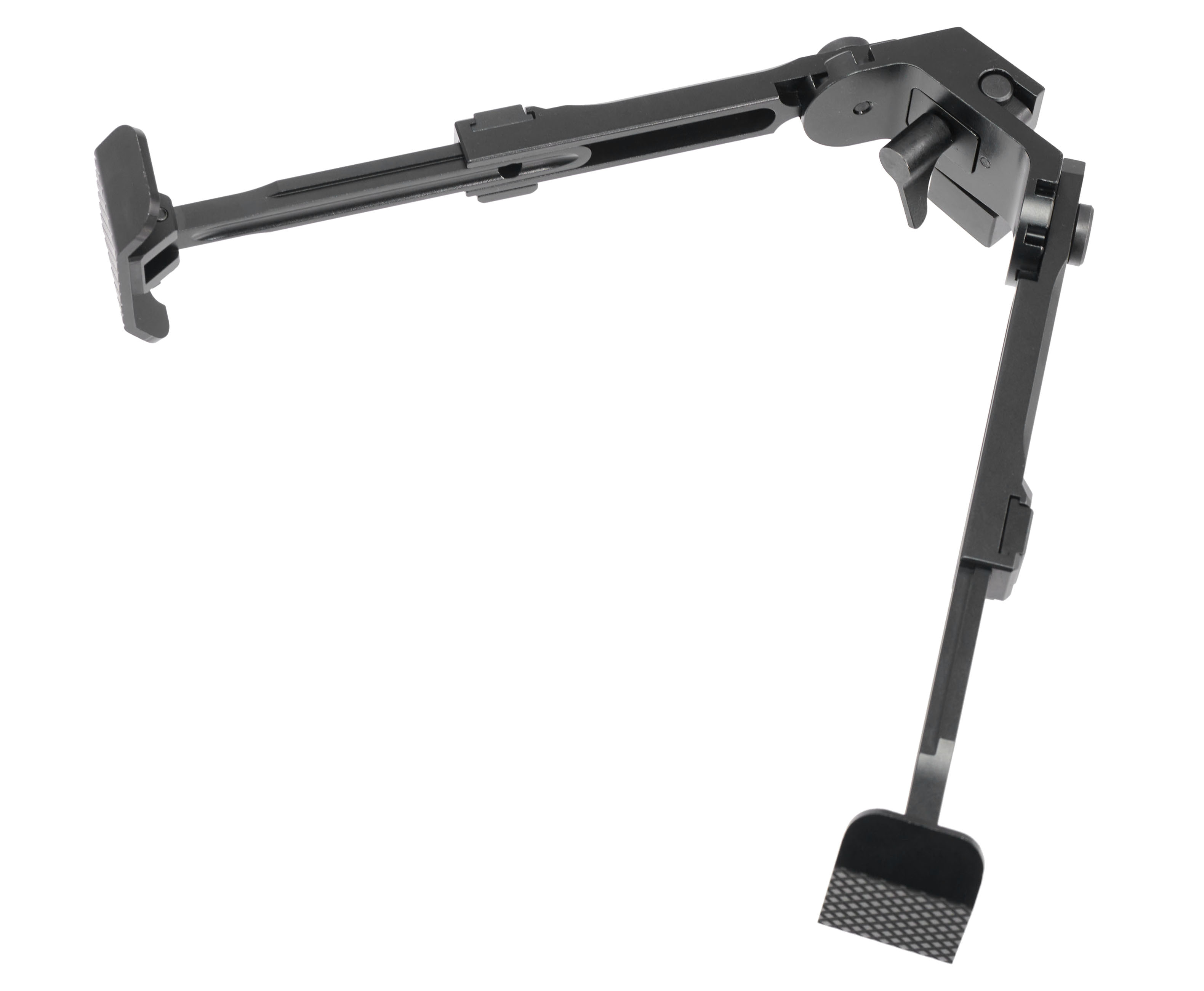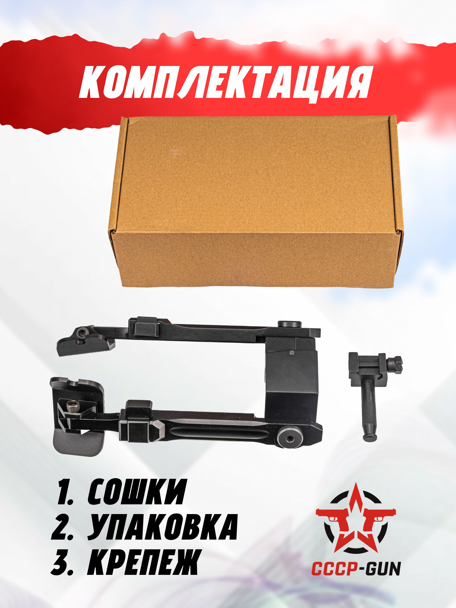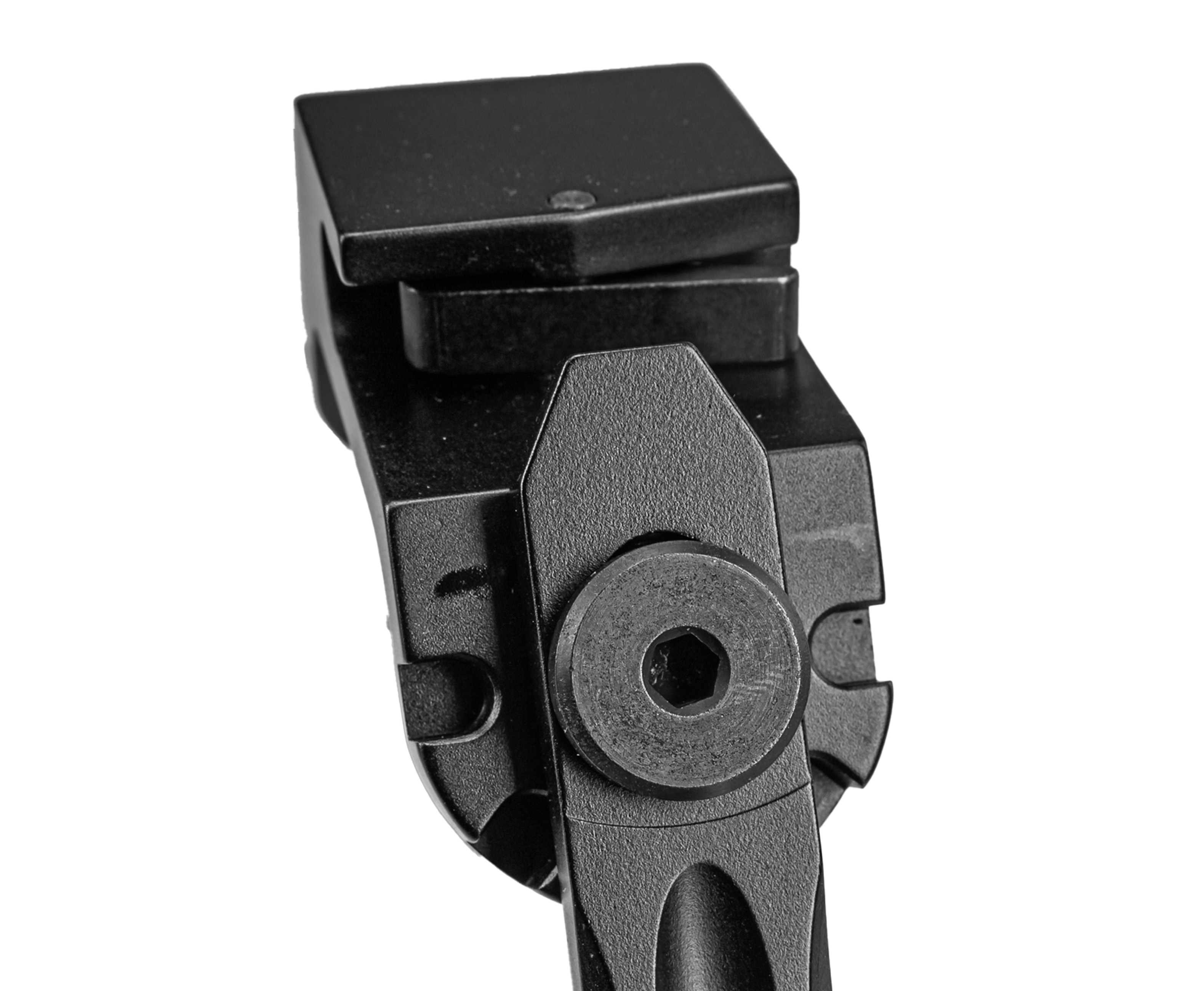 Регулируемые сошки оснащены расширенными упорами с противоскользящим покрытием, которое предотвращает смещение платформы при отдаче. В сложенном виде модель не мешает транспортировке оружия.