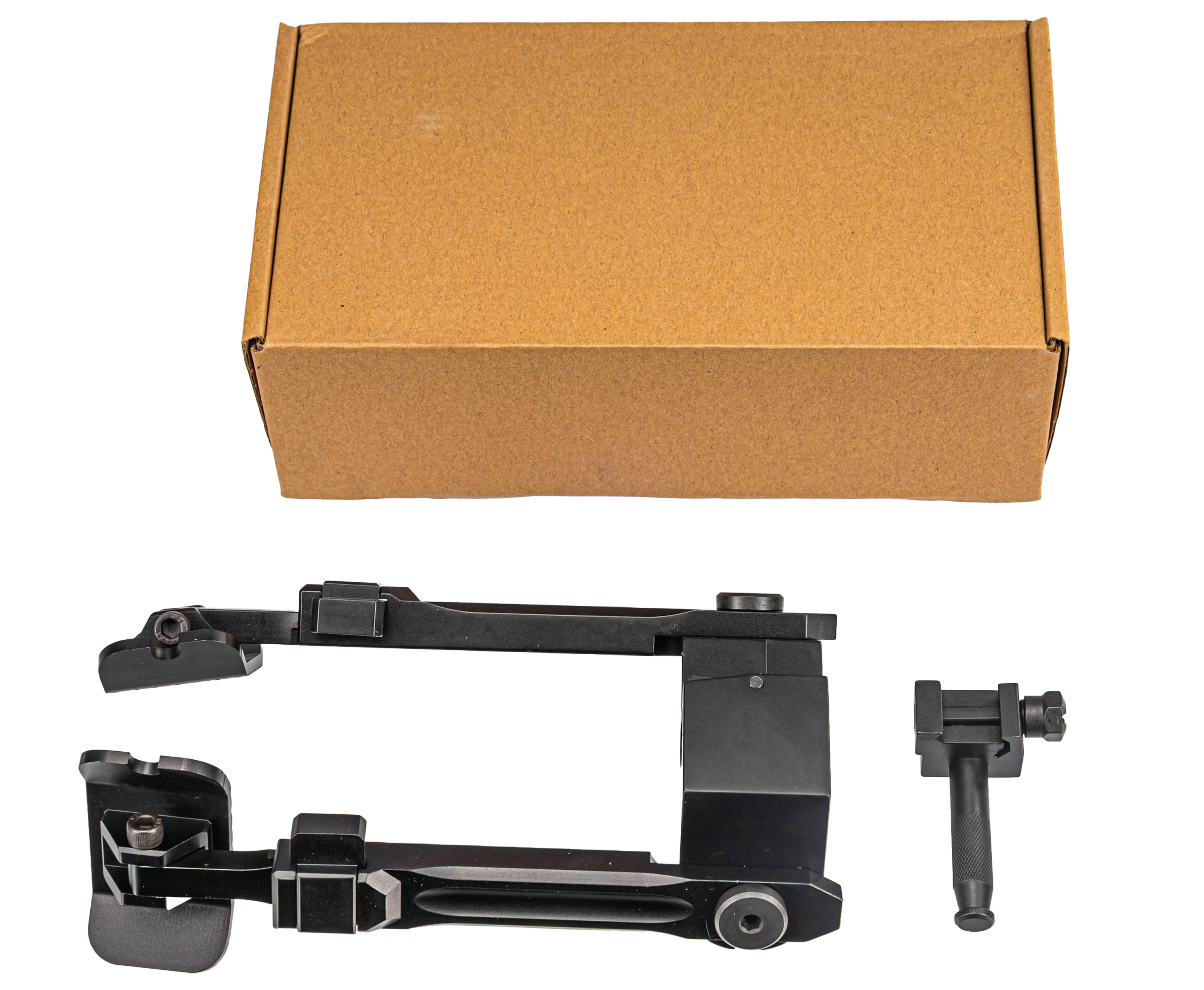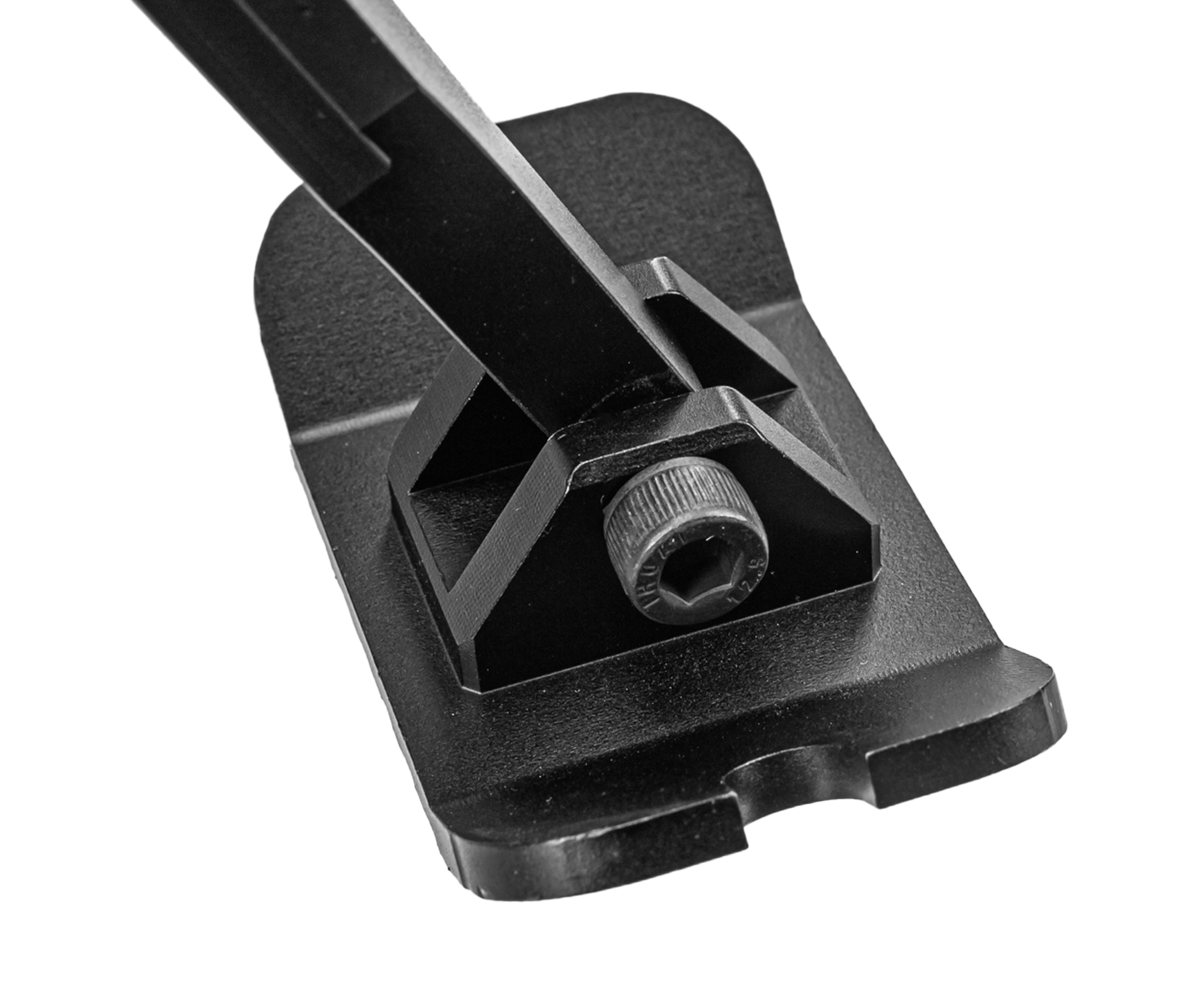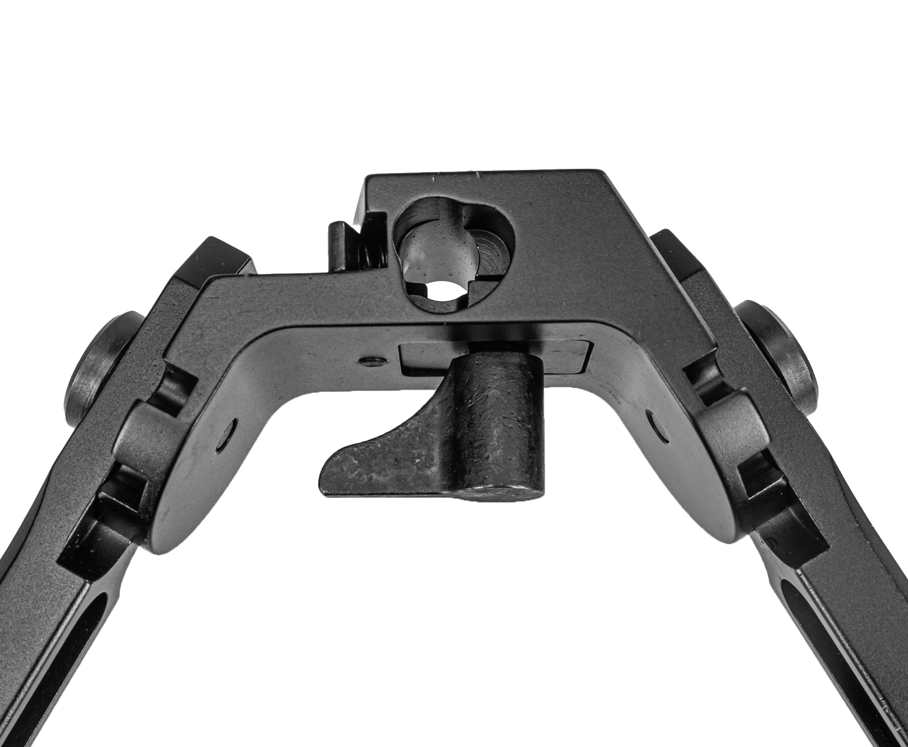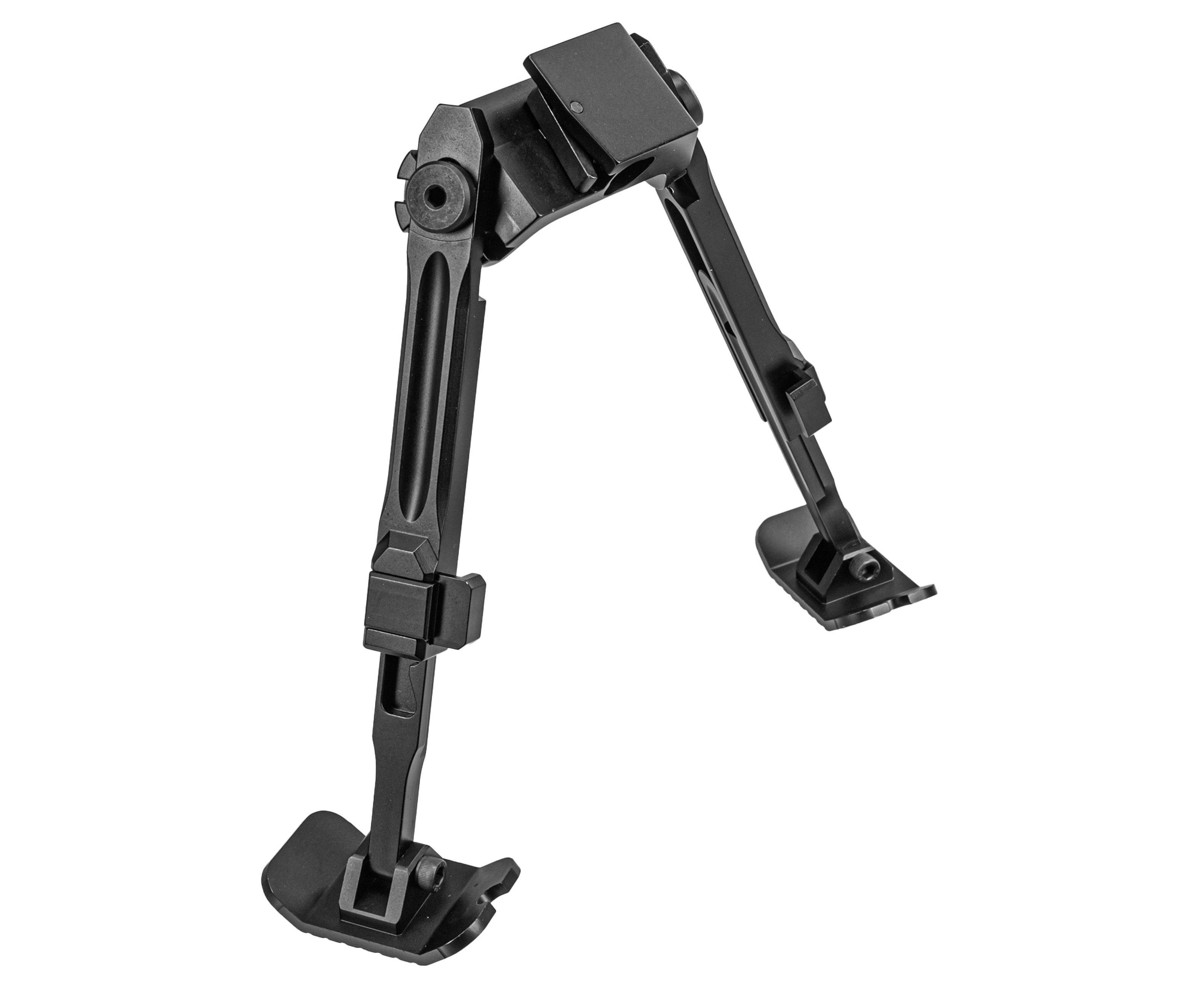 Регулируемые сошки оснащены расширенными упорами с противоскользящим покрытием, которое предотвращает смещение платформы при отдаче. В сложенном виде модель не мешает транспортировке оружия.