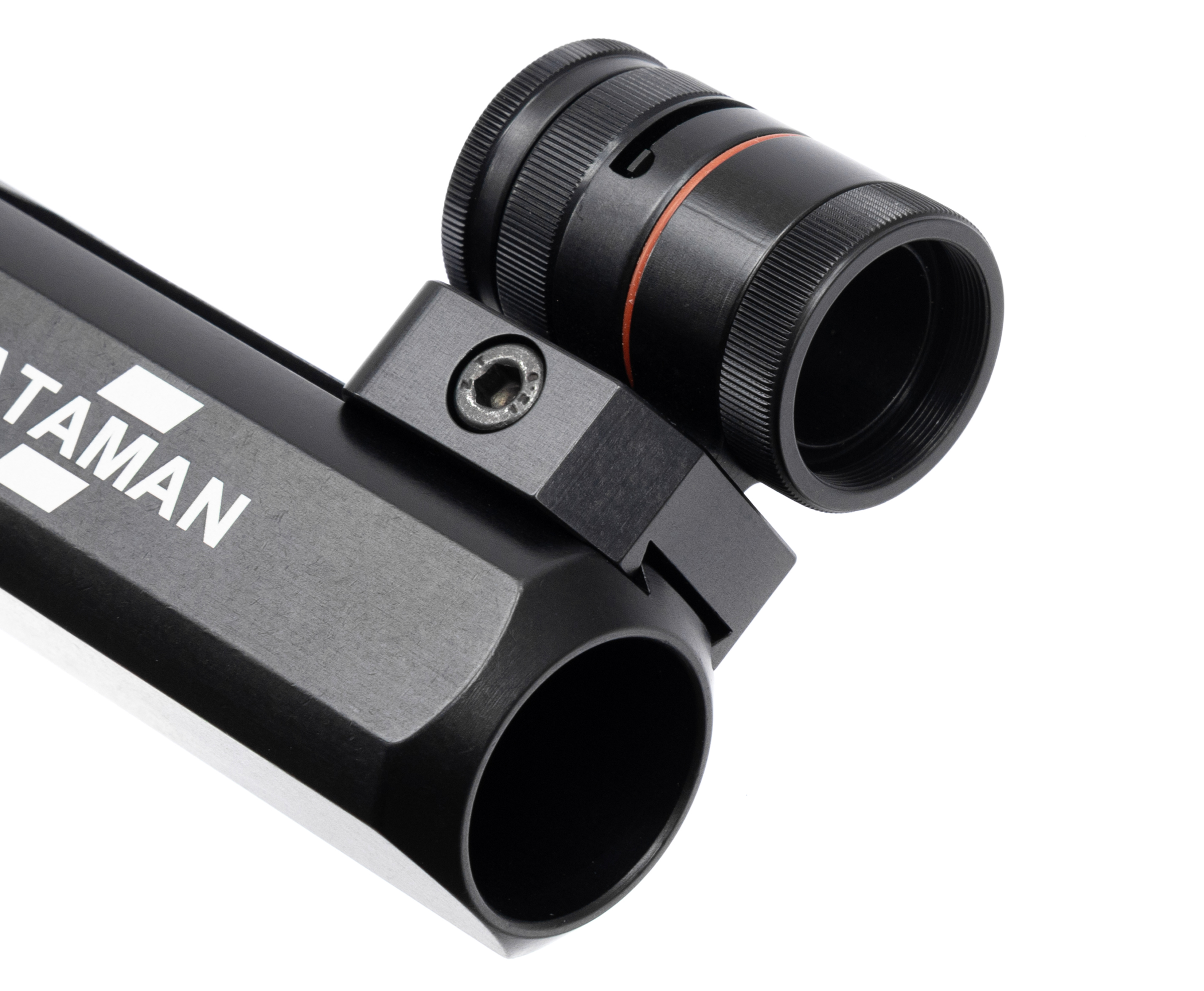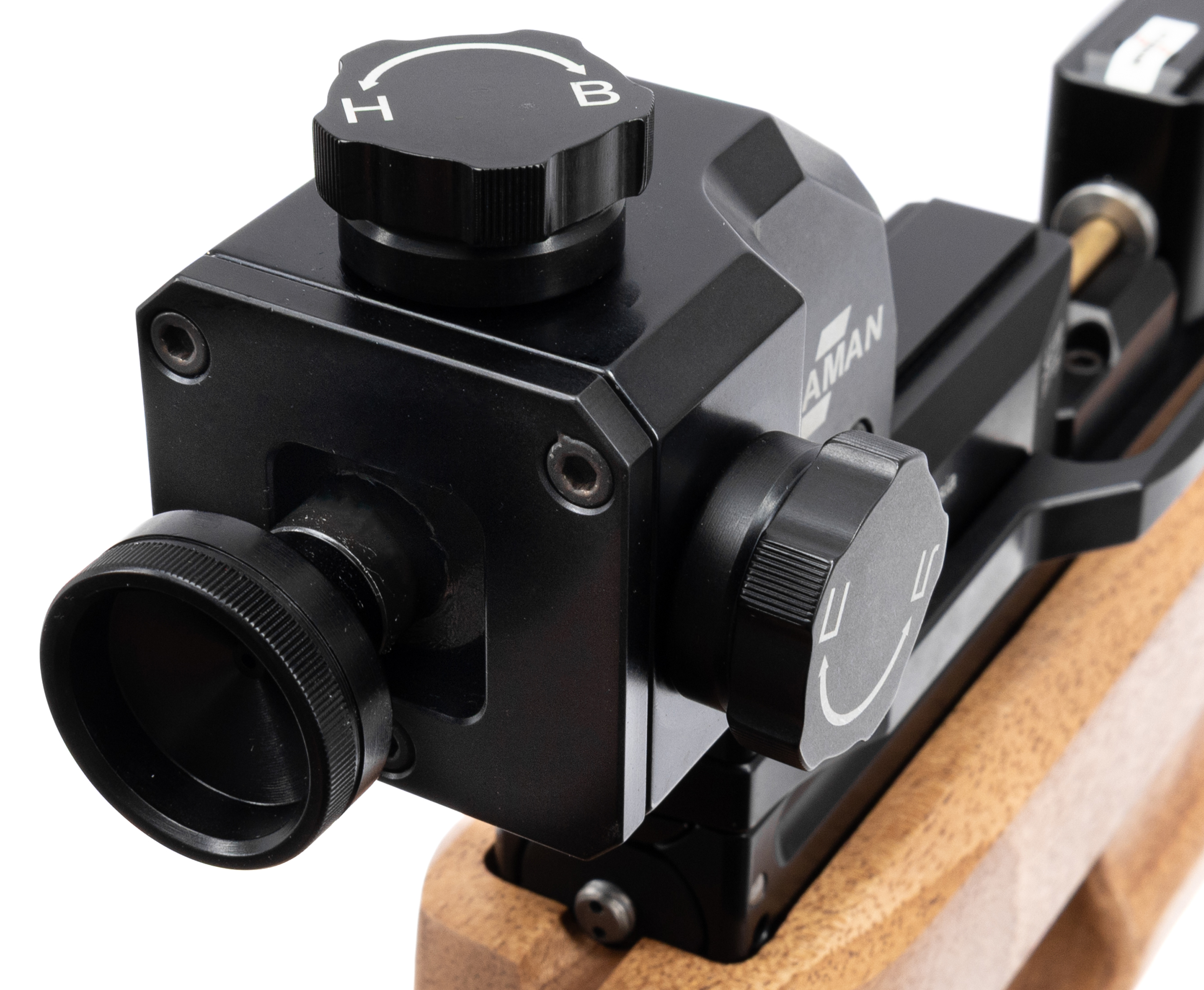 В комплект входит диоптрический прицел, оптимизированный для использования в спортивных дисциплинах. Под ним, на ствольной коробке размещена направляющая «Ласточкин Хвост» 11 мм, с ее помощью можно установить оптические прицелы в зависимости от целей или предпочтений стрелка.