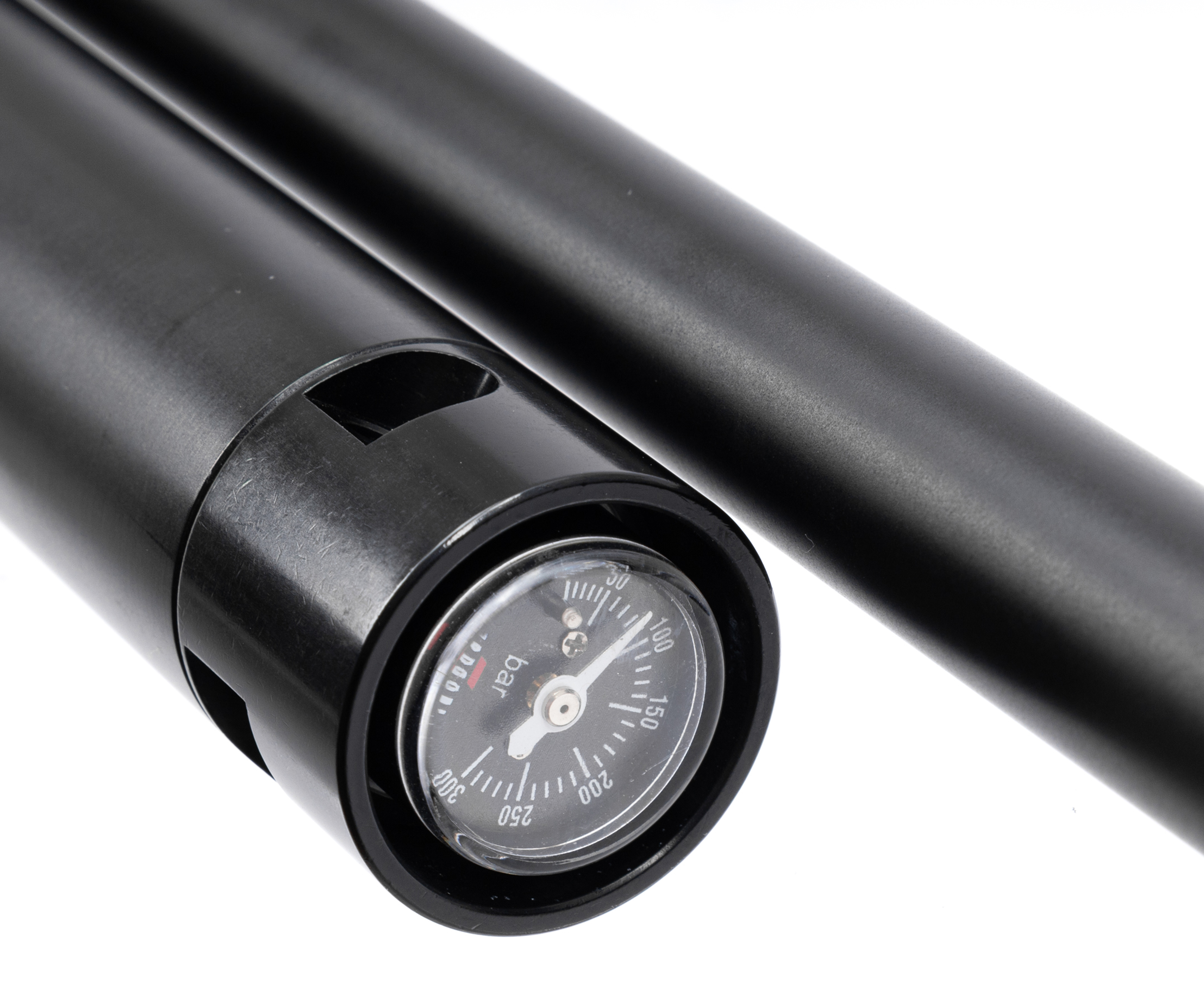 В основе воздушной системы лежит резервуар объемом 250 кубических сантиметров. Максимально разрешенное давление достигает 300 Атмосфер, что гарантирует надежную работу и большое количество выстрелов без необходимости частых подкачек. Контролировать остаток газа помогает встроенный манометр - он размещен в торце баллона, обеспечивая контроль уровня заряда.