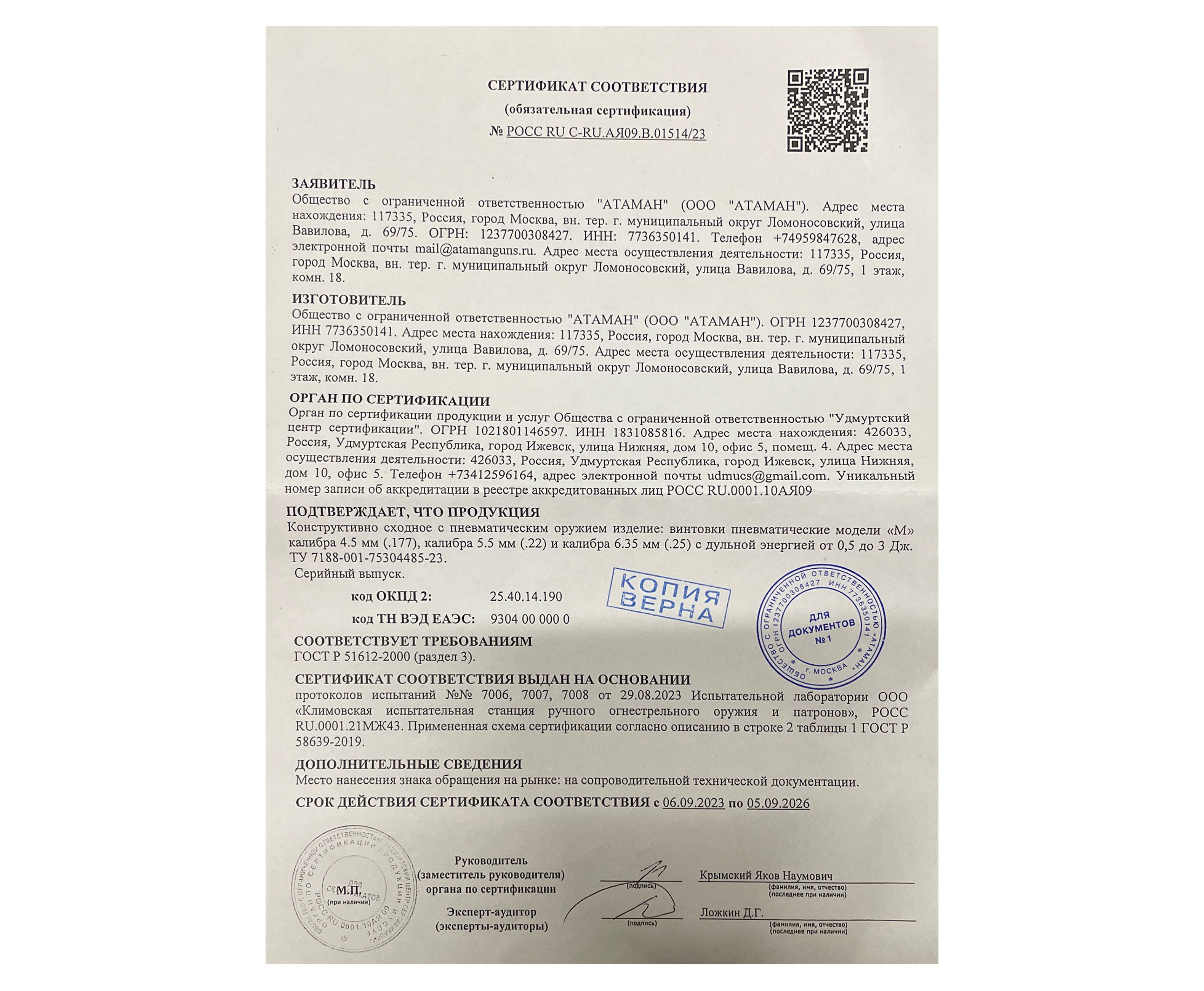 Габариты винтовки Атаман составляют 1060 мм при массе 4.16 кг. Такой вес и продуманная геометрия обеспечивают устойчивость при стрельбе с упора и комфортную эксплуатацию на практике.
