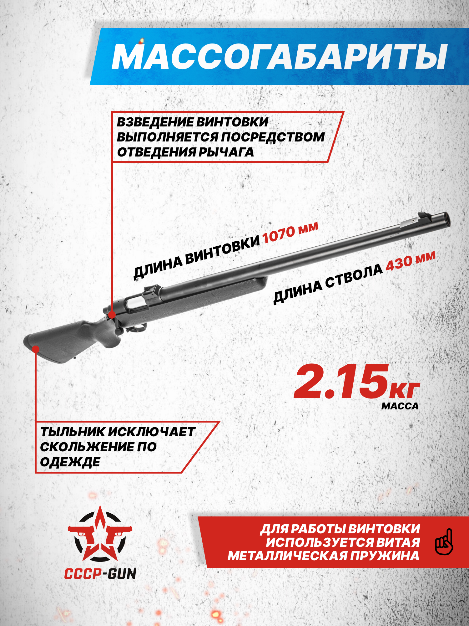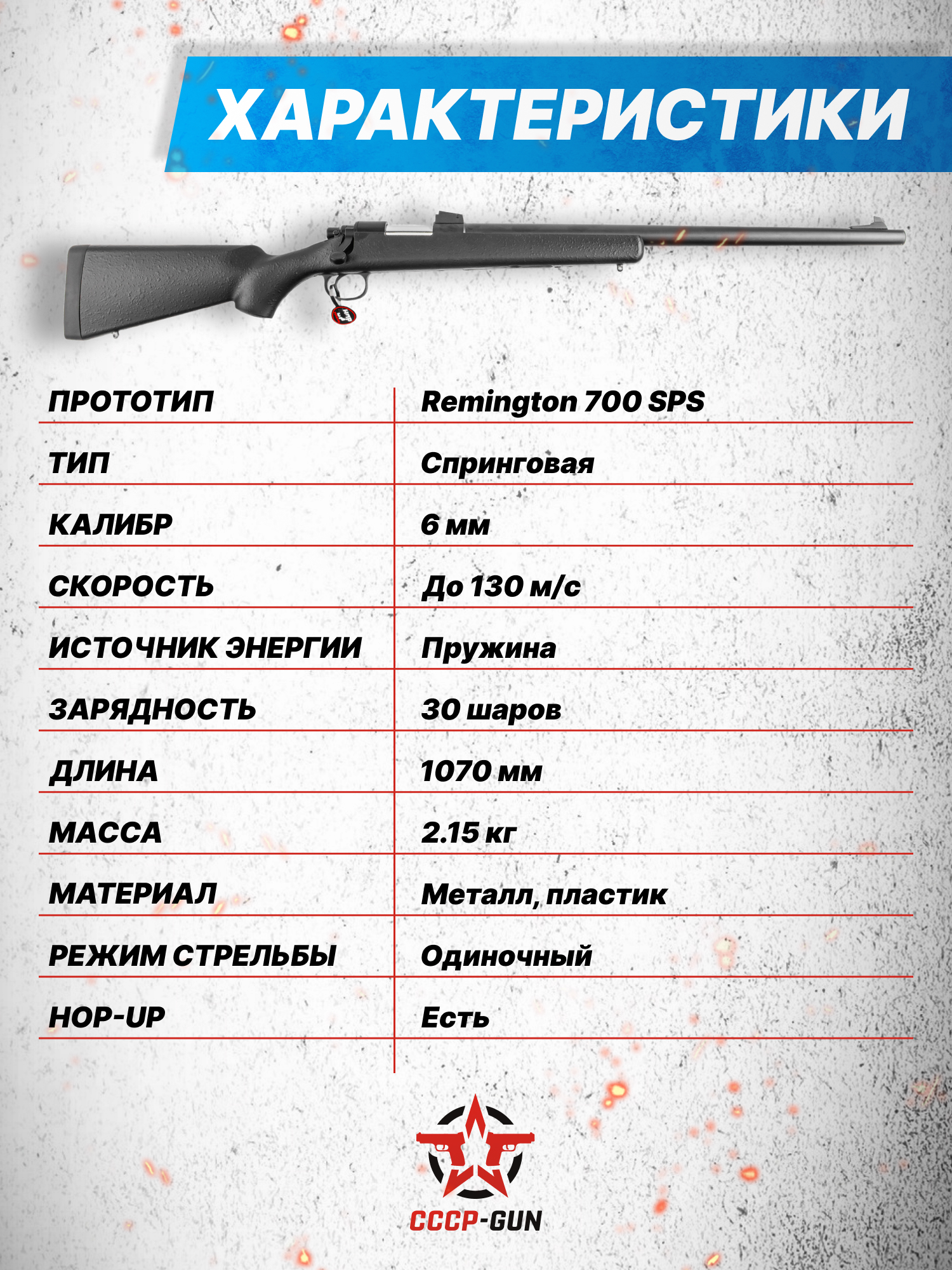 Это предприятие сконструировало, взяв за основу прототип Remington 700 SPS, Airsoft версию винтовки CM701. С инженерной точки зрения как настоящее боевое оружие, так и его игровая модель выступает магазинными образцами, снабженными продольно-скользящим затвором. Воздействие на рычаг инициирует сжатие металлической витой пружины и отправку снаряда в канал гладкого бланка, длина которого в конкретном исполнении составляет 430 миллиметров.