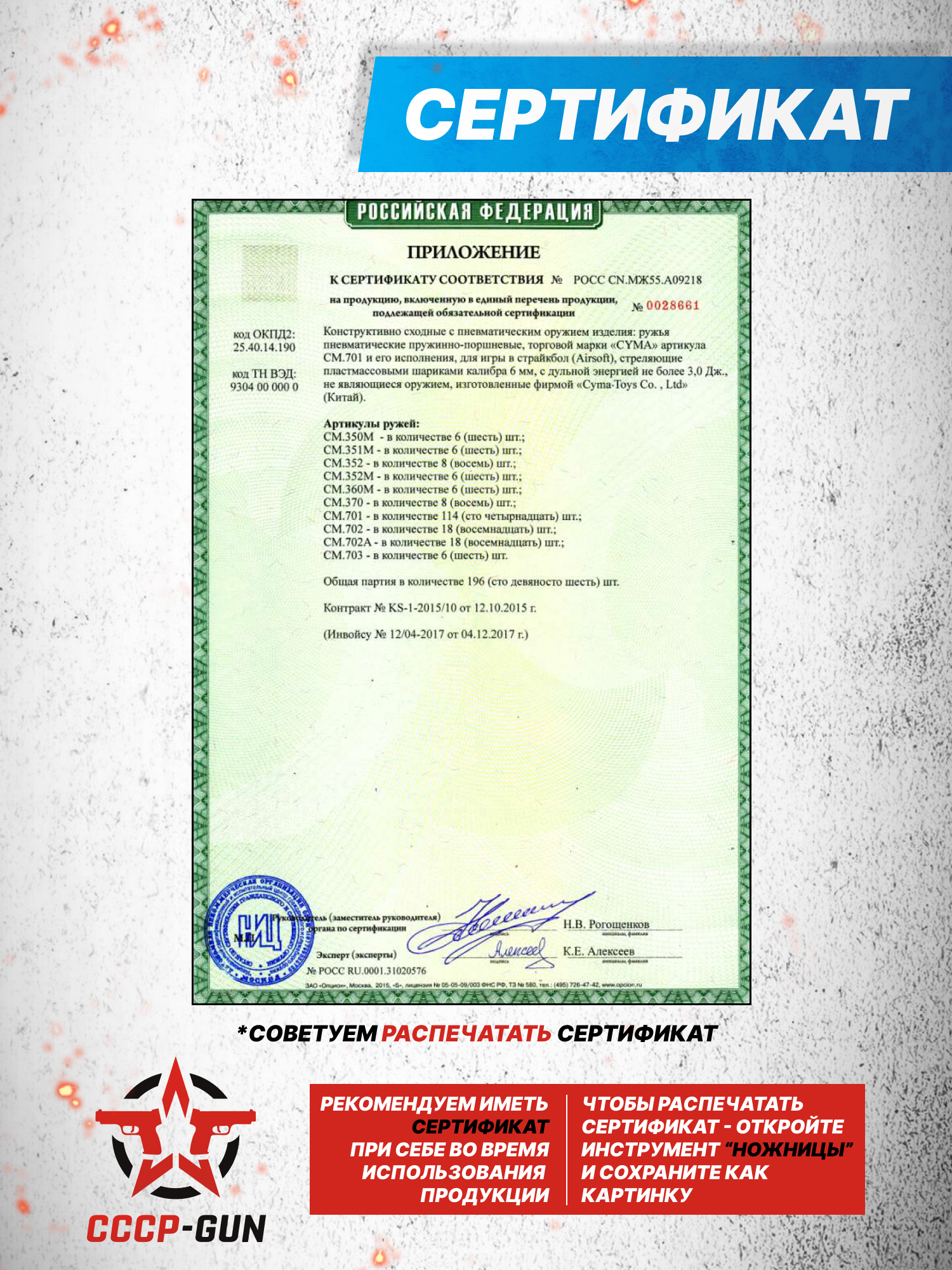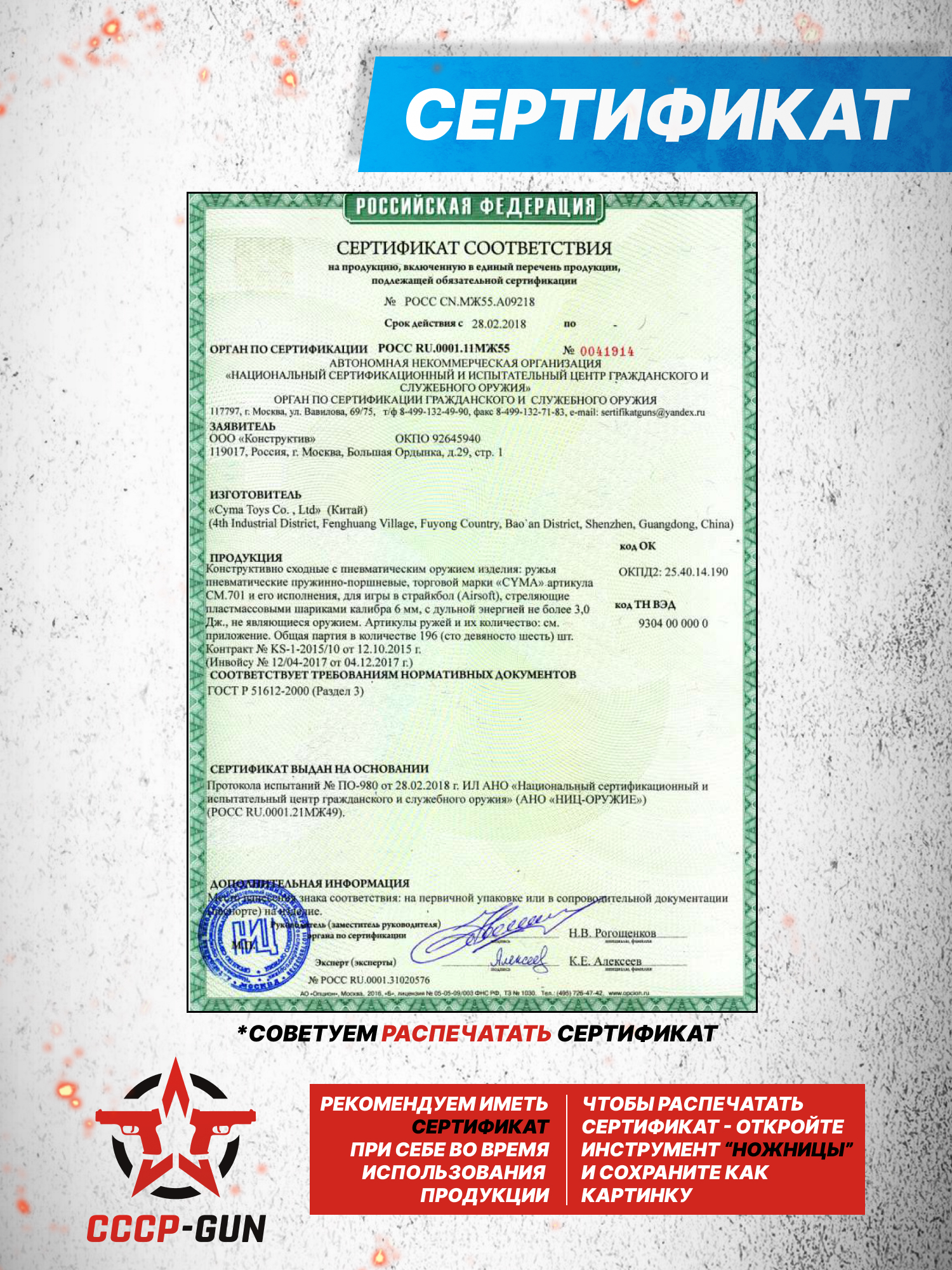 Для создания ложа разработчики обратились к современным композитным материалам на полимерной основе. Подобное сырье не нуждается в применении сложных методов чистки и, вдобавок, помогает понизить суммарную массу изделия без ощутимого ухудшения параметров прочности - вес описываемой модификации Cyma CM701 VSR 10 не превышает 2.15 килограмма, тогда как полная длина равняется 1070 миллиметрам. Ствольная группа и ключевые компоненты управления выполнены из металлических сплавов и для предохранения от коррозионного разрушения покрыты особым составом.