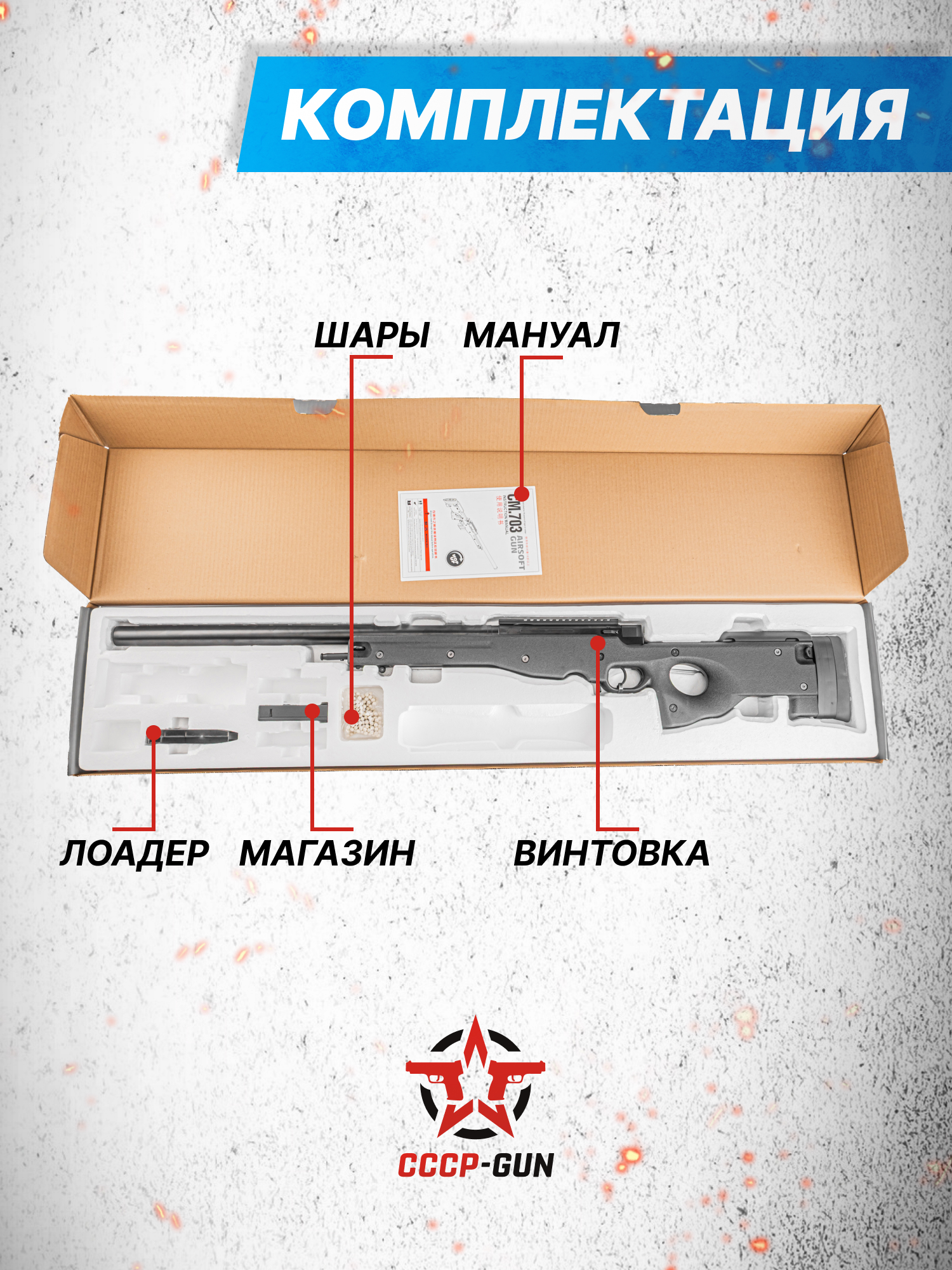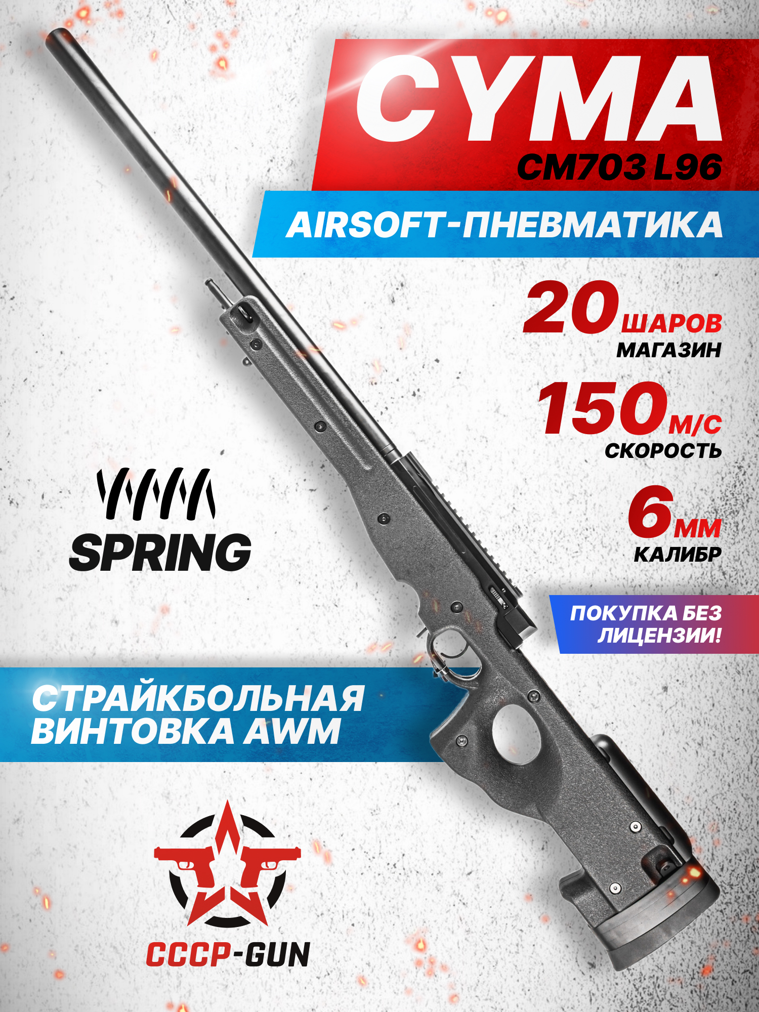 Известная фирма Цима выпустила в свет свою версию CM703 L96. Если говорить о соответствии реальным стрелковым экземплярам, то внешность этой модели основана на дизайне винтовки L96A1 AW. Помимо этого, конструктивные особенности представленного образца схожи с вариантом, носящим название Arctic Warfare Magnum. Следует отметить, что они разработаны в период восьмидесятых и девяностых годов прошлого столетия специалистами британской компании Accuracy International.