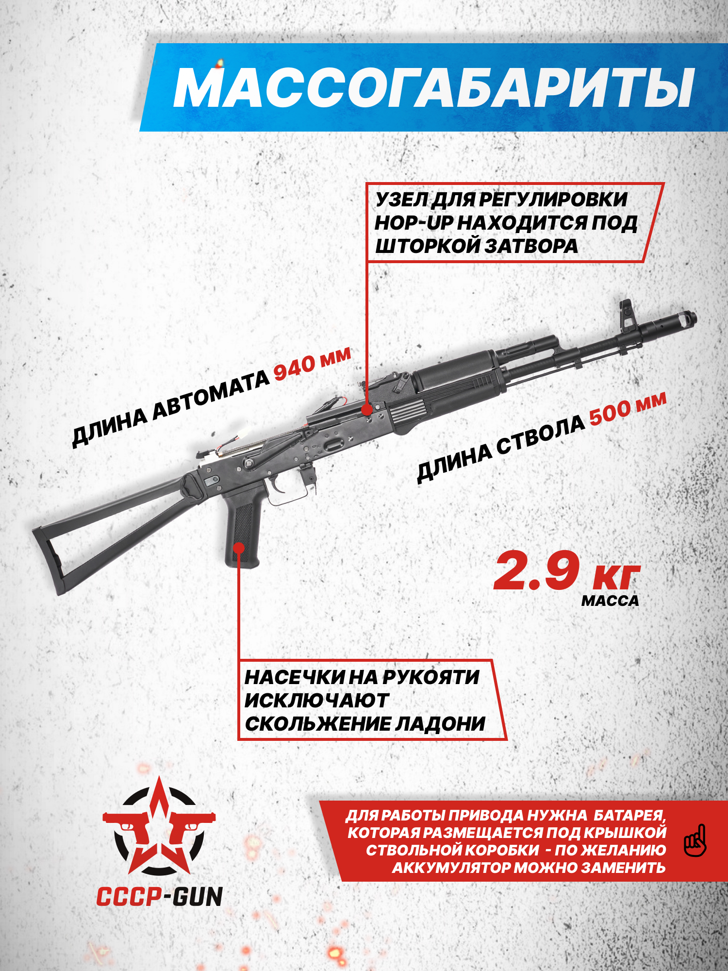 Модель имеет рамочный металлический приклад складывающийся на правую сторону и уменьшающий полную длину оружия с 945 мм до 715 мм. Антабки на правой стороне приклада и левой стороне цевья позволят установить подлинный ремень от боевого оружия. Также, на левой стороне имеется крепление для оптики типа ПСО или ПОСП или же крепления боковой планки Пикатинни.