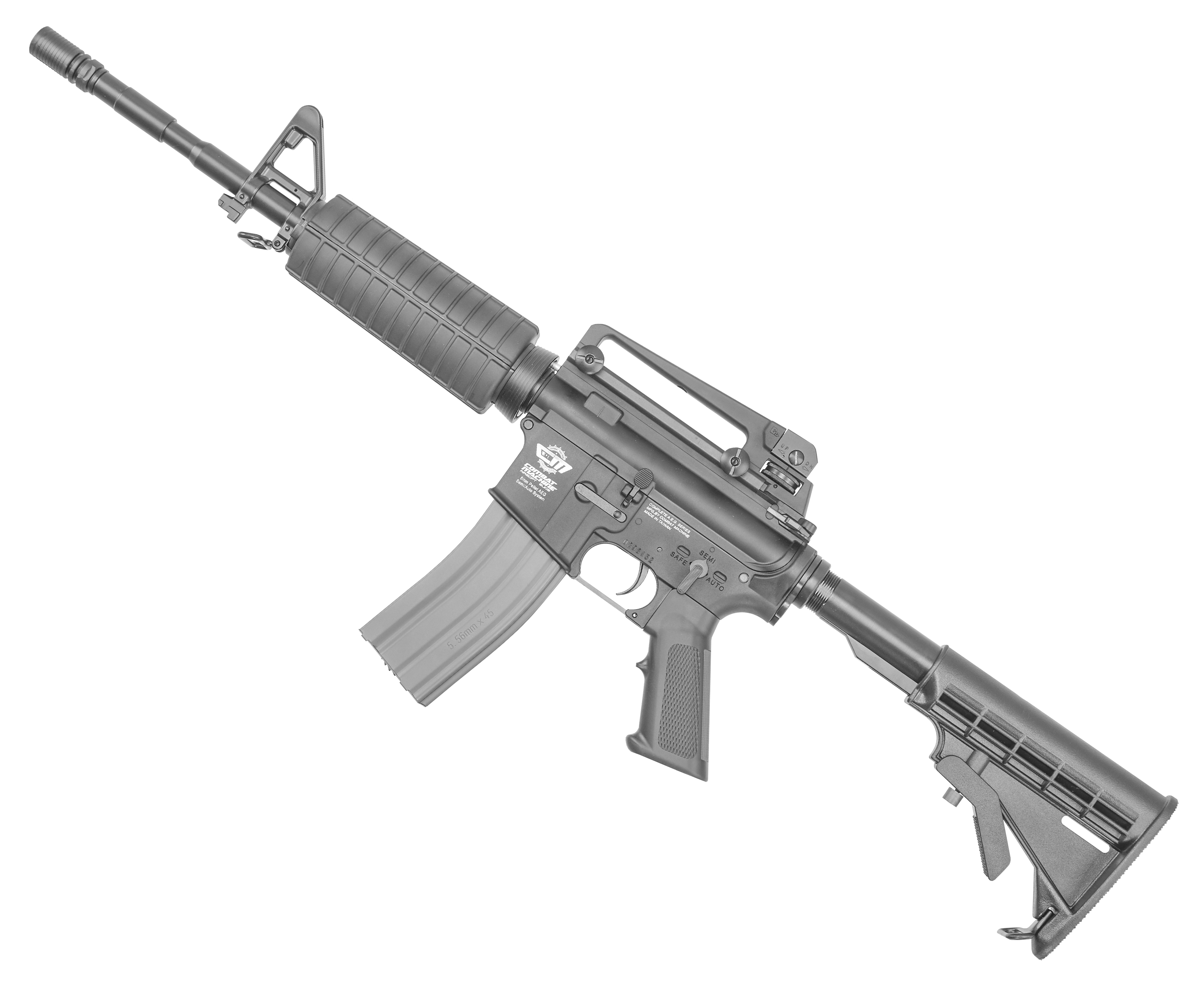 Модель G G CM16 имеет облик, опирающийся на одну из крайних классических генераций платформы Стоунера - M4A1. В этой модификации автомата сочетаются традиционные черты внешнего вида «черной винтовки» в виде стандартного цевья и рукояти переноски, и современная планка Вивера, расположившаяся под ручкой-целиком вкупе с многопозиционным телескопическим прикладам. Соответственно представленная модель подойдет ценителем классической внешности, но в то же время останется комфортной в работе и совместимой со сторонними прицельными приспособлениями.