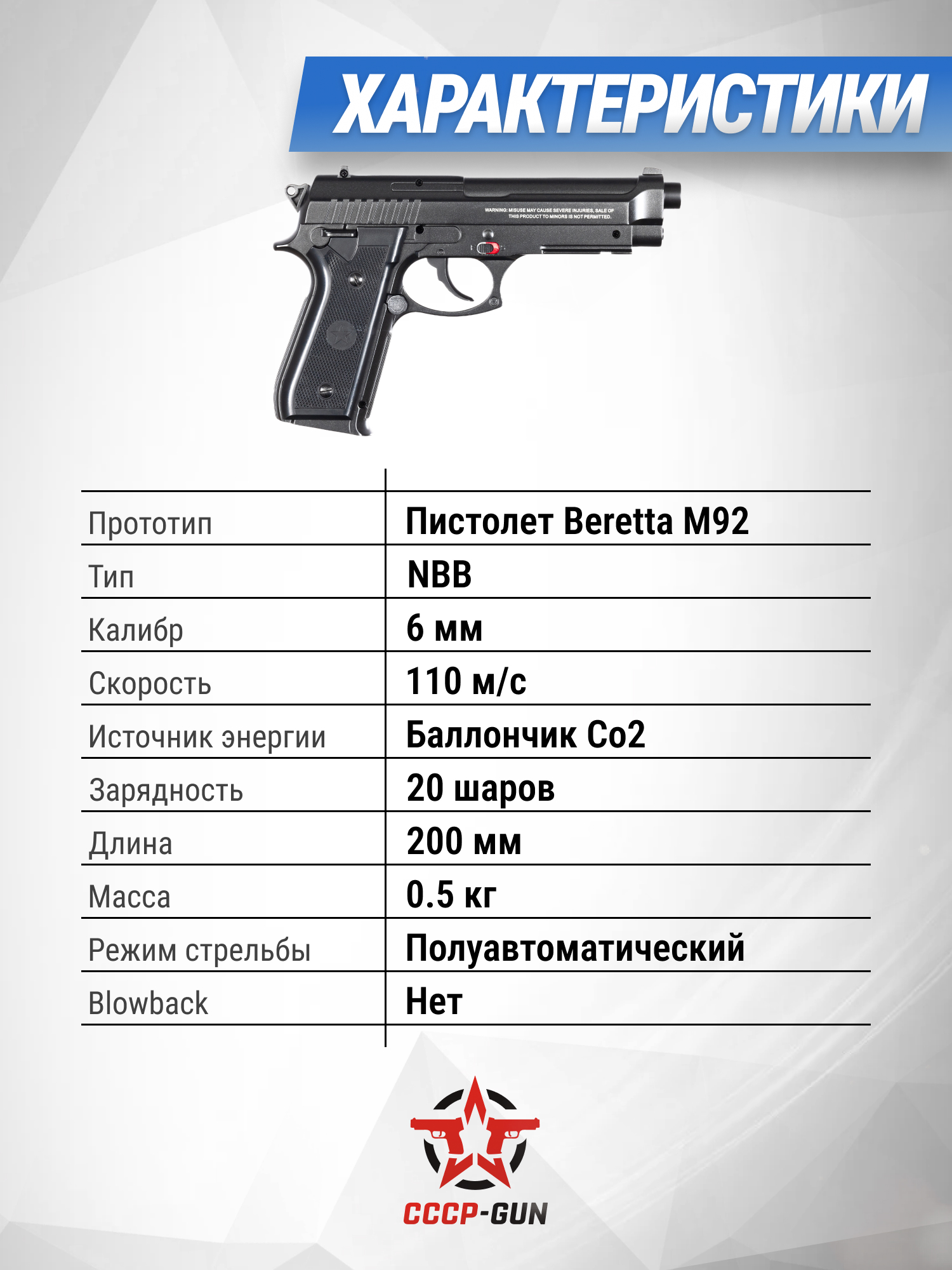 Страйкбольный пистолет Borner 92 (6 мм, CO2, Beretta 92)