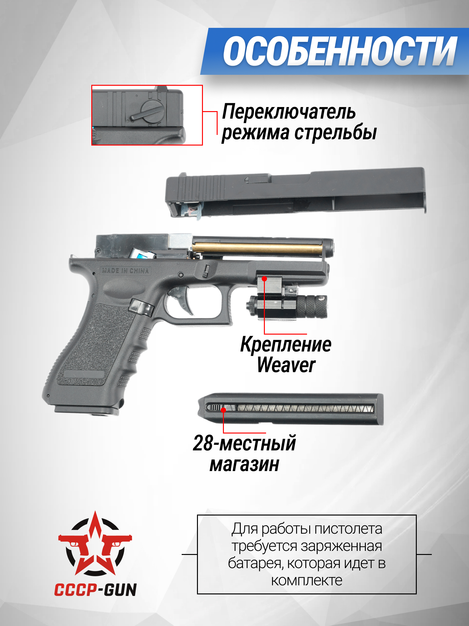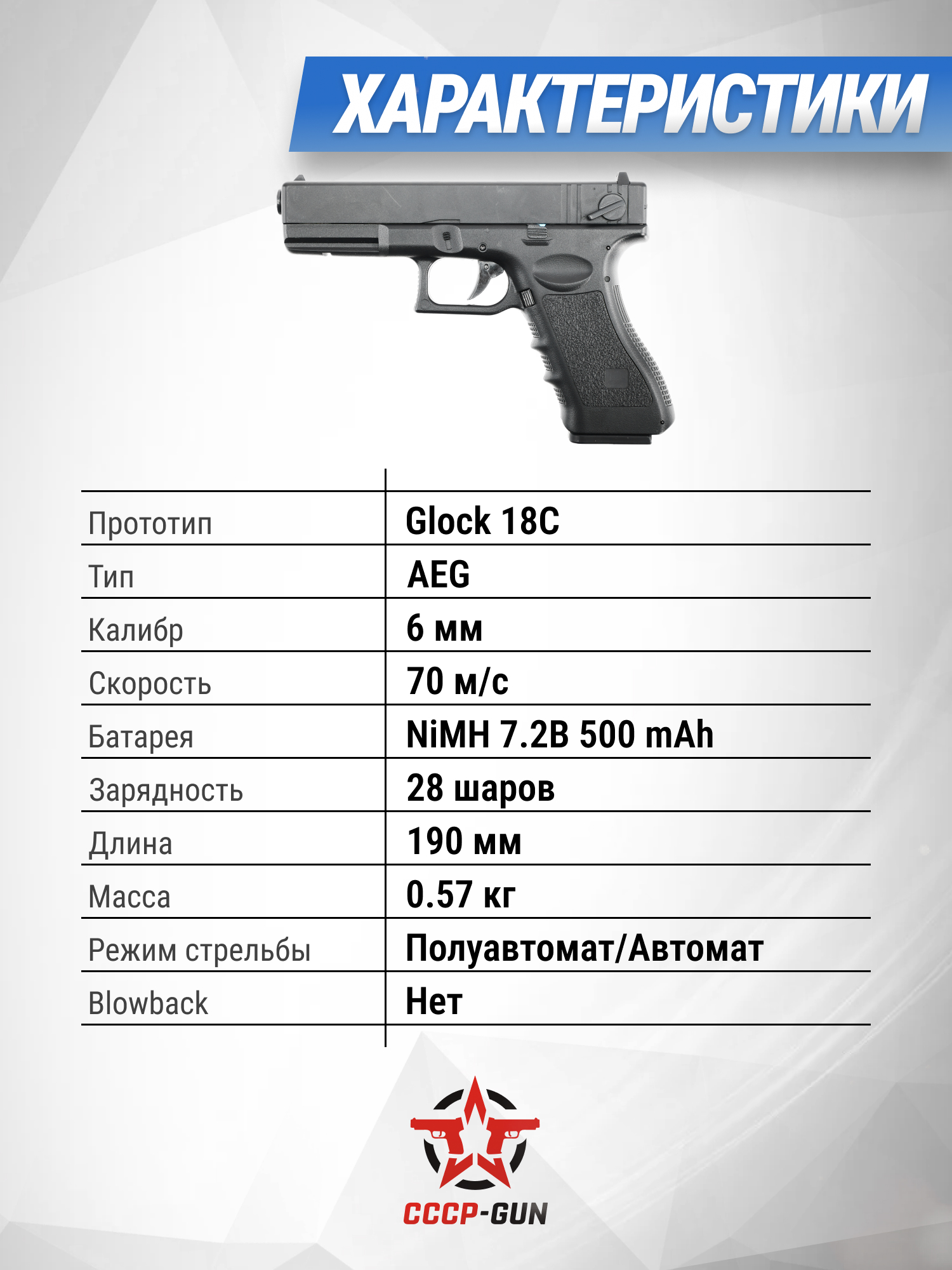 Электро - пневматический пистолет Cyma CM030 Glock 18c может использоваться не только как вспомогательное оружие, но и как основное. Прицельная дальность стрельбы из него порядка 30 метров.