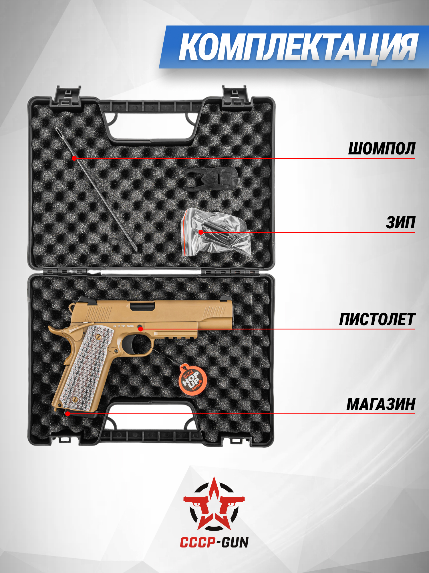 | Комплект поставки | Пистолет, шомпол, магазин, упаковка, краткая документация, копия сертификата (по запросу покупателя) |