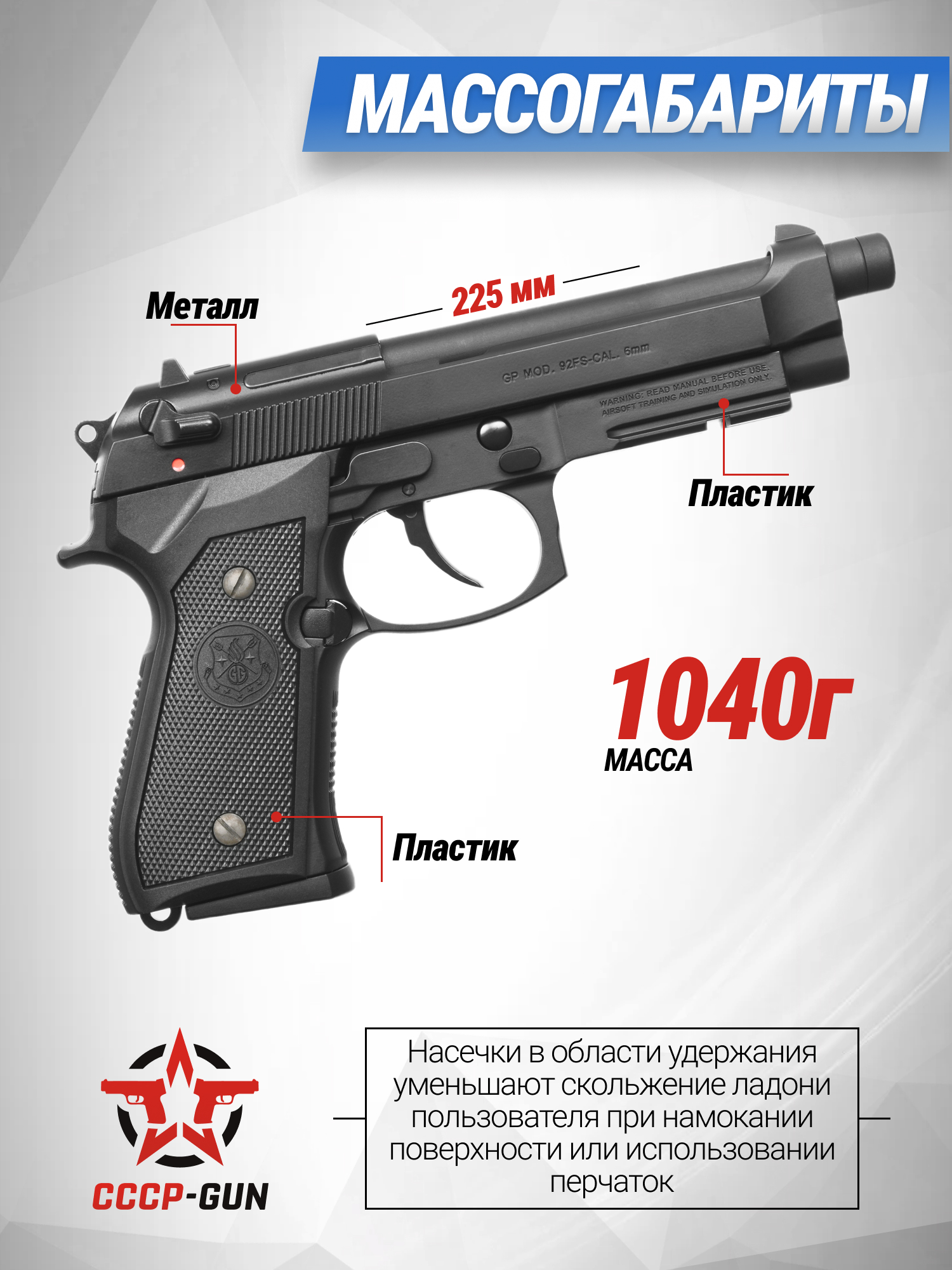Страйкбольный пистолет Borner 92M (6 мм, CO2, Beretta 92, металл)