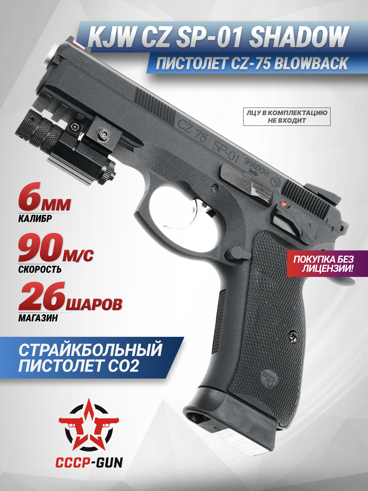 Страйкбольный пистолет KJW CZ-75 SP-01 Shadow (6 мм, GBB, CO2, ACCU)