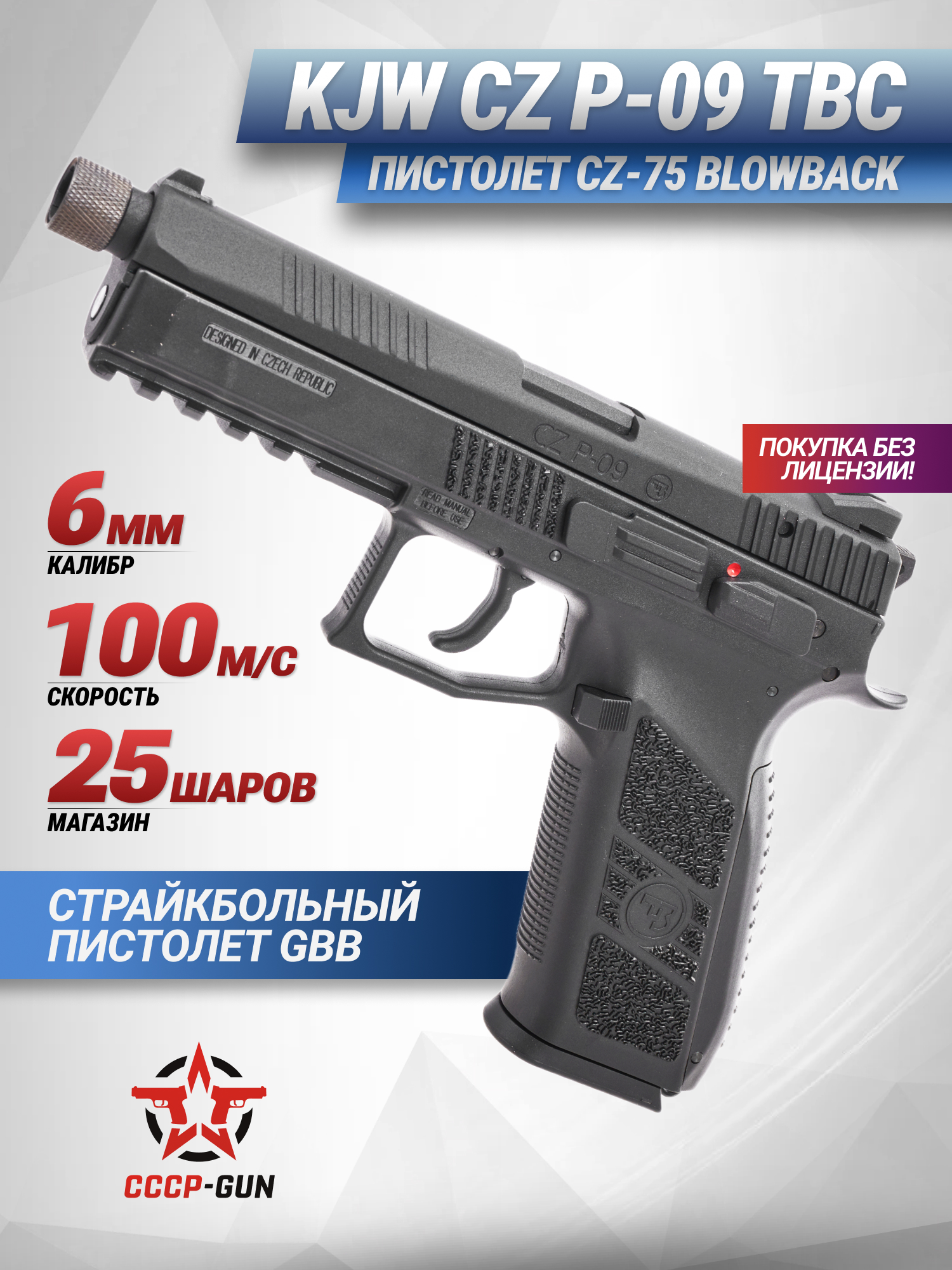 Страйкбольный пистолет KJW CZ P-09 TBC (6 мм, GBB, CO2, резьба)