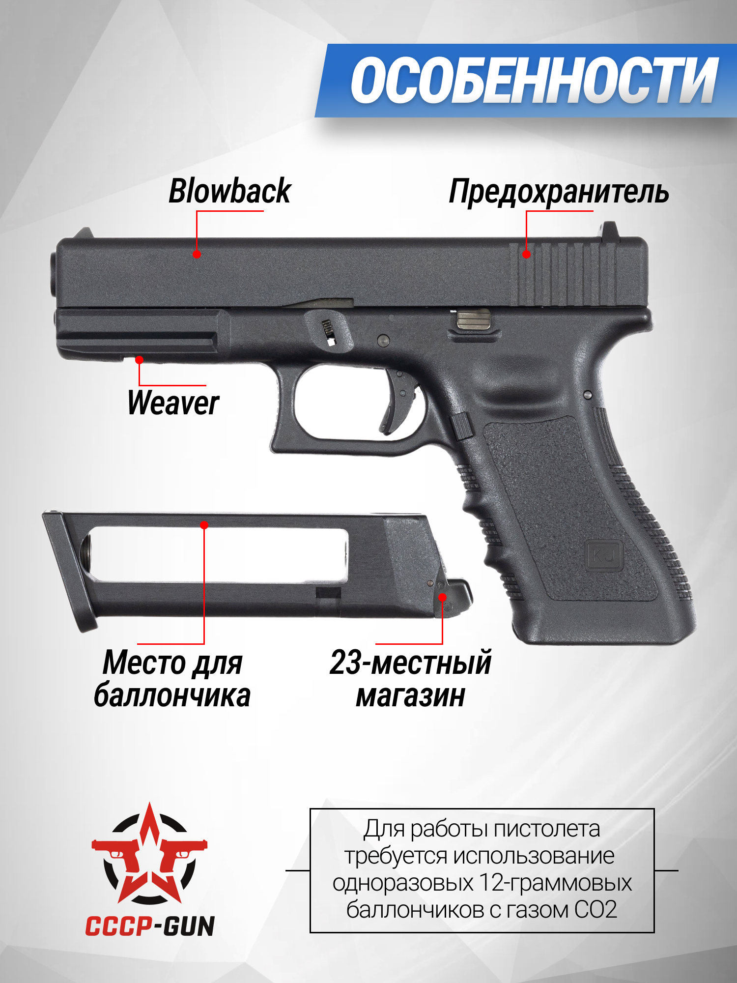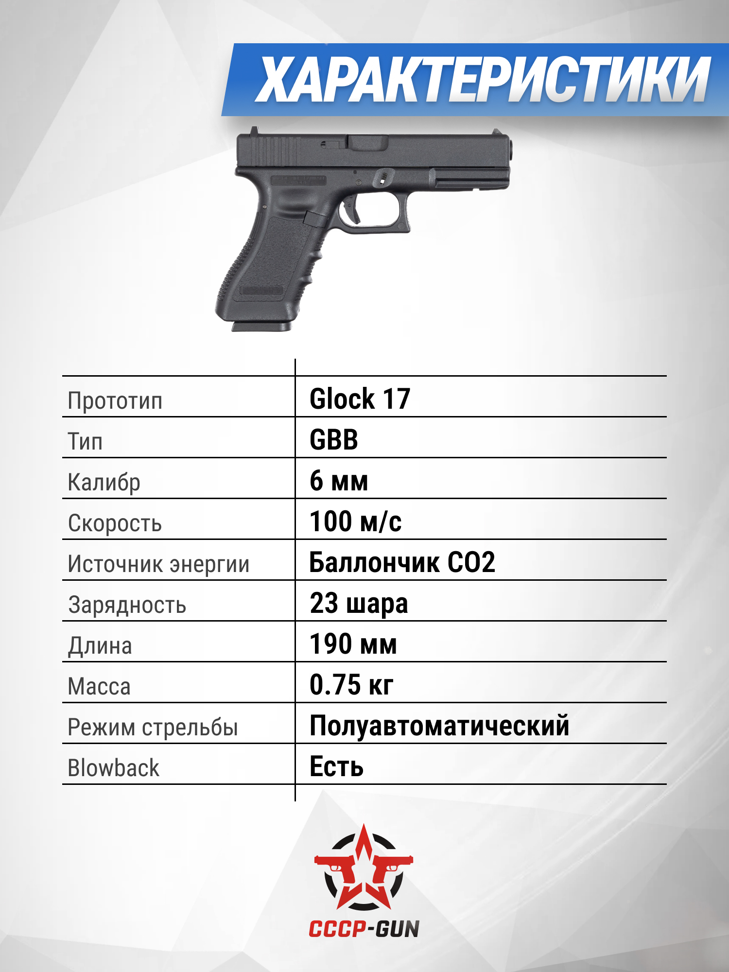 Шикарная страйкбольная модификация от тайваньского производителя KJW в точности реплицирует огнестрельную версию австрийского пистолета Glock 17, что без сомнения придется по нраву каждому любителю игры в страйкбол.