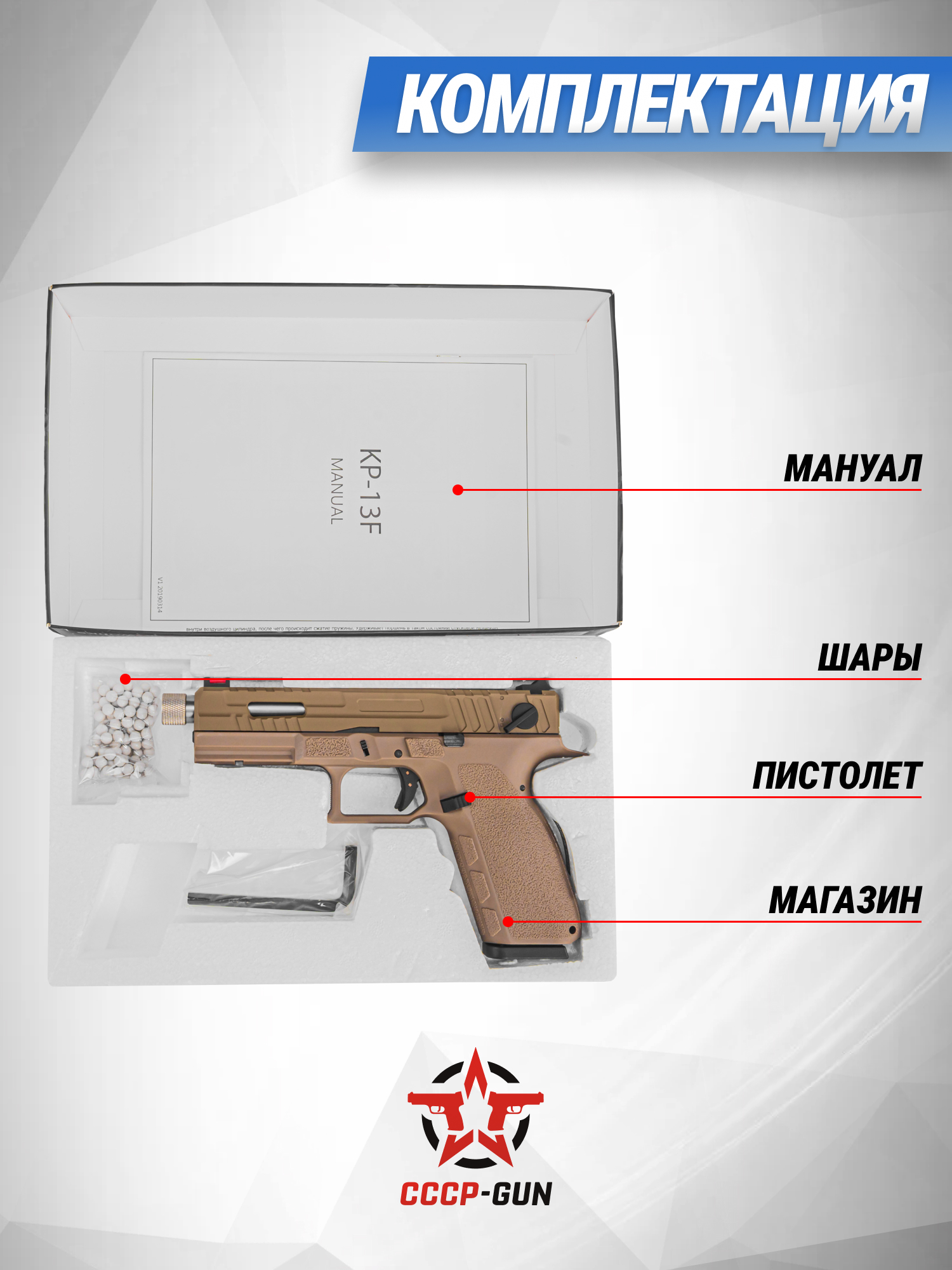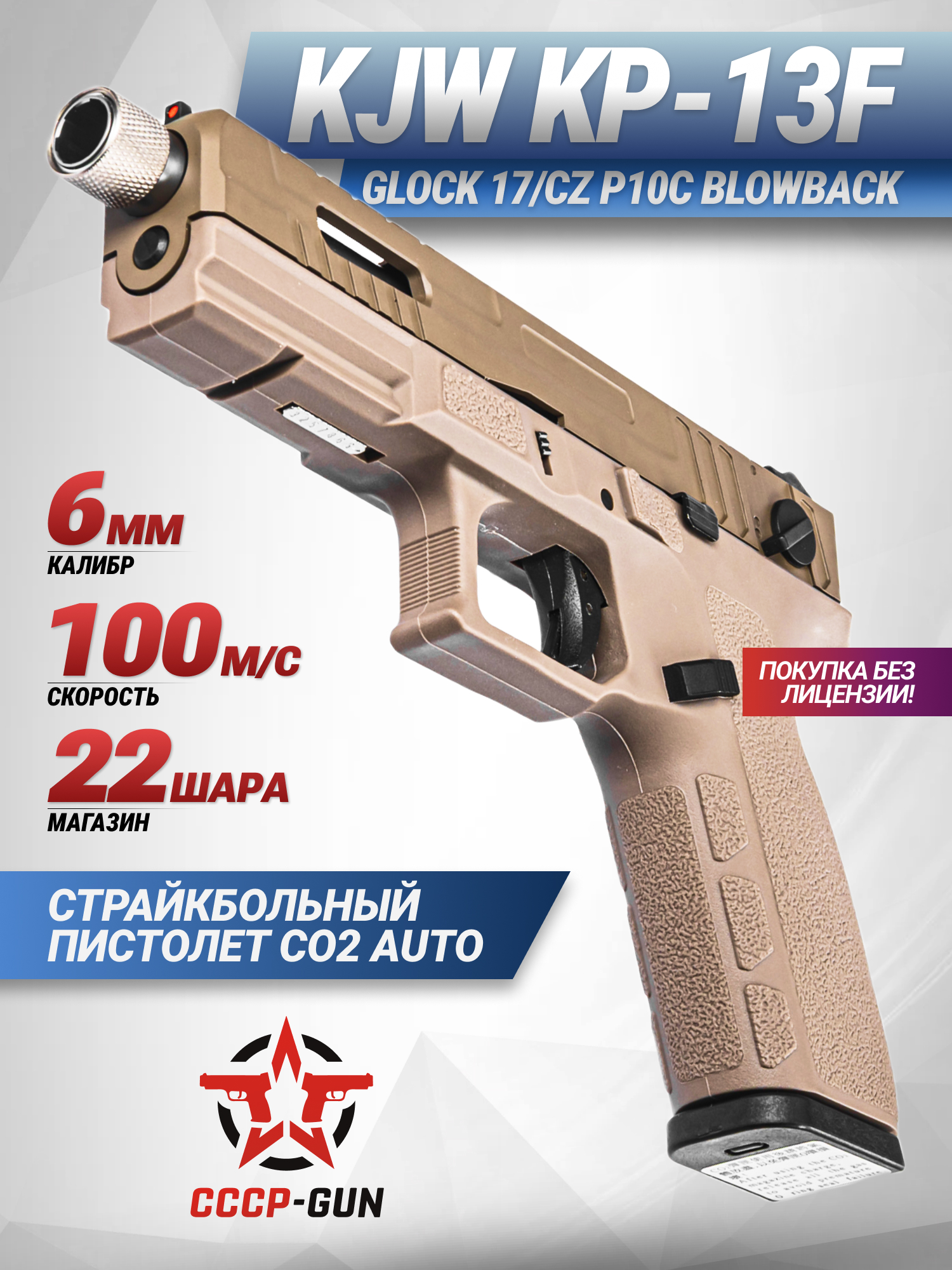 Страйкбольный пистолет KJW KP-13F (TBC, full auto, CO2)