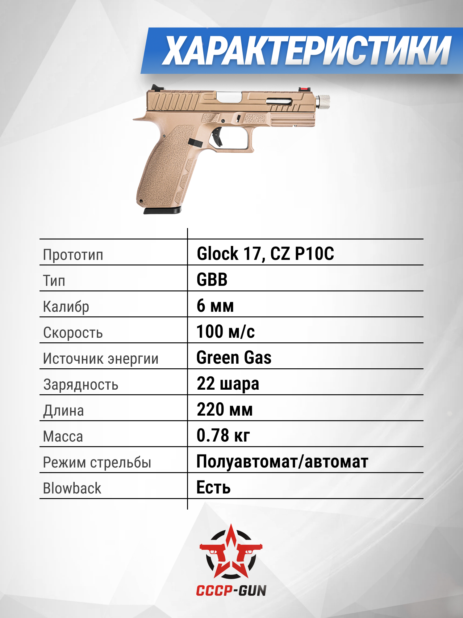 Страйкбольный пистолет KJW CZ P-09 (6 мм, CO2, GBB, Tan)