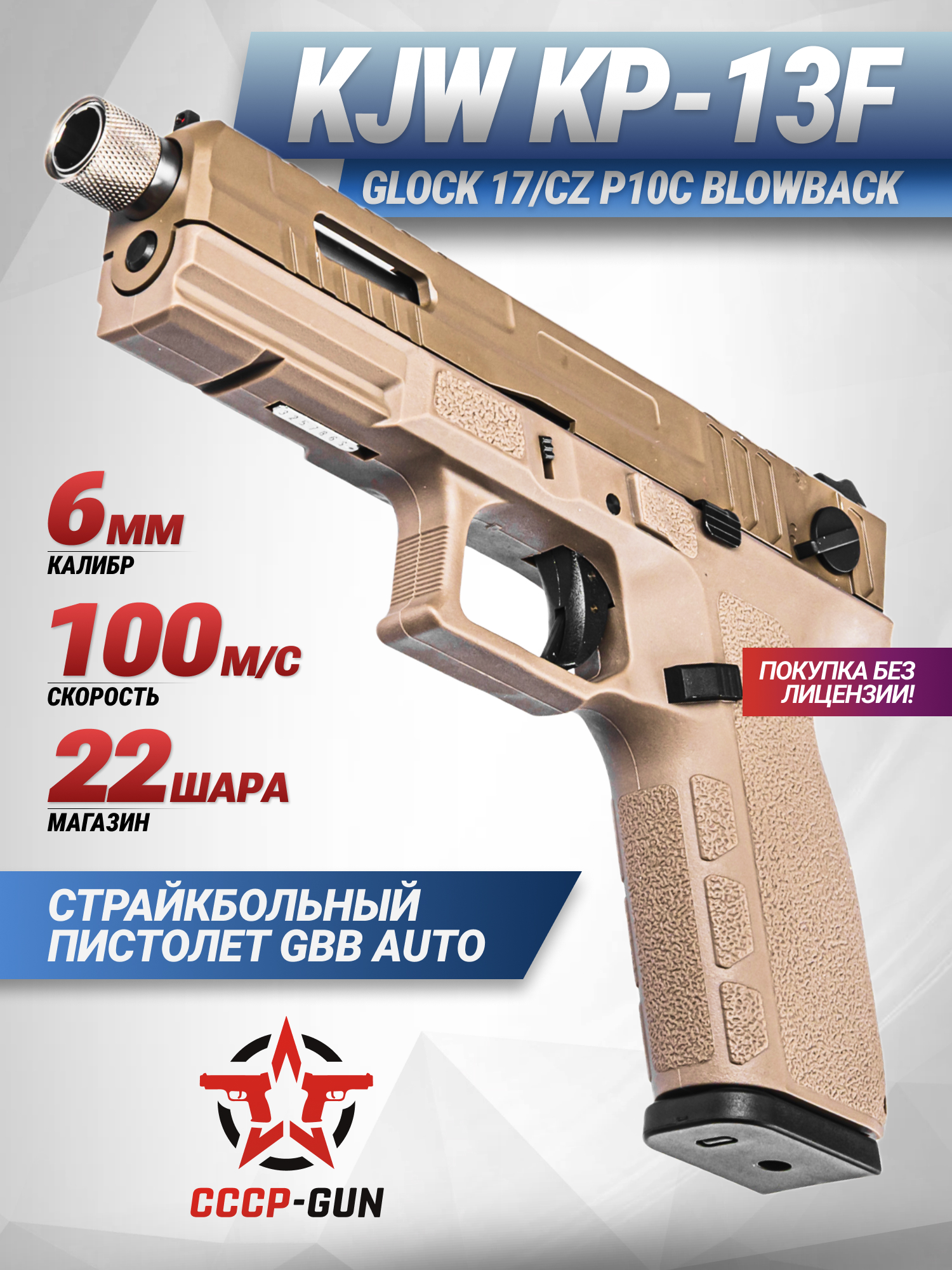 Страйкбольный пистолет KJW KP-13F (TBC, full auto, CO2, Tan)