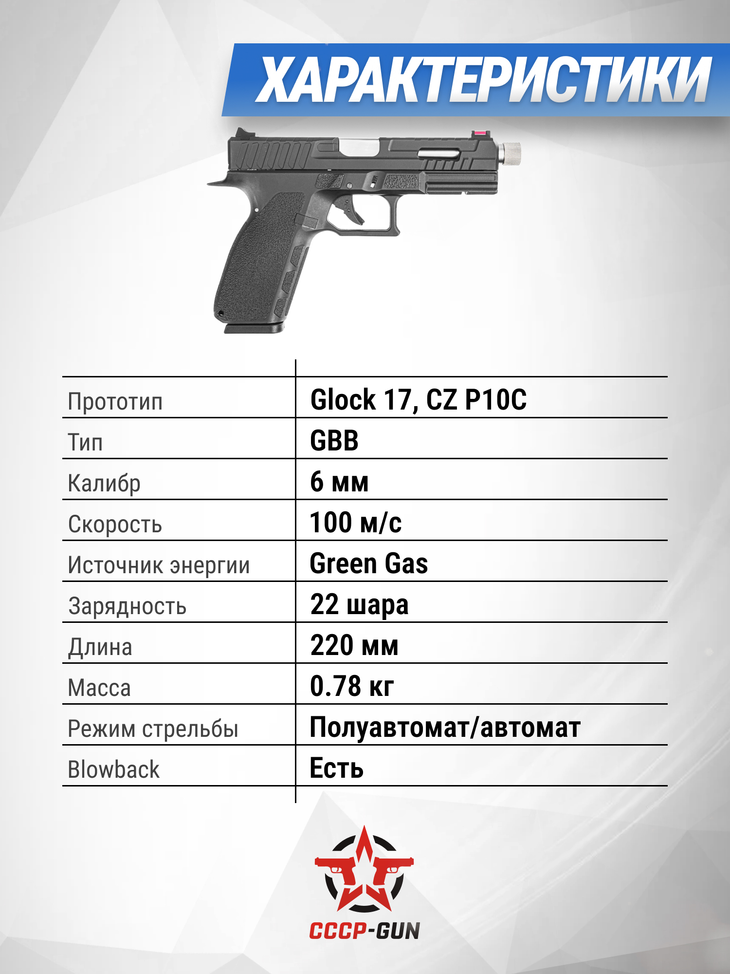 Страйкбольный пистолет KJW CZ P-09 TBC (6 мм, GBB, Green Gas, резьба)