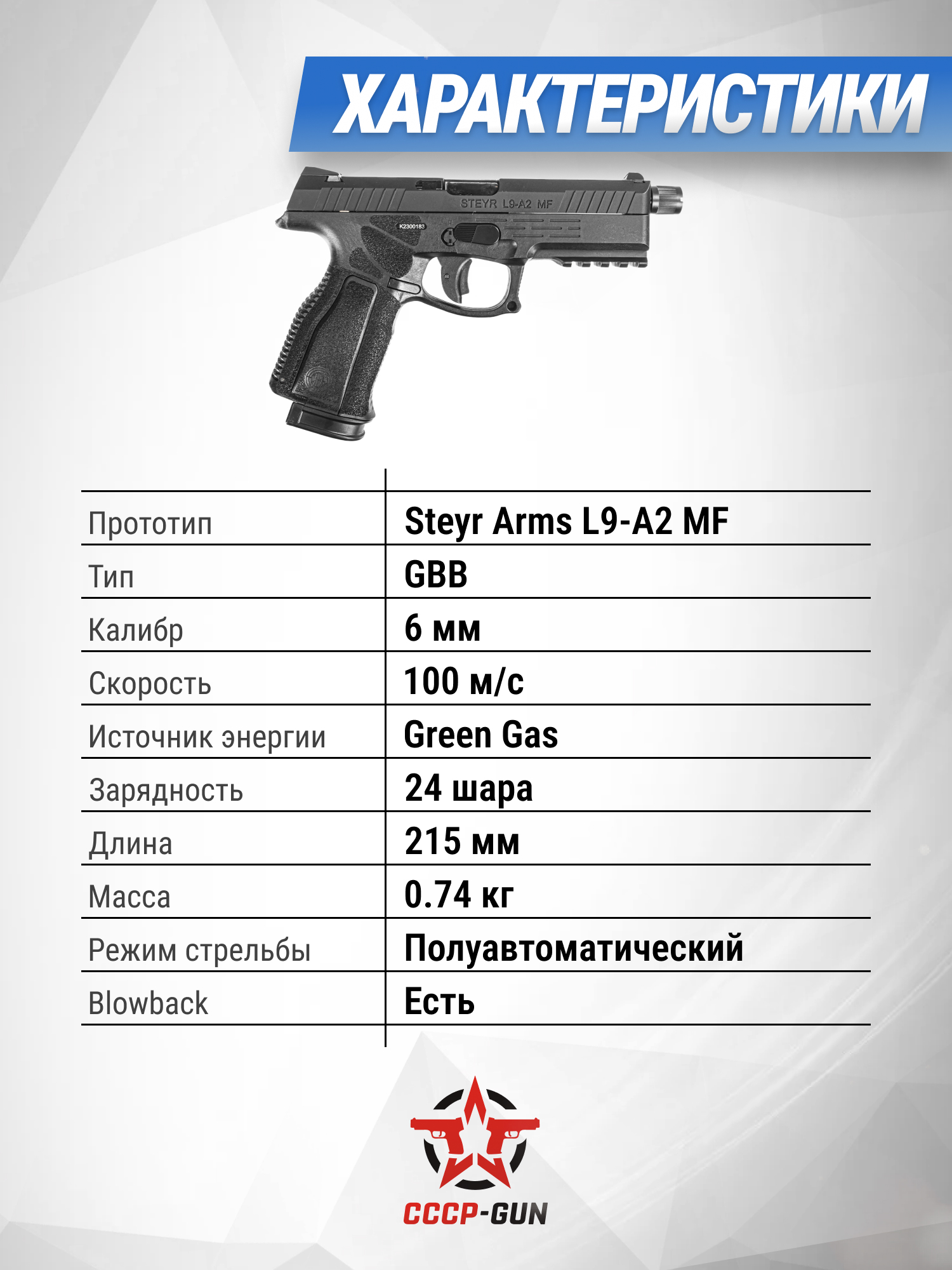 Страйкбольный пистолет KJW Steyr L9-A2 (6 мм, GBB, Green Gas)