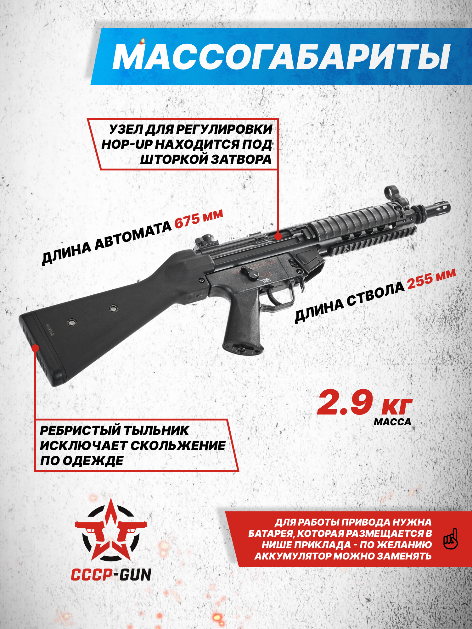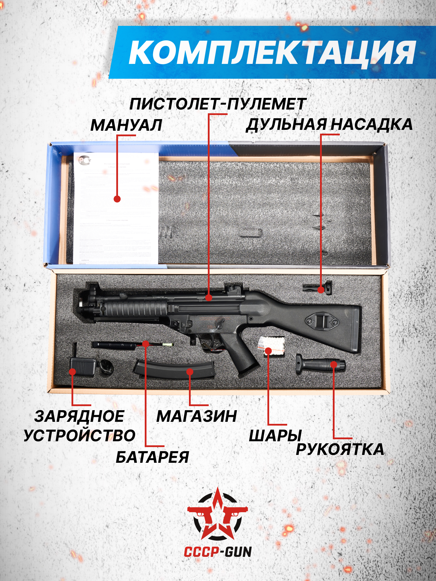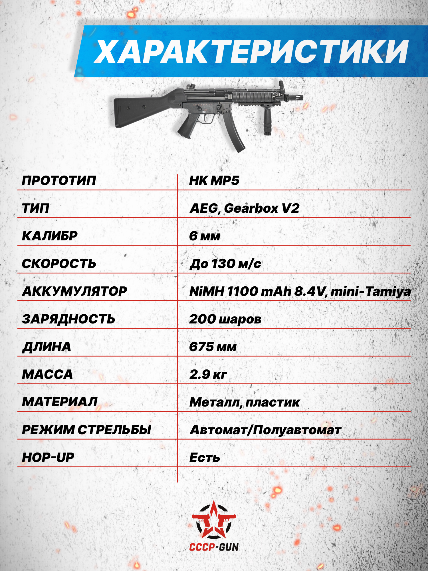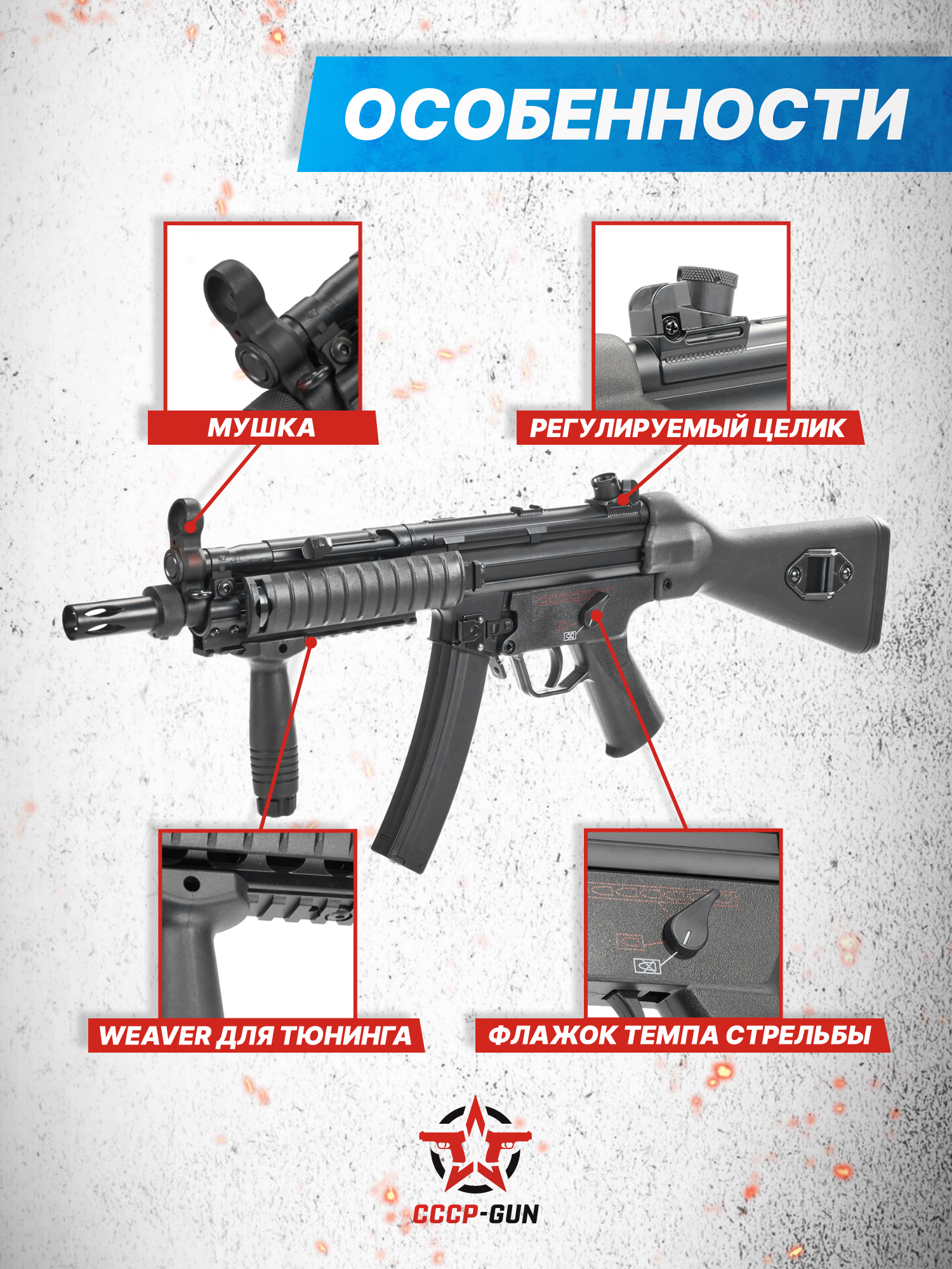 Пистолет-пулемёт, который вы можете рассмотреть выше, является одним из самых популярных видов оружия в страйкболе. Образцы, которые копируют внешний вид автоматов MP5, очень ценят за их компактность и мобильность. Кроме внешнего вида, единственным характерным отличием данных образцов от полноразмерных штурмовых винтовок является длина внутреннего стволика. Боевой пистолет-пулемёт был разработан в Германии, в конце прошлого века. Оружие до сих пор пользуется популярностью у полицейских.