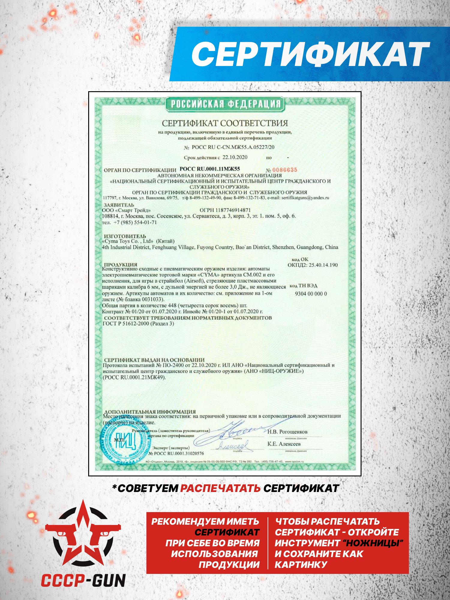 | Комплект поставки | Автомат, паспорт, магазин, упаковка, дополнительное сменное цевьё |