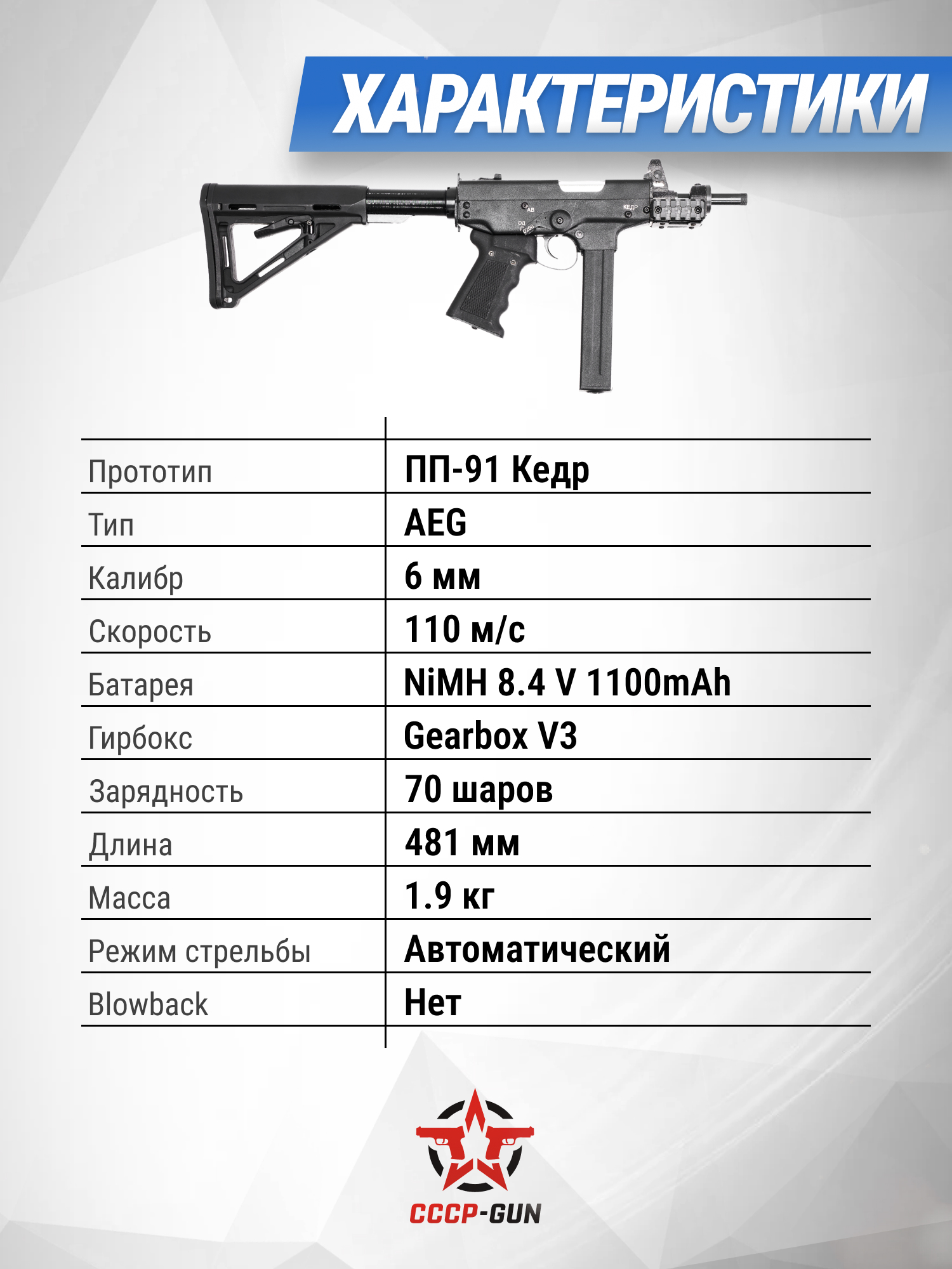 Страйкбольный пистолет-пулемет СтрайкАрмс Кедр-М (6 мм, ПП-91, телескопический приклад)