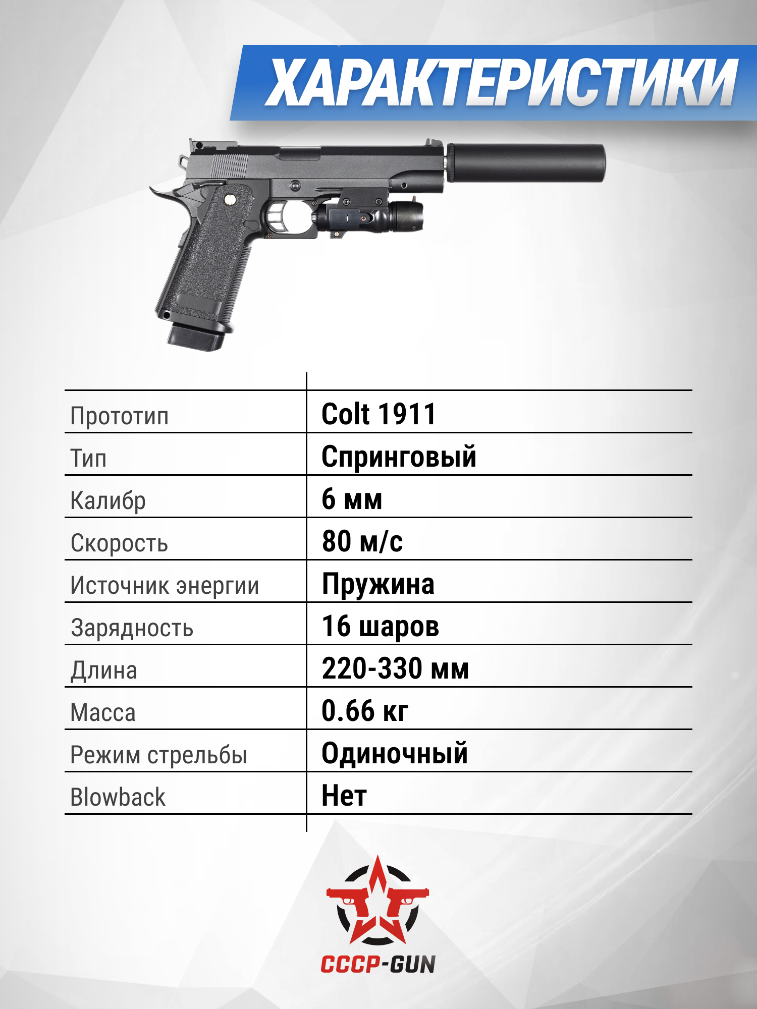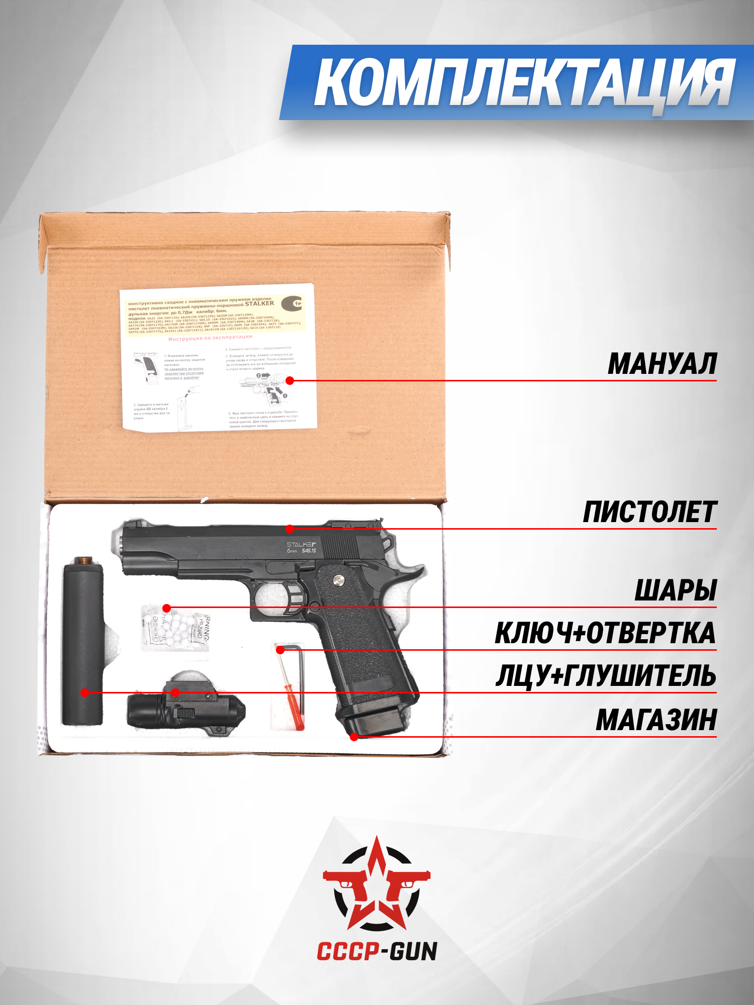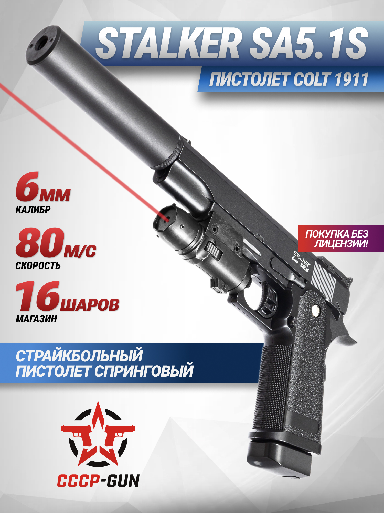 Страйкбольный пистолет Stalker SA5.1S (6 мм, Colt 1911, глушитель, ЛЦУ)