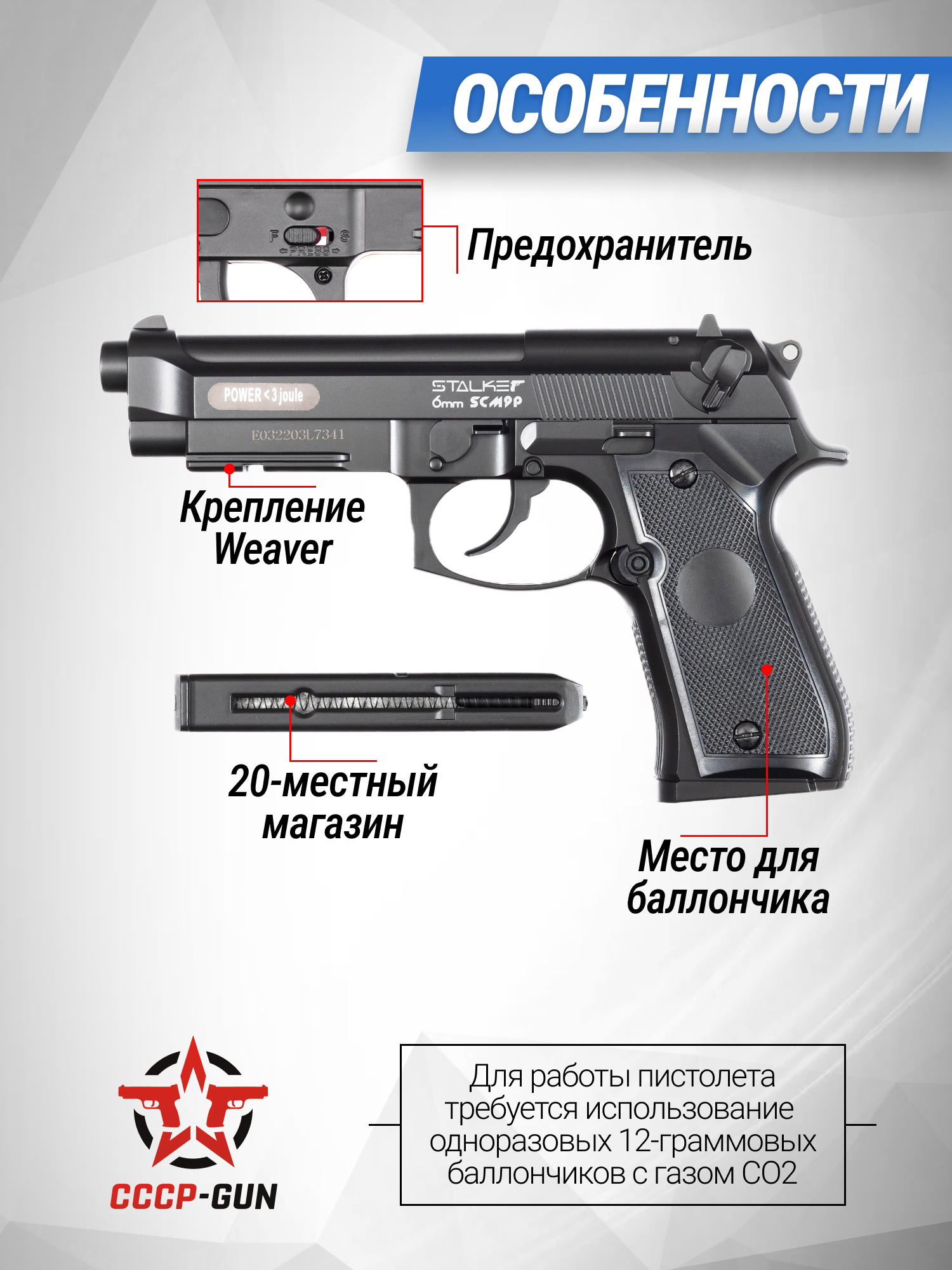 Страйкбольный пистолет Stalker SCM9P купить можно рекомендовать всем начинающим игрокам в страйкбол. Несмотря на свою стоимость данный пистолет имеет возможность стрельбы в полуавтоматическом режиме.