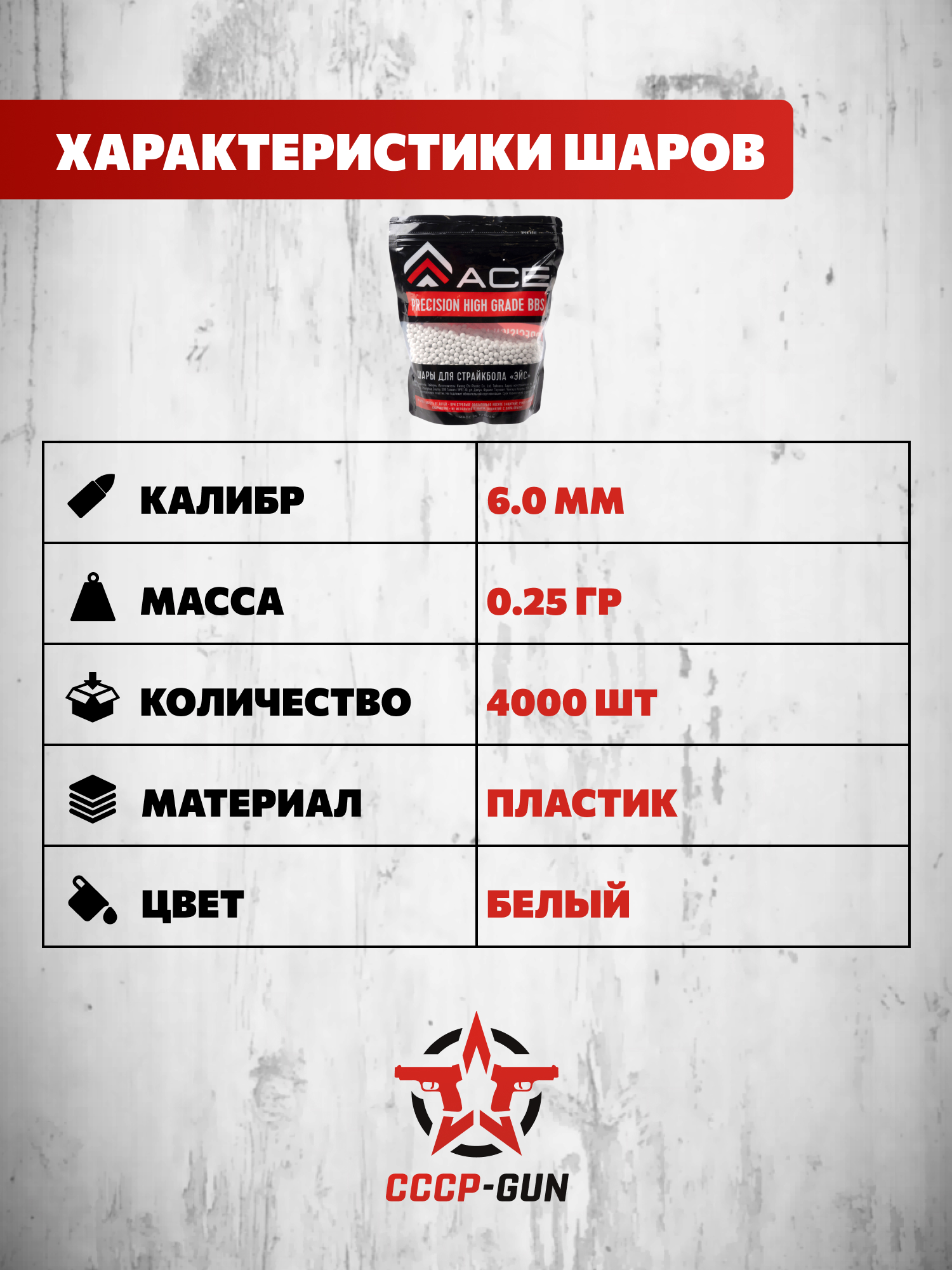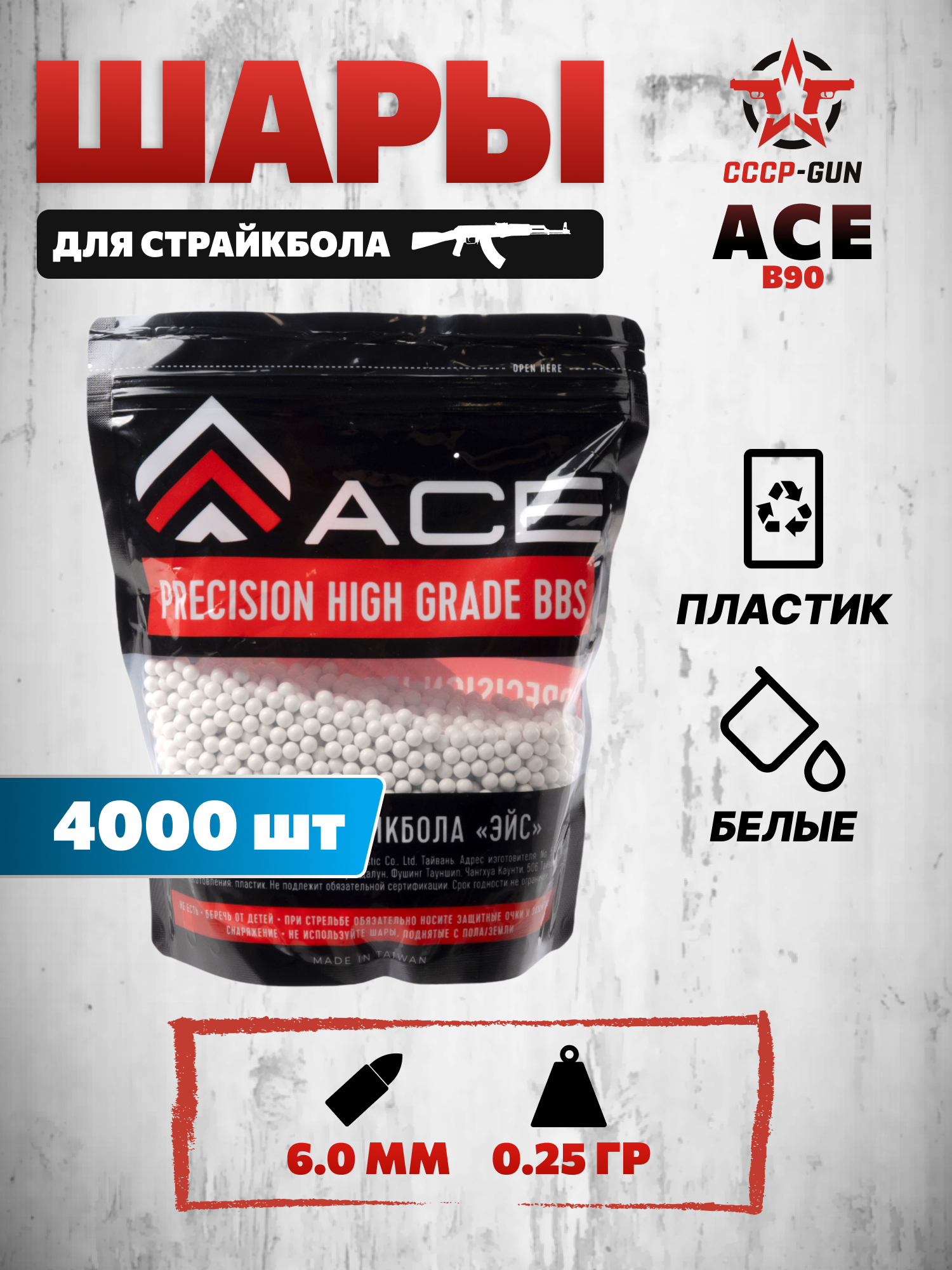 Страйкбольные шарики ACE B90 6 мм (0.25 г, белые, 4000 шт, 1 кг)