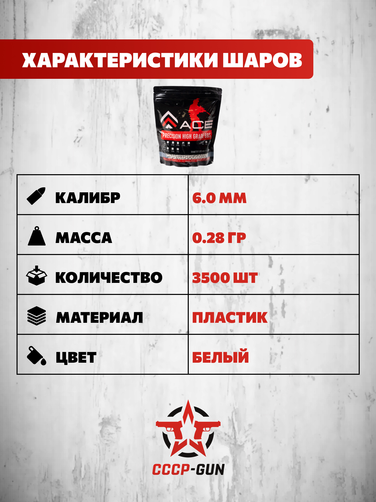 Страйкбольные шарики ACE B91 6 мм (0.28 г, белые, 3500 шт, 1 кг)