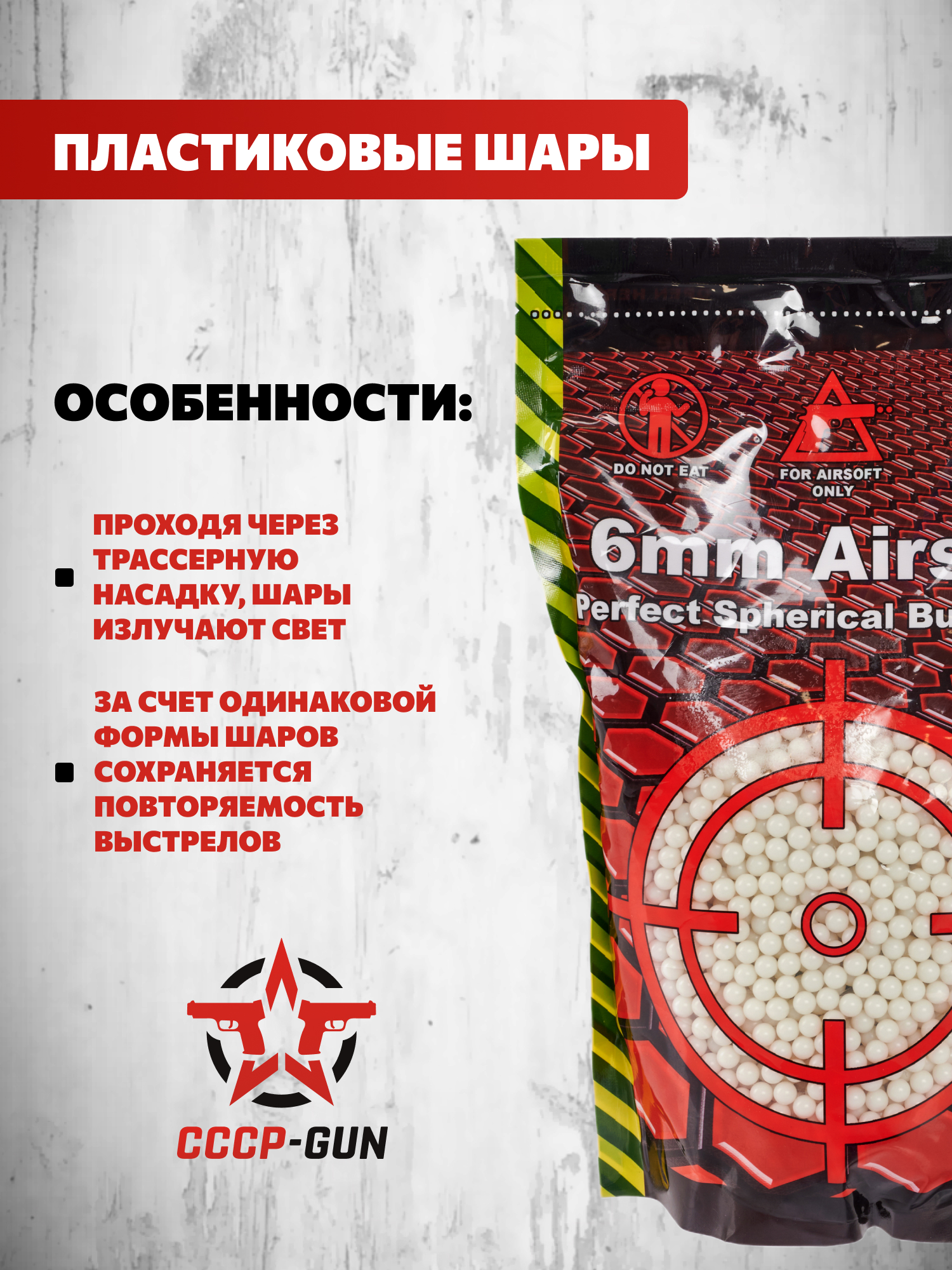 Масса отдельно взятого шарика из представленного комплекта составила 0.2 грамма. Небольшой вес заряда подобрали специально под оружие ближнего боя, для которого характерна сниженная мощность - уменьшение массы шара благоприятно отражается на скорости его полета. Соответственно сохраняется правильная баллистика.