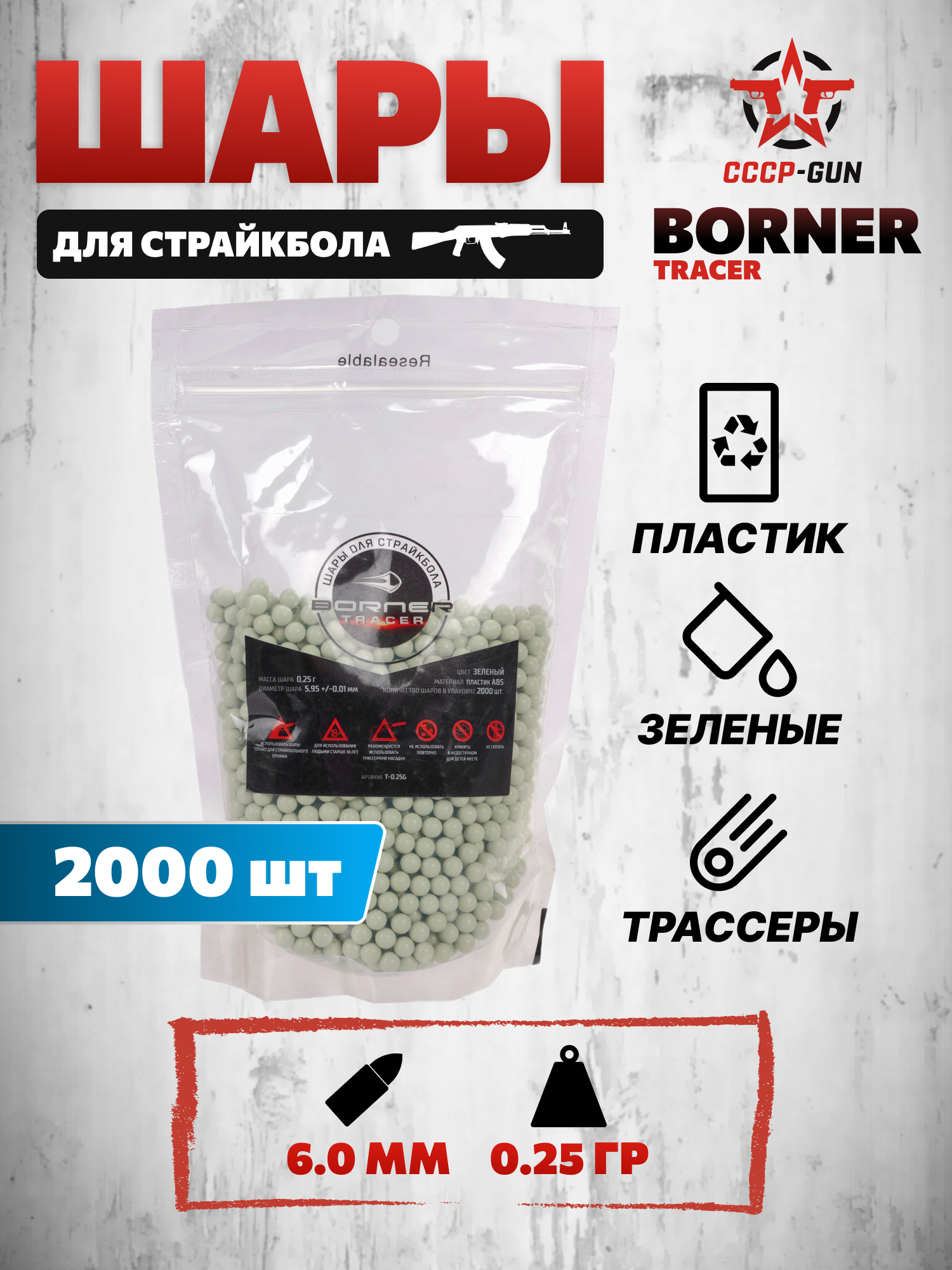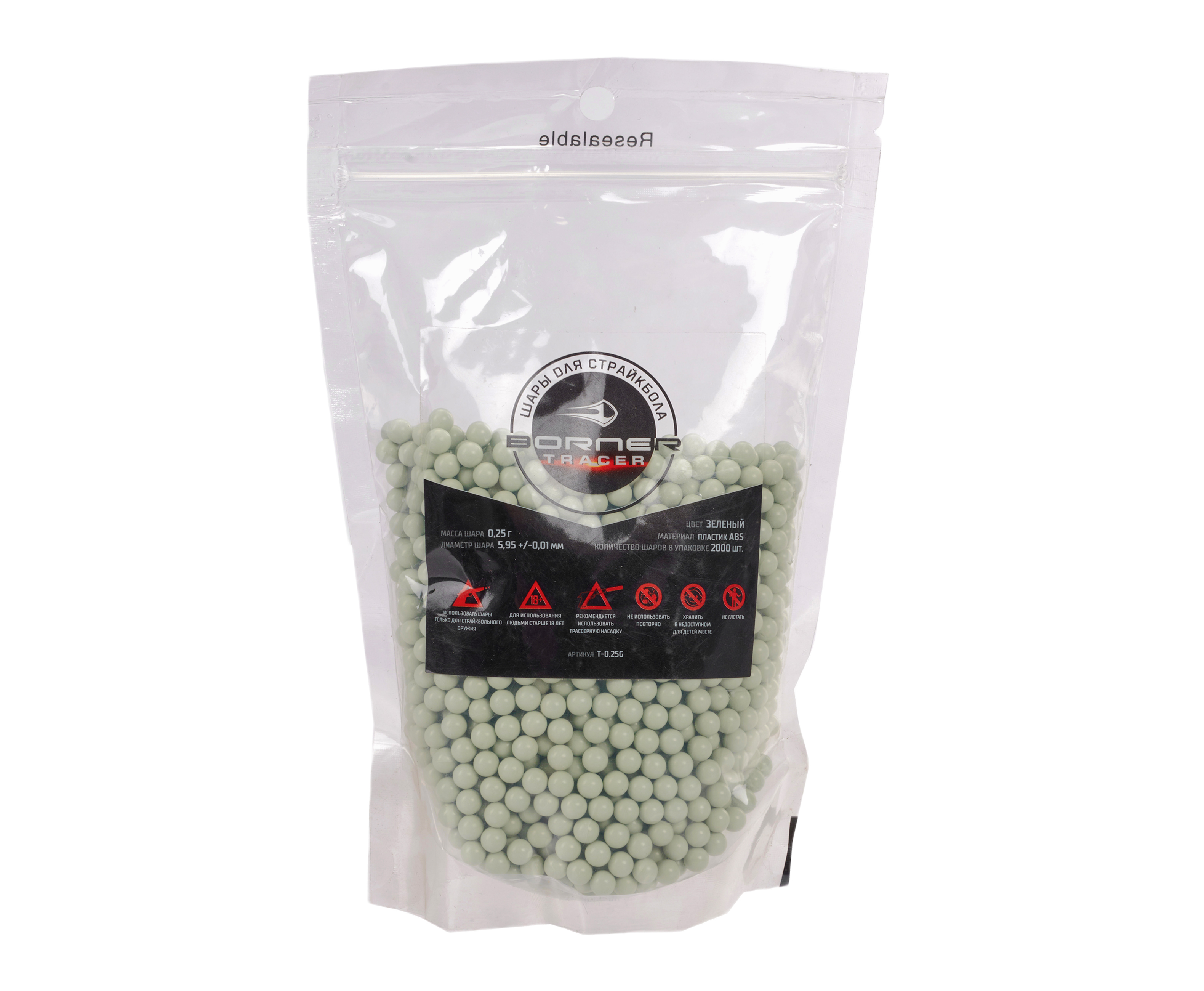 Страйкбольные шарики Borner T-025G 6 мм (0.25 г, зеленый, трассирующие, 2000 шт, 0.5 кг)