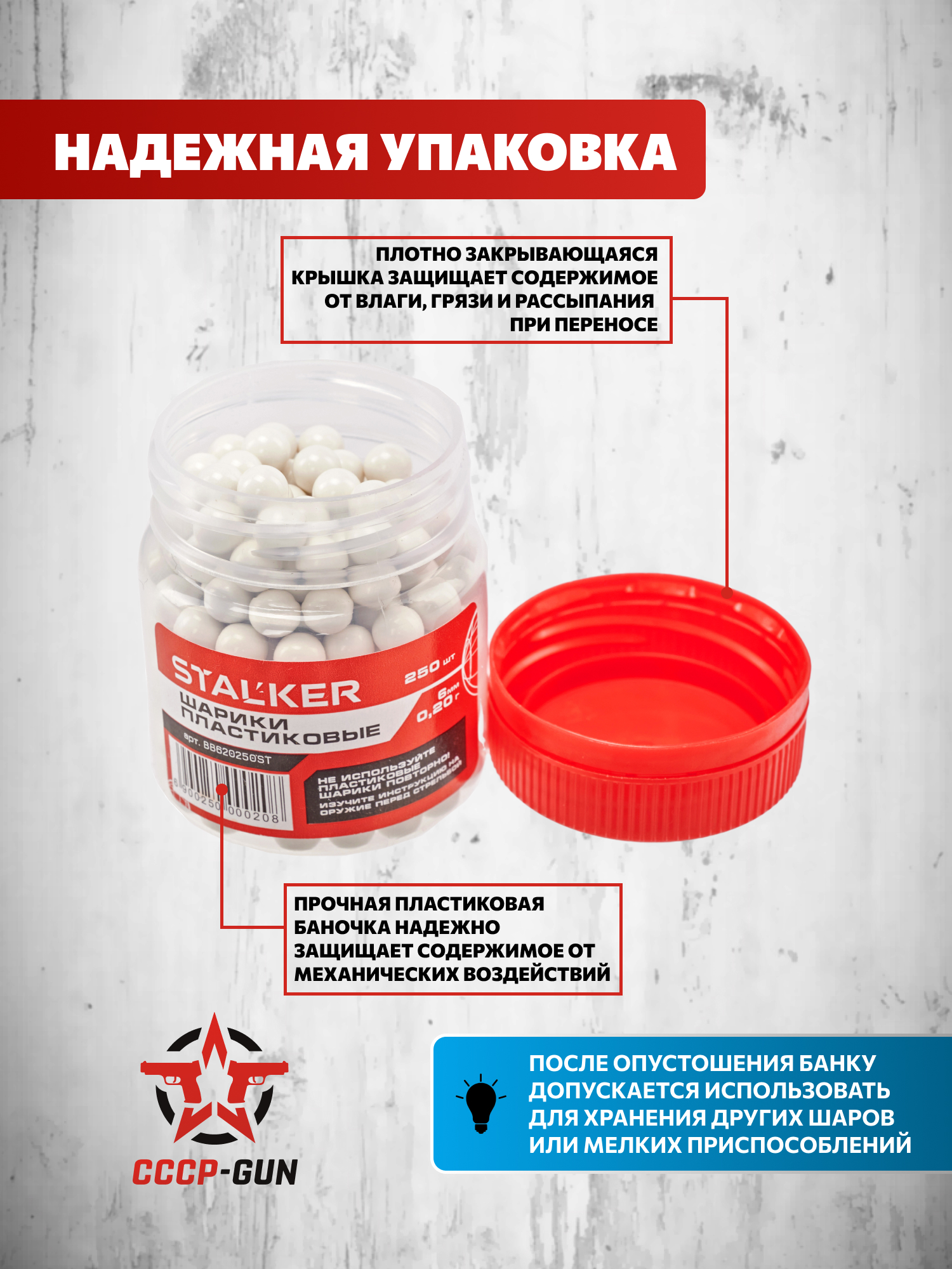 Несмотря на кажущуюся идентичность шарики для страйкбольного оружия нельзя назвать одинаковыми. Качественные боеприпасы отличаются от дешевых плотностью пластика - благодаря корректному расчету жесткости заряды не будут раскалываться внутри стволика оружия, приводя к задержке или выводу из строя. Среди доступных, но надежных вариаций выделились пульки фирмы Сталкер.