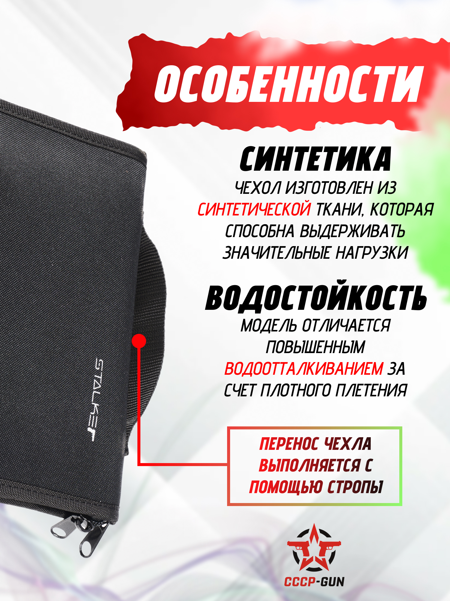 Для пошива этой модели использовали нейлон, обладающий устойчивостью к протиранию. Вес чехла Stalker - менее 300 грамм. Изготовитель выполнил изделие в неброском дизайне, который не будет намекать на характер переносимой внутри вещи.