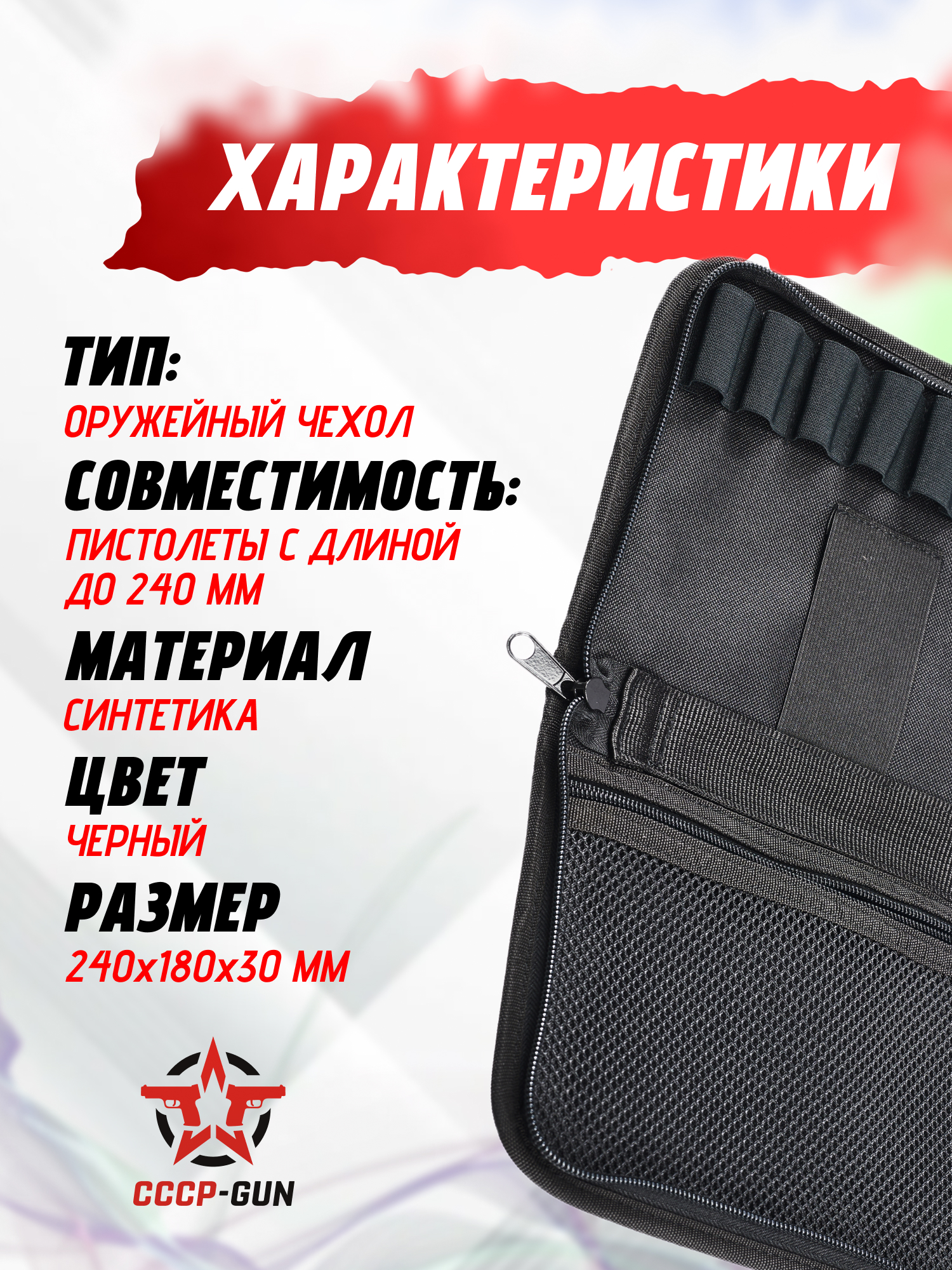 | Особенности конструкции | Сетчатый органайзер для документов, эластичный держатель на 5 элементов, держатель пистолета, размер - 240х180х30 мм |