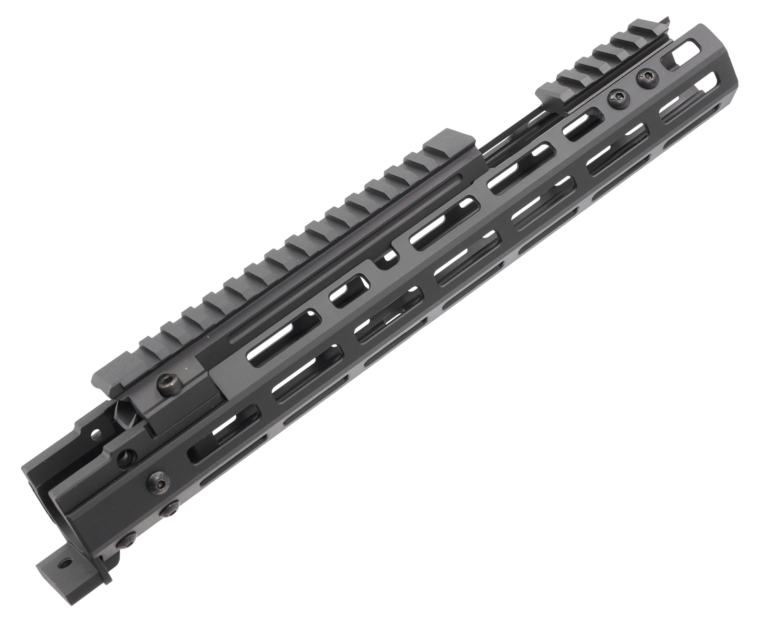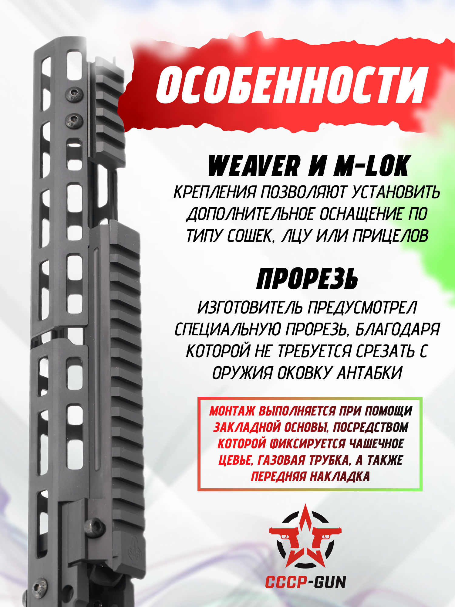 Верхняя часть оснащена двумя планками Weaver 22 мм - одна расположена над газовой трубкой, вторая - над передней накладкой. Они предназначены для закрепления коллиматоров, а также прочих целевых приспособлений. Боковые и нижняя поверхности выполнены с M-LOK интерфейсом, состоящим из 7 слотов по длине и подходящим для размещения тактических рукоятей, фонарей и целеуказателей.