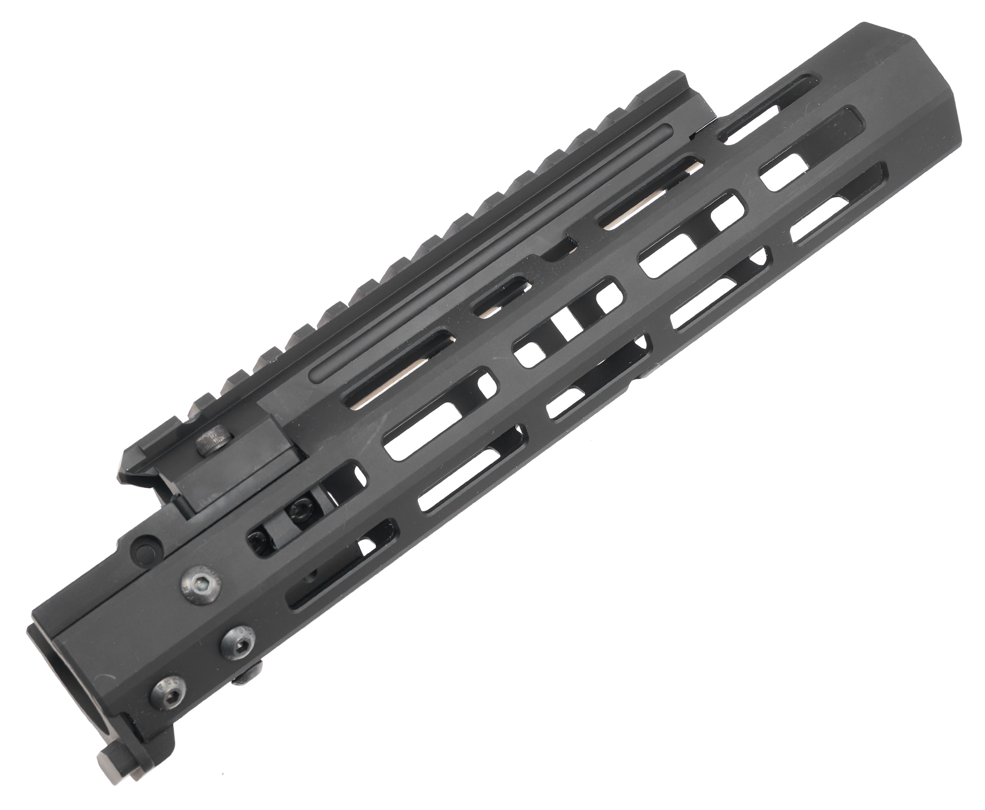 В верхней части экземпляра размещена планка Weaver 22 мм, необходимая для установки прицельных устройств, ЛЦУ или фонарей. Основной интерфейс - M-LOK, расположен по бокам и снизу. Слоты позволяют закрепить тактические рукояти, сошки или элементы управления, предоставляя комфортную настройку платформы под свои нужды.