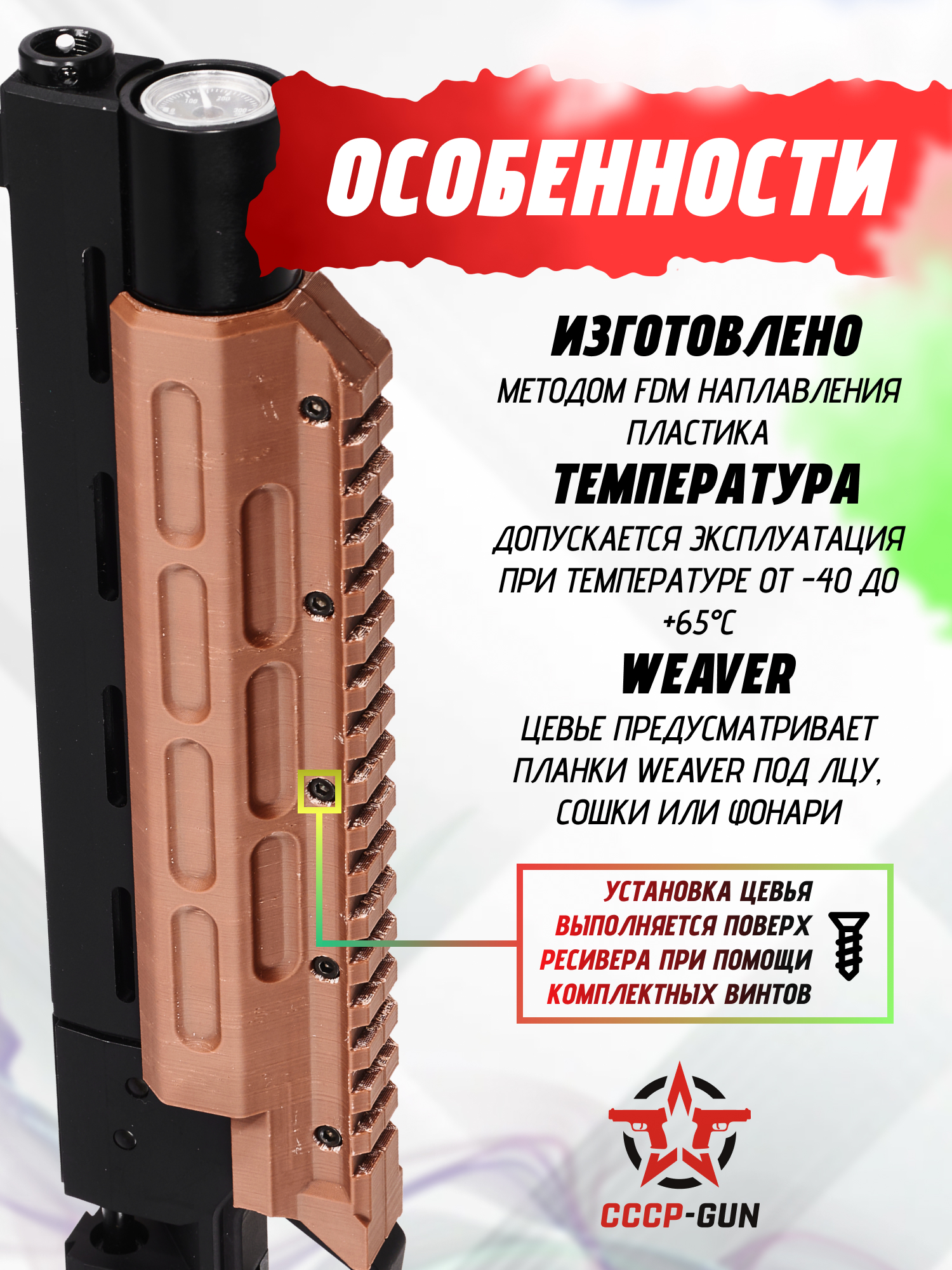 | Особенности конструкции | Планка Weaver 22 мм, 3D печать методом FDM наплавления, эксплуатационная температура: от -40 до + 65°C |