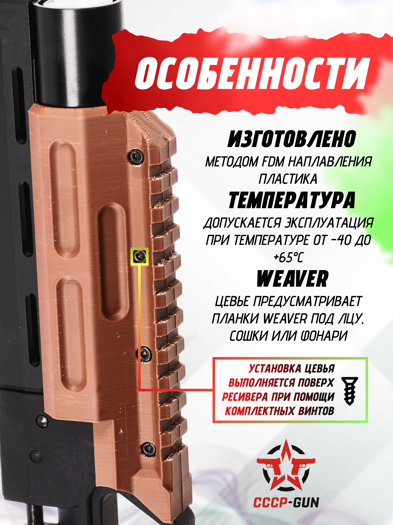 | Особенности конструкции | Планка Weaver 22 мм, 3D печать методом FDM наплавления, эксплуатационная температура: от -40 до + 65°C |