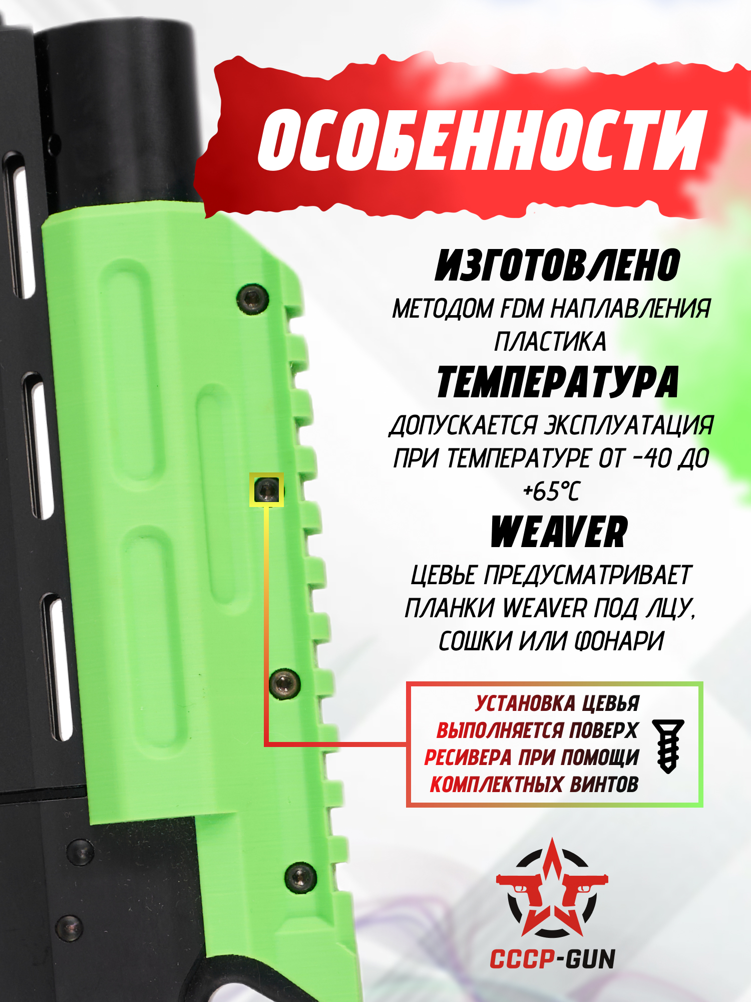 | Особенности конструкции | Планка Weaver 22 мм, 3D печать методом FDM наплавления, эксплуатационная температура: от -40 до + 65°C |
