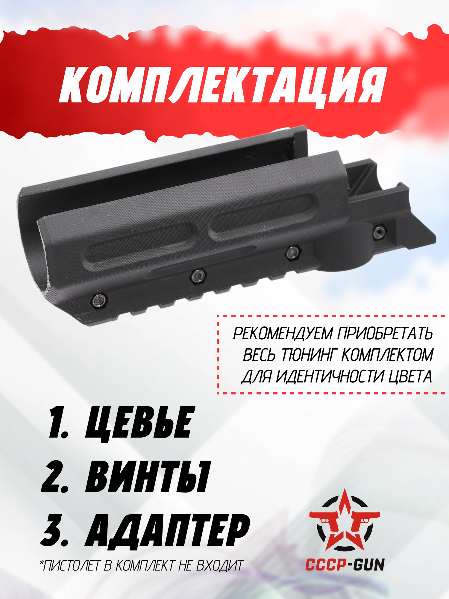 Производитель предупреждает, что представленный обвес изготовлен из пластика черного цвета, который не предназначен для эксплуатации с возможными сильными ударами и падениями изделий. Также не следует подвергать цевье продолжительному воздействию солнца, так как его излучение негативно отражается на характеристиках прочности полимера.