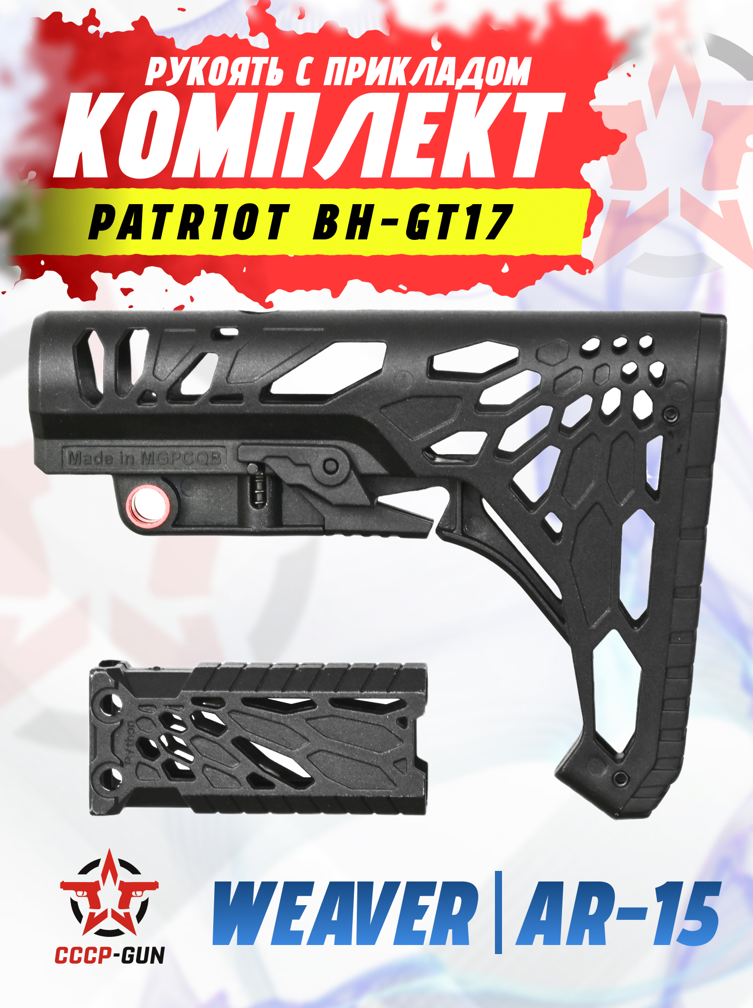 Телескопический приклад Patriot BH-GT17 относится к категории универсальных обвесов и создан для установки на оружейные платформы с трубой стандарта AR-15. Конструкция телескопическая, длина изделия меняется под предпочтения стрелка. Регулировка осуществляется при помощи фиксатора в средней части, он надежно закрепляет экземпляр в заданном положении.