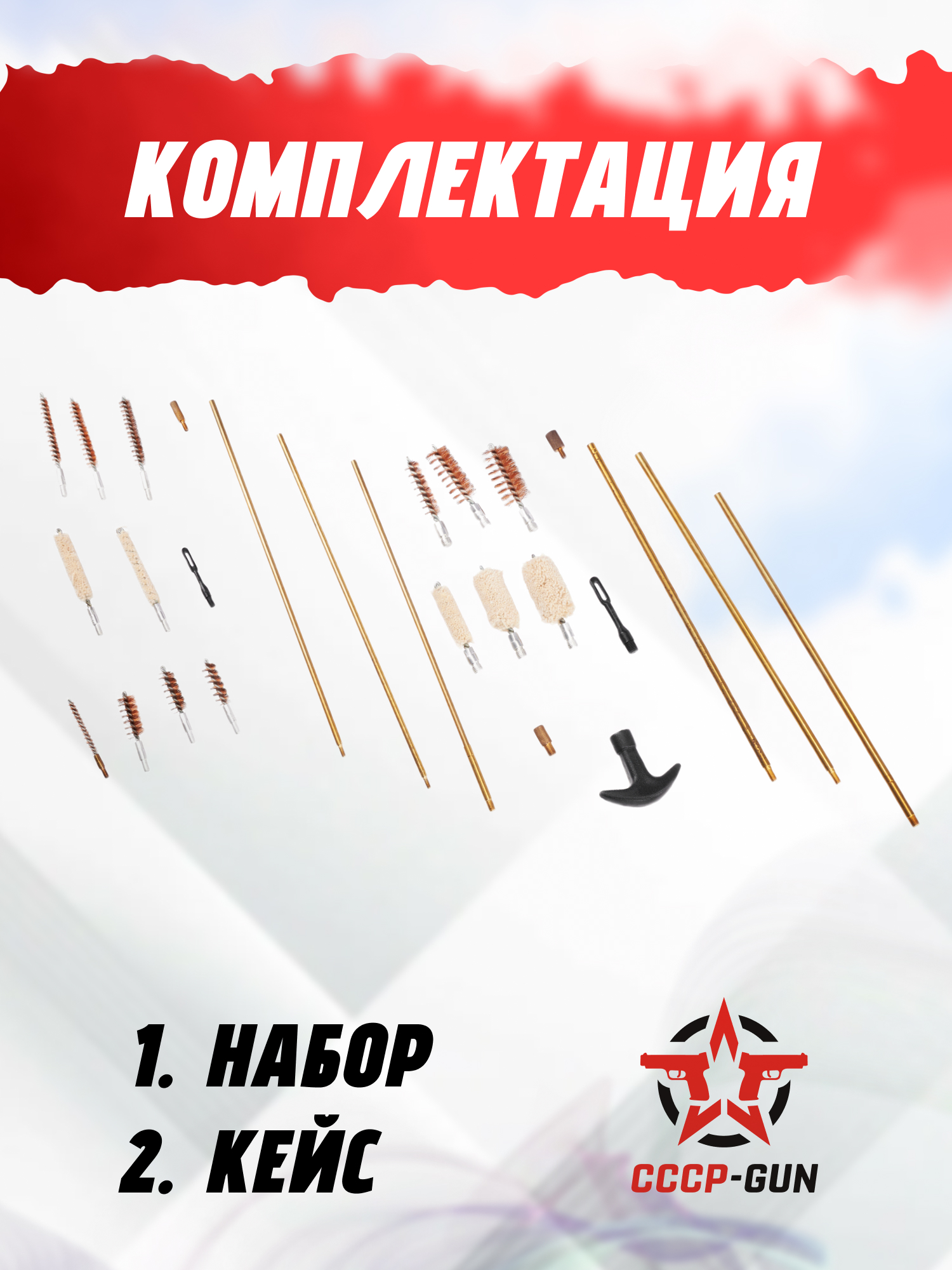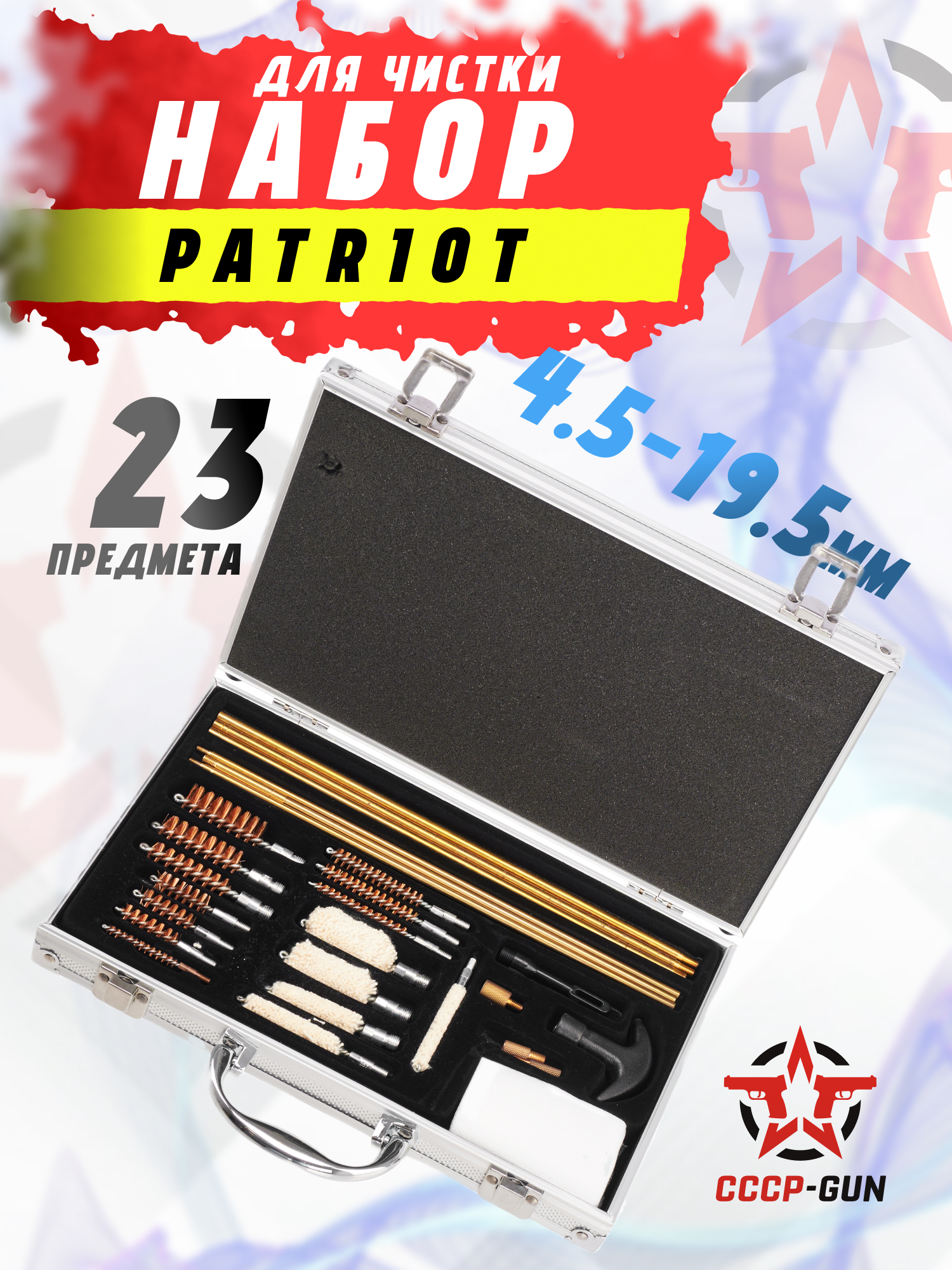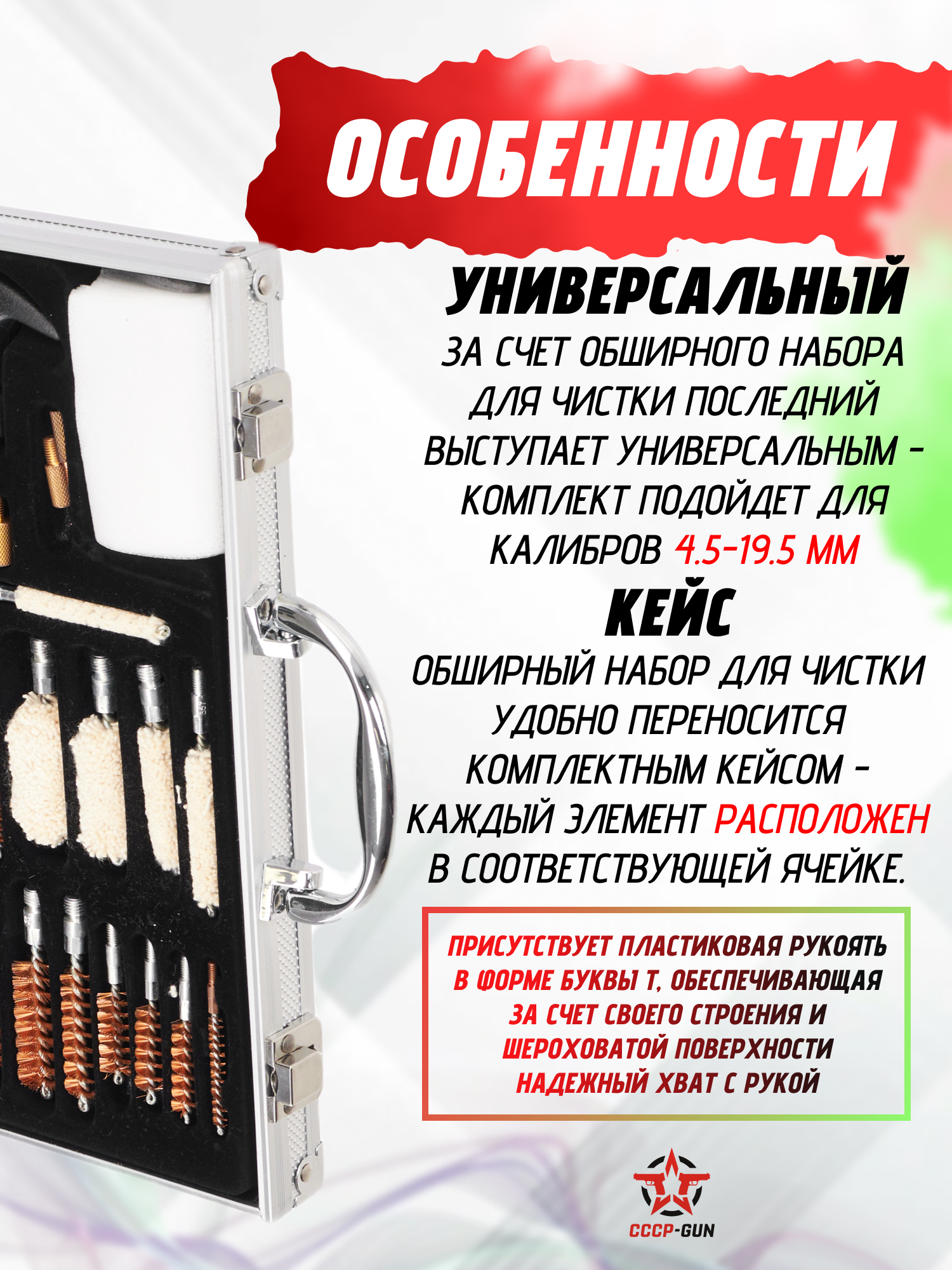 Универсальный набор для чистки оружия, который точно придется по душе всем тем у кого имеется несколько единиц вооружения с разным калибром, включающий в себя 23 предмета. Комплект подходит для чистки как огнестрельного, так и пневматического вооружения калибр которого составляет от 4.5 до 19.5 мм.