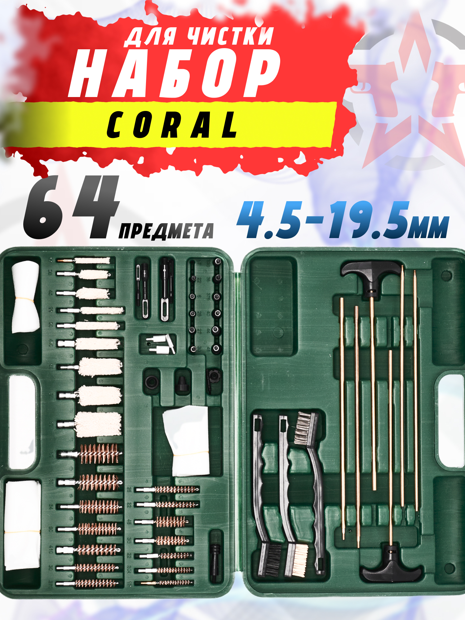 Если у вас имеется несколько единиц оружия под разный калибр, то вам точно следует обратить внимание на универсальный набор для чистки, который включает в себя 64 предмета. Комплект подойдет как для пневматического, так и для огнестрельного вооружения, причем и для гладкоствольных моделей, и для нарезного оружия.
