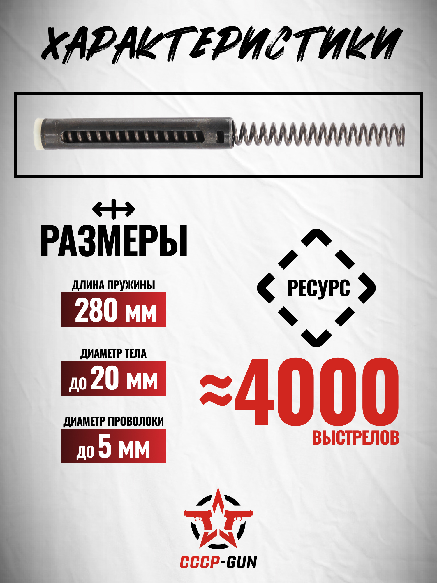 Пневматическая пружина Stoeger выполнена из закаленной стали и устойчива к нагрузкам, возникающим во время выстрела. Такой сплав повышает срок эксплуатации экземпляра и сохраняет его рабочие качества. Масса изделия не превышает 0.3 кг.