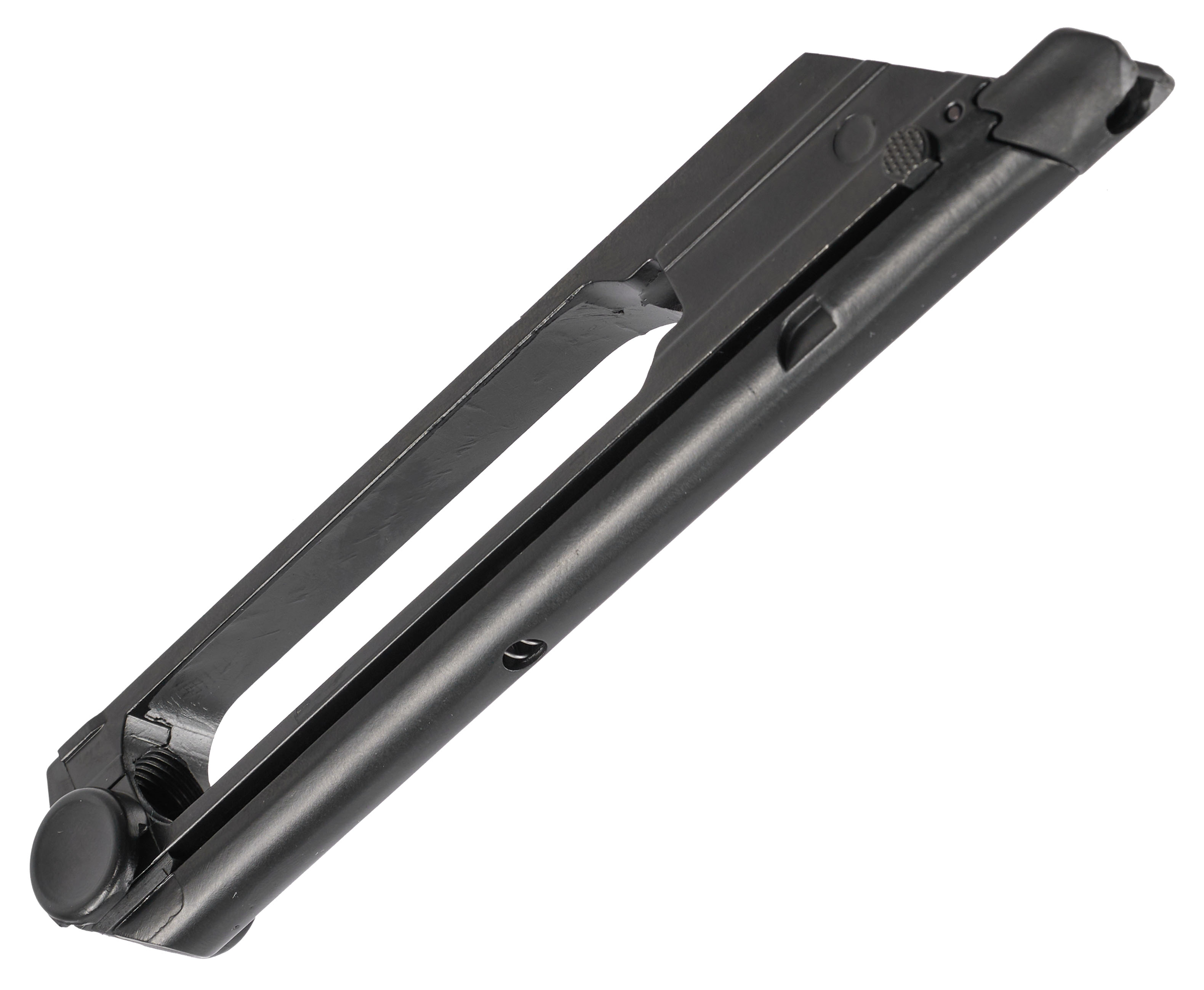 Рассматриваемый запасной магазин предназначен для пистолета Stalker STL, вдохновленного немецким Люгером П08. Полноразмерный формат изделия выполнен с отсеком под стандартный баллончик CO2 объемом 12 грамм. Резервуар фиксируется нижним винтом, рассчитанным под шестигранник.