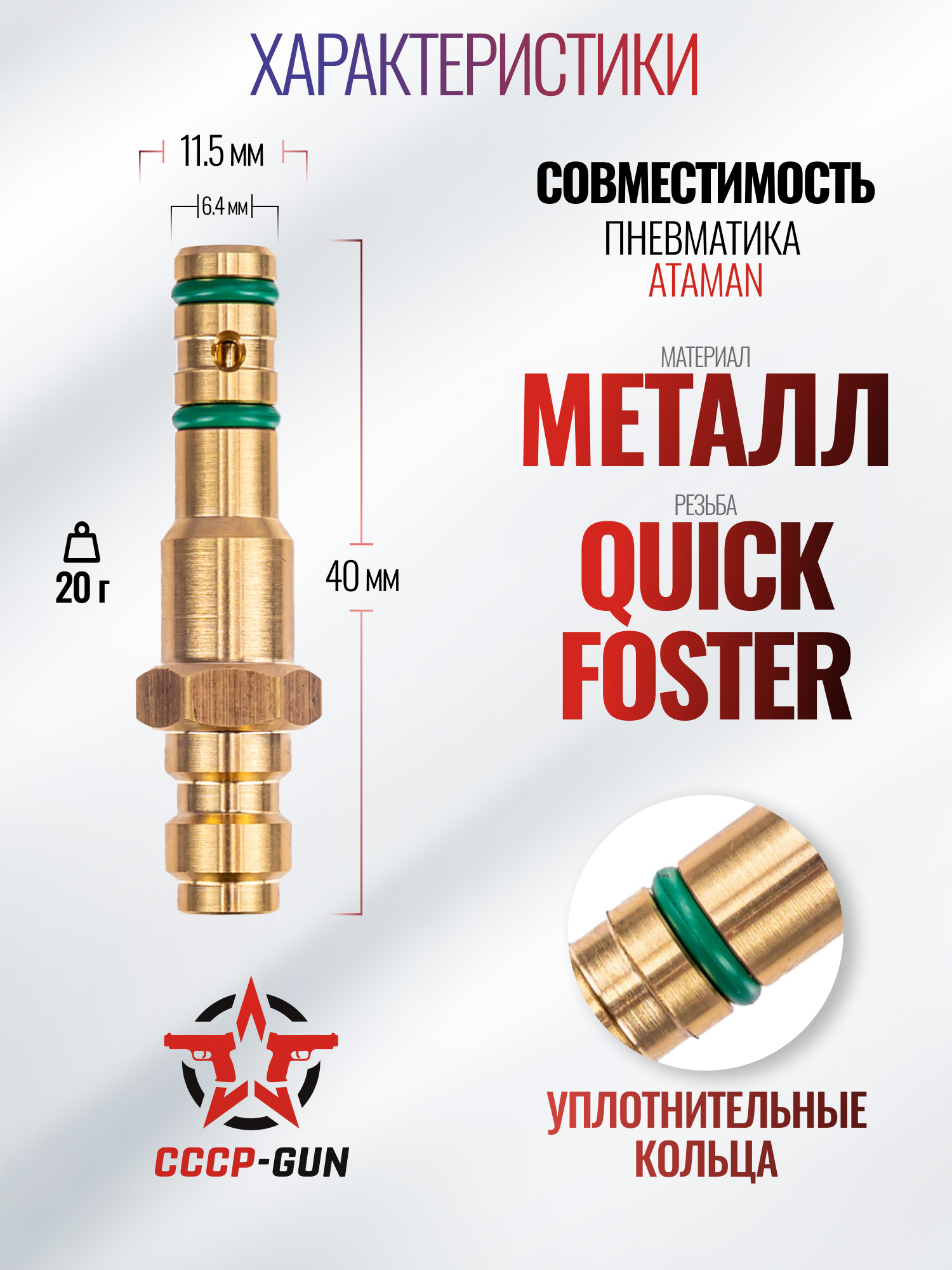 | Особенности конструкции | Быстросъемное крепление Quick-foster, для PCP винтовок Атаман, диаметр - 6.4 мм |
